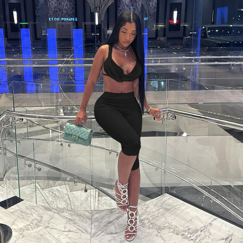 This Fashionable And Sexy Halter Neck Bra Top Knee-Length Shorts Sexy Two Piece Set Design Made Of High Quality polyester And Spandex Material. It Is Stretchy, Durable And Comfortable. It Come With The Top And Shorts. retail Short Sets Saves Some People From The Trouble Of Matching. And For Matchmakers It Is More Flexible Than One-Piece Outfit. Two Piece Short Set Can Be Worn Together Or Individually, Ladies Can Match Them According To Different Occasions. Grab Different Two Piece Short Sets For This Spring And Summer.