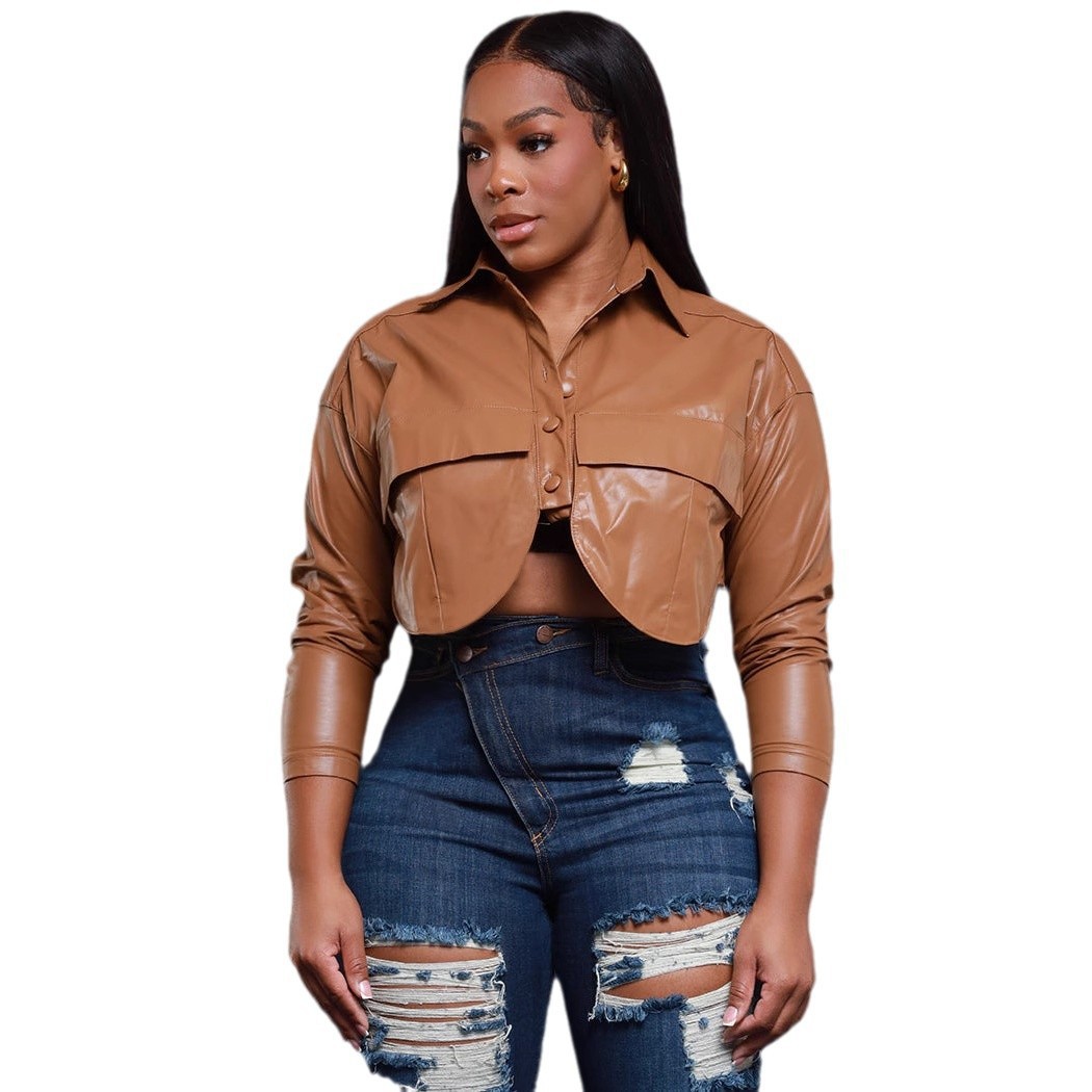 This Fashionable Women's Long Sleeve Turndown Collar Single-Breasted Pocket Pu Leather Jacket Made Of Durable And Thick Material. It Is a Must-Have Item For Autumn And Winter. BamBam Offer retail Jackets And Coats In Wide Range Selection, Everything Is Fashion Related And Ladies Find Here a Warm And Exciting Place To Shop Jackets And Coats For Women - The Chic Blazer, Timeless Leather Jackets, Cool Bomber Coats, Winter Thick Down Coats...When You Need More retail Women Outerwear, You Can Always Find What You Need On Our retail Women Clothing Online Store.