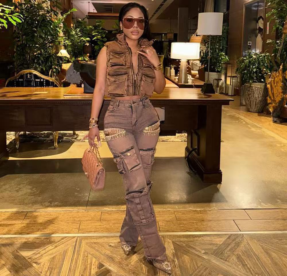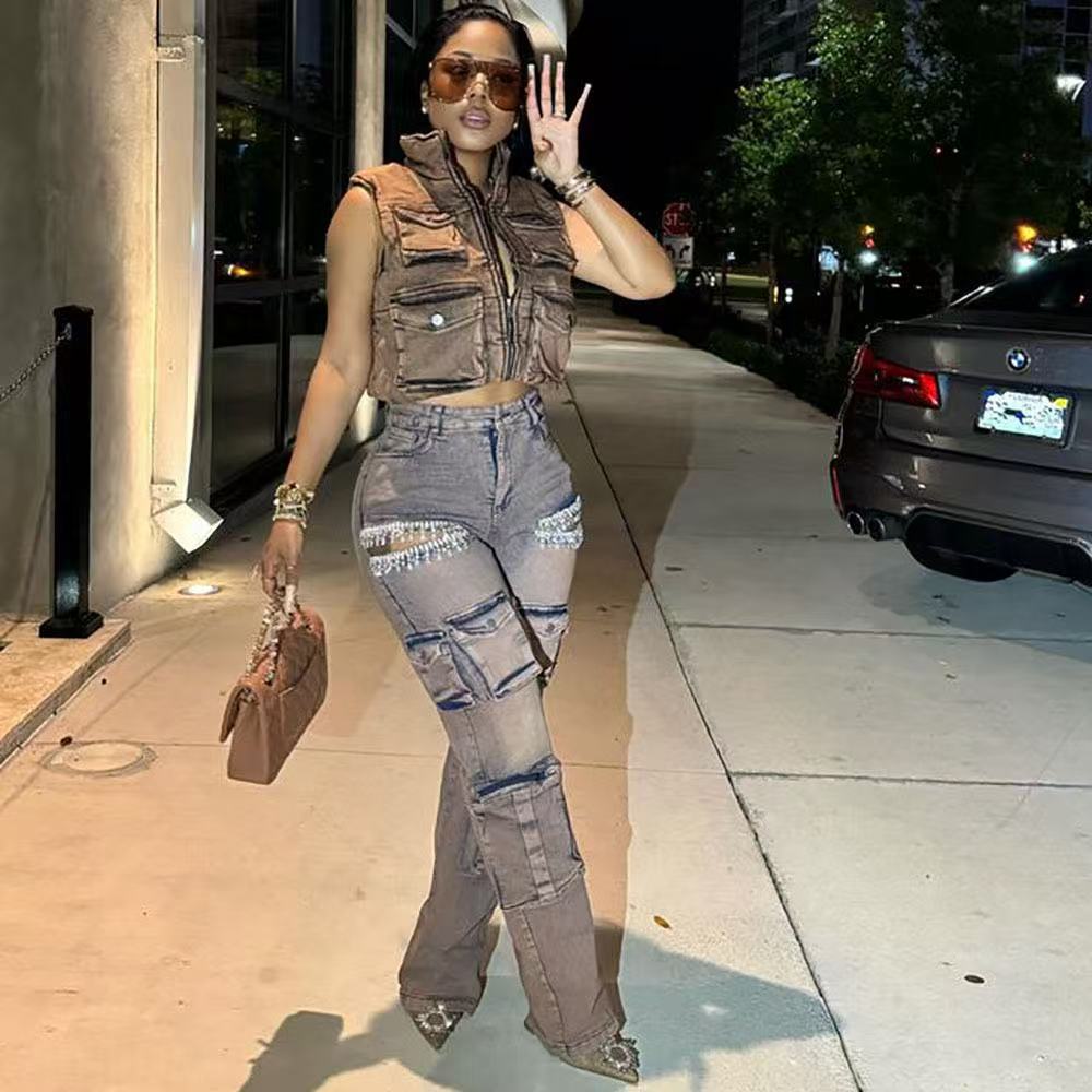 This Fashionable Women's Multi-Pocket Cut Out Diamond Denim Pants Design Made Of Durable And Stretchy Jeans Fabric. It Is a Must-Have Item For everyday use. Trendy retail Jeans Is a Indispensable Item For Everyday Fashion. Women’s Jeans With High Waist Is a Must Have trouser/pant that helps bring the grace of shape of your legs out even more and fits perfectly snugging your thighs and body gracefully. Grab a Must Have High Waist Jeans retail For Your Closet, Just Choose Different Matching Tops To stay in control of Every Occasion Easily.