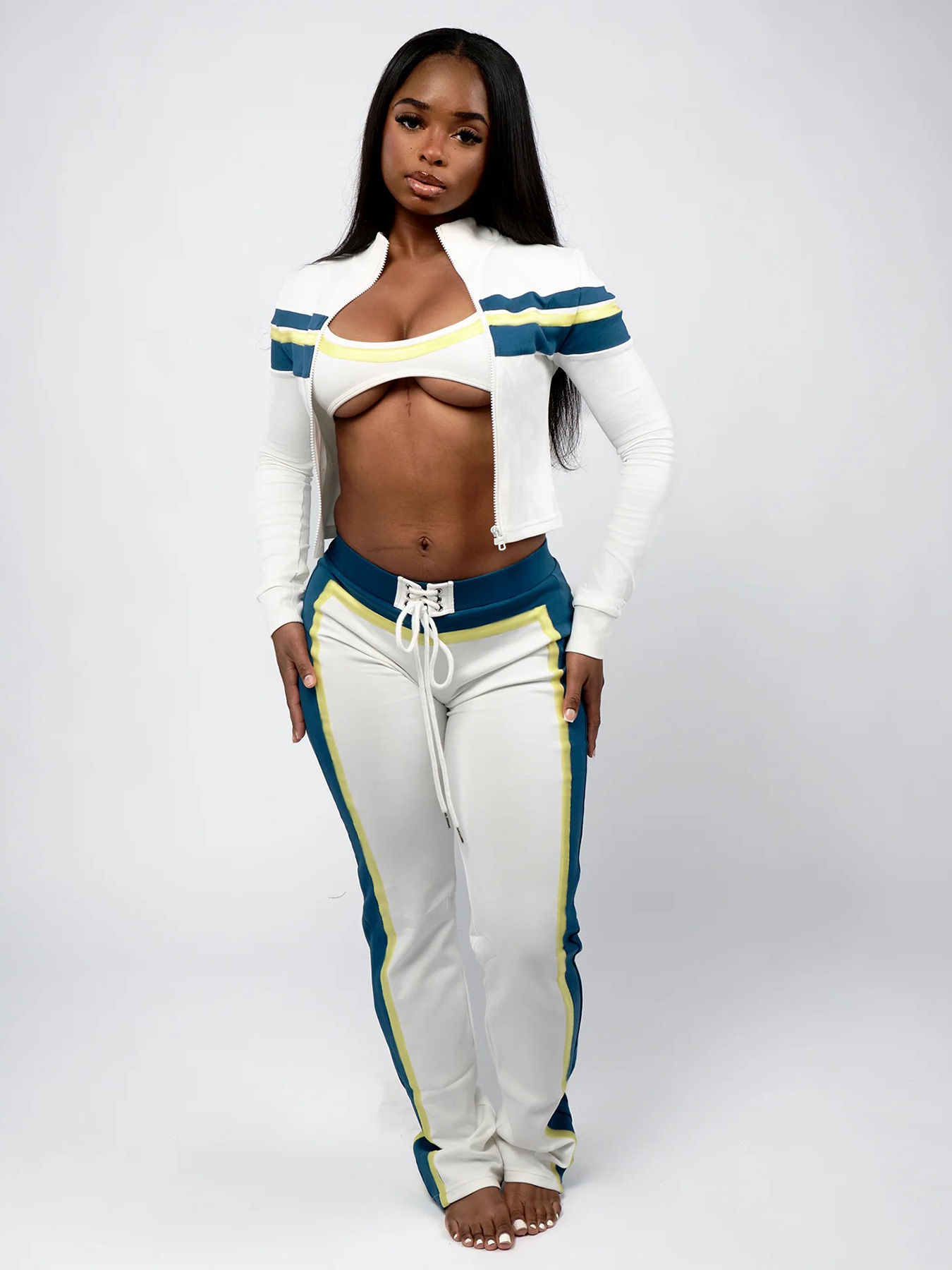 This Fashionable Women's Printed Patchwork Long-Sleeve Three-Piece Pants Set Design Made Of Durable And Stretch Fabric. It Is a Must-Have Sportswear For Outdoor And Active. BamBam Offer a Rich Selection Of Women Tracksuits And Sweatsuits. You Will Find Wide Range Colors, Prints, And Designs retail Tracksuits With BamBam Whether For Sports Or Lazy Weekend. When You Need More retail Fitness Clothing, You Can Always Find What You Need On Our retail Women Gym Wear Online Store.