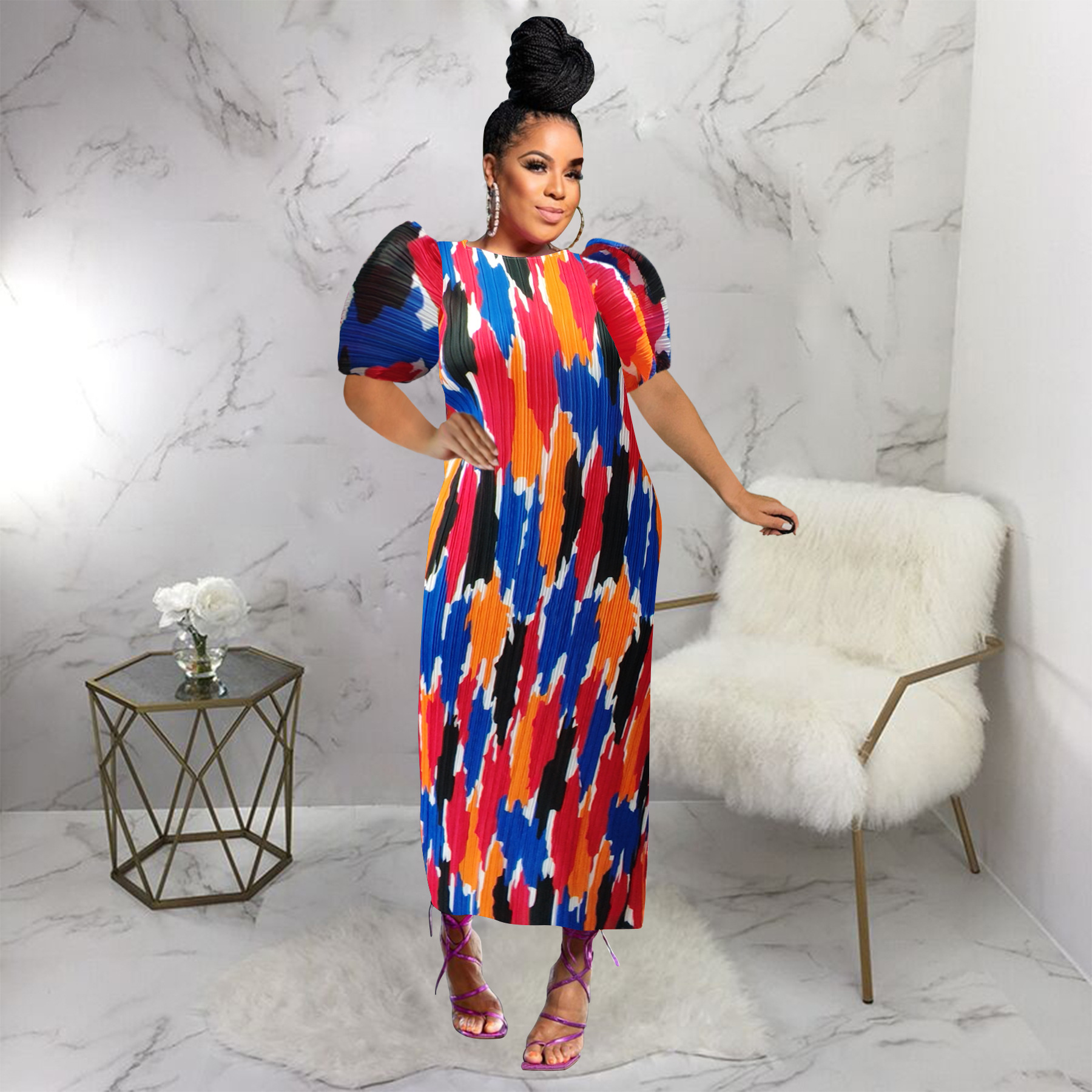 This Fashionable Women's Puff Short-Sleeved Printed Dress Design Made Of High Quality polyester And Spandex Material. It Is Stretchy, Durable And Comfortable. Casual Dresses With Long Sleeves Can Not Only Be Worn As Outerwear In Spring And Autumn, But Also Matching a Jacket In Winter, It Is a Must Have Item For Every Season. Grab Really Great Buy Casual Dresses For Women And Grow Your Business. No Moq In BamBam.
