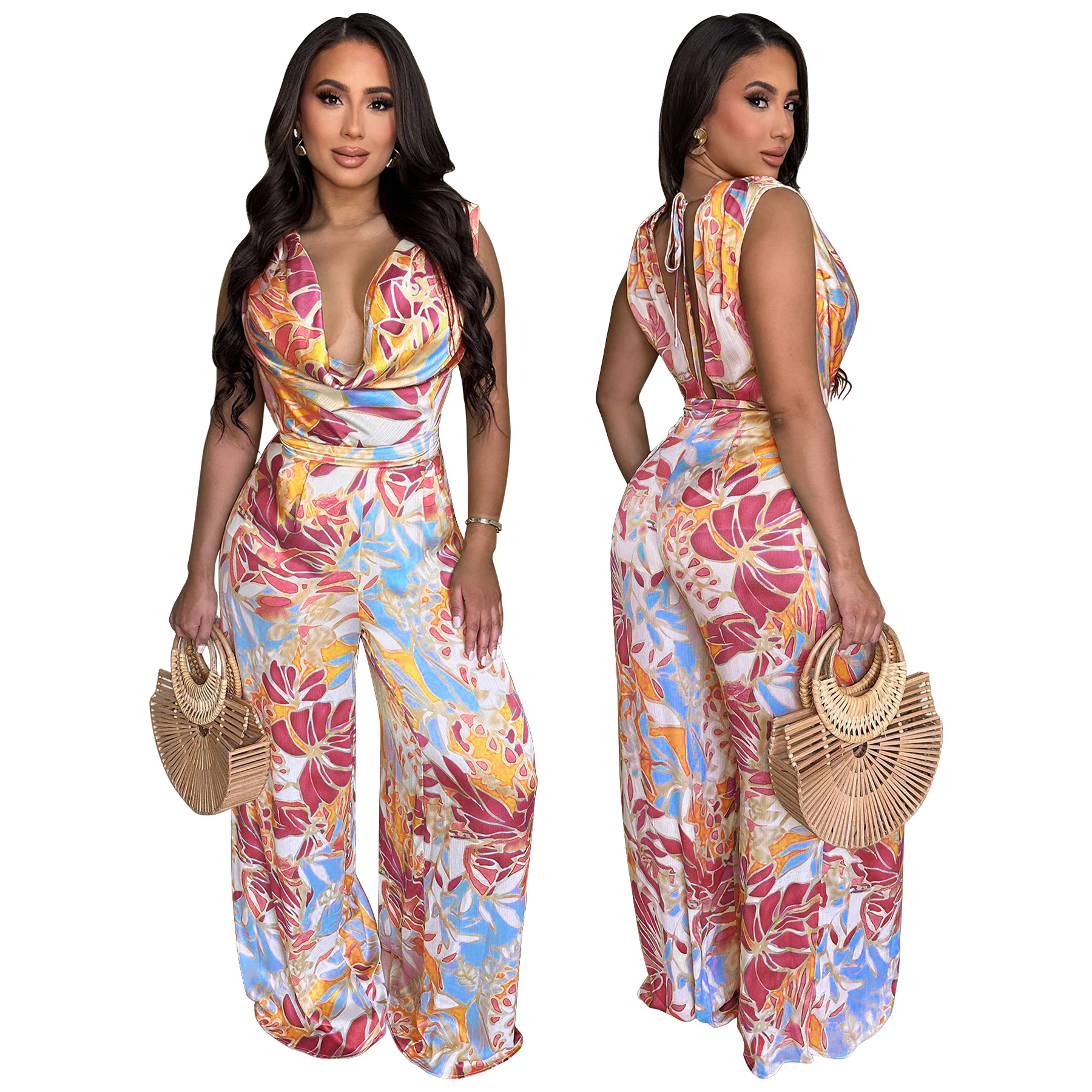 This Fashionable Women's Sleeveless Print Wide Leg Jumpsuit Design Made Of High Quality Polyster And Spandex Material. It Is Stretchy, Durable And Comfortable. Affordable Sexy Jumpsuits For Women Has Long Been a Party Favorite. BamBam provides a Rich selection Of Sequin, Beaded, See Through Mesh, Leopard, Floral Lace, Leather, Velvet, Tight And Fitted retail Jumpsuit Without Moq Limit.