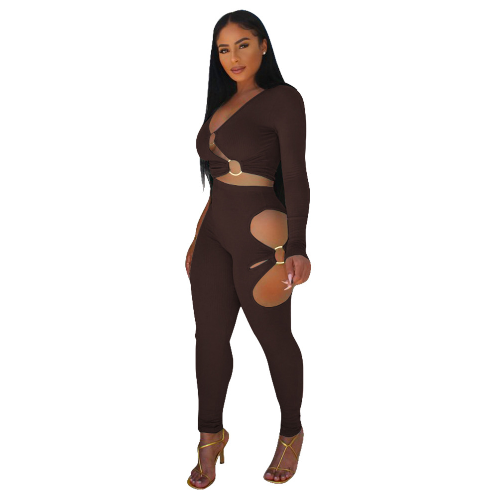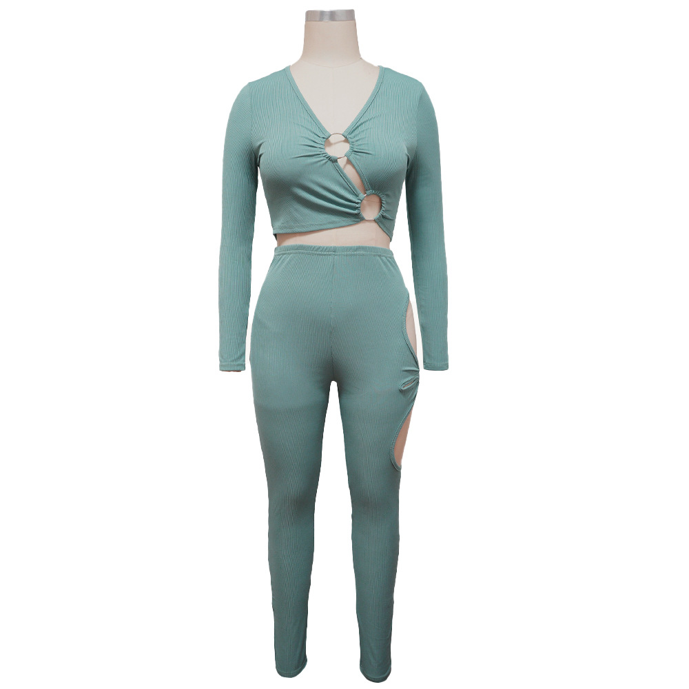 This Fashionable Women's Solid Color High-Stretch Ribbed Sexy v-Neck Two-Piece Pants Set Design Made Of High Quality polyester And Spandex Material. It Is Stretchy, Durable And Comfortable. It Is a Must-Have Outfit For All Seasons. retail Two Piece Pant Sets Can Solve Your cloth selection Troubles. Explore More 2 Piece Pants Set On BamBam retail Women Clothing Online Store.