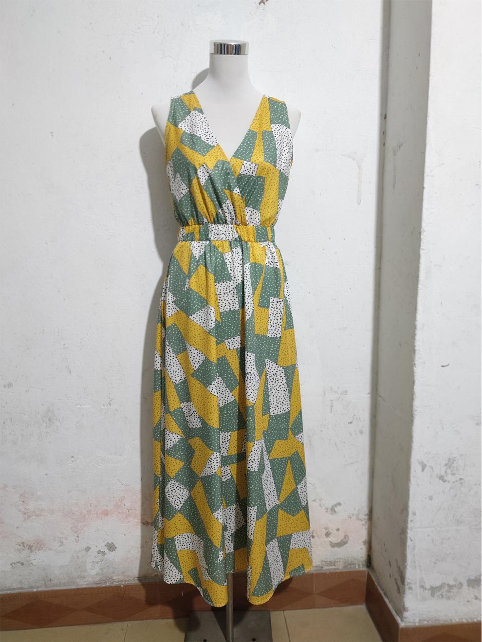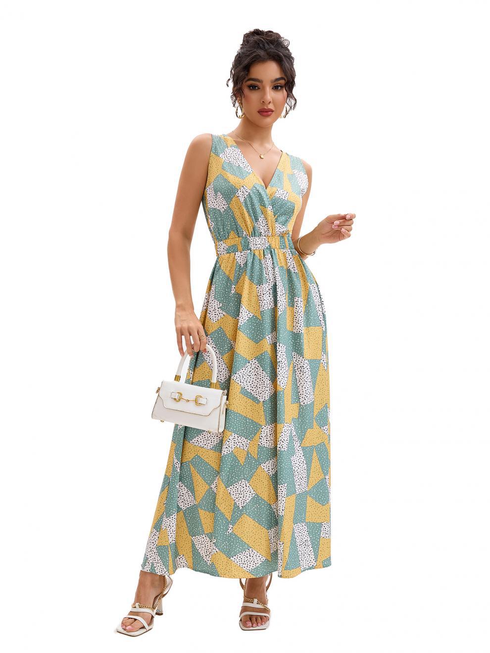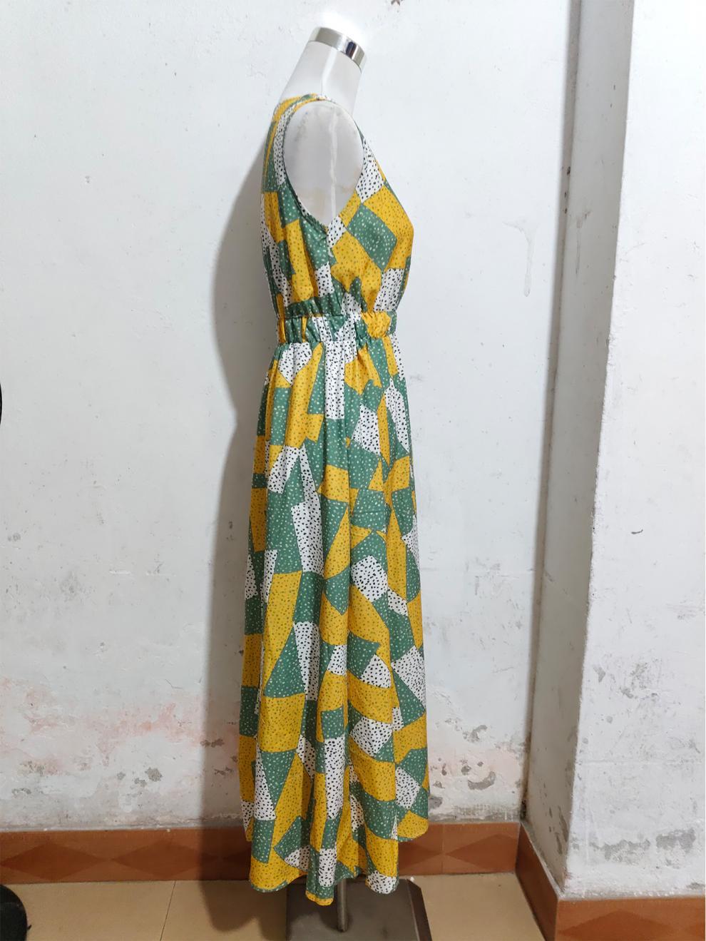 This Geometric Print v-Neck Slim Waist Casual Maxi Dress Design Made Of High Quality polyester And Spandex Material. It Is Stretchy, Durable And Comfortable. Casual Dresses With Long Sleeves Can Not Only Be Worn As Outerwear In Spring And Autumn, But Also Matching a Jacket In Winter, It Is a Must Have Item For Every Season. Grab Really Great Buy Casual Dresses For Women And Grow Your Business. No Moq In BamBam.