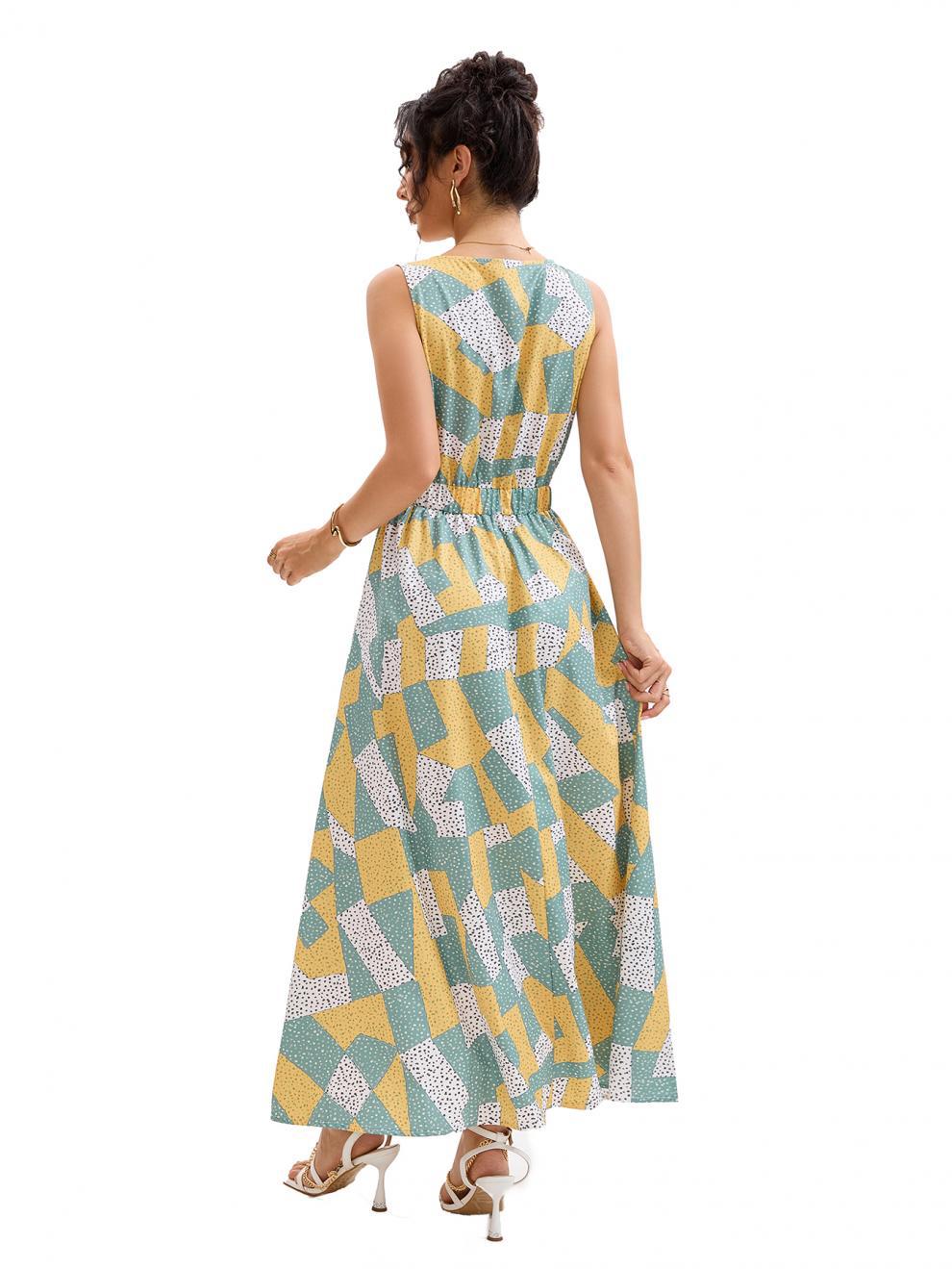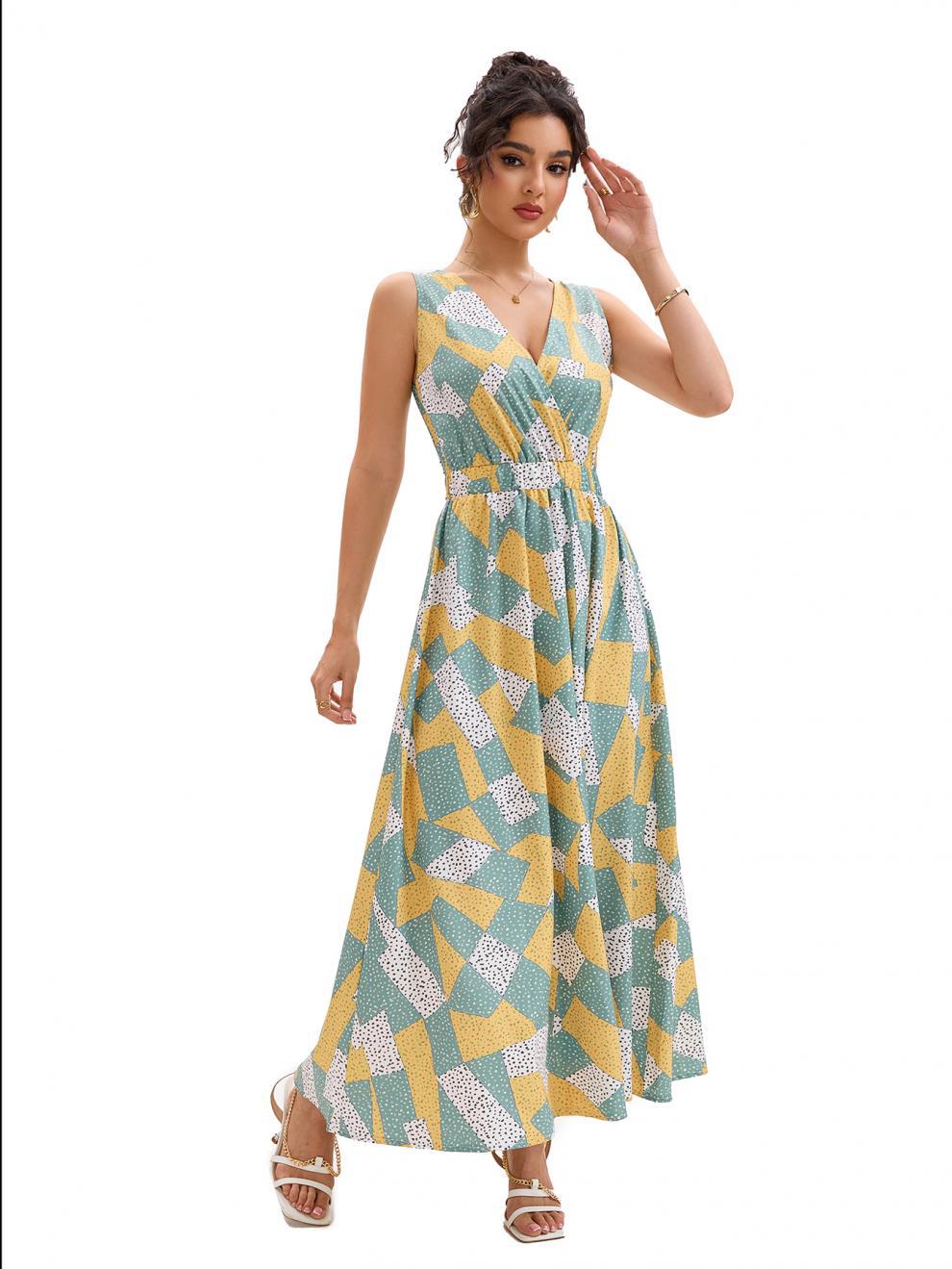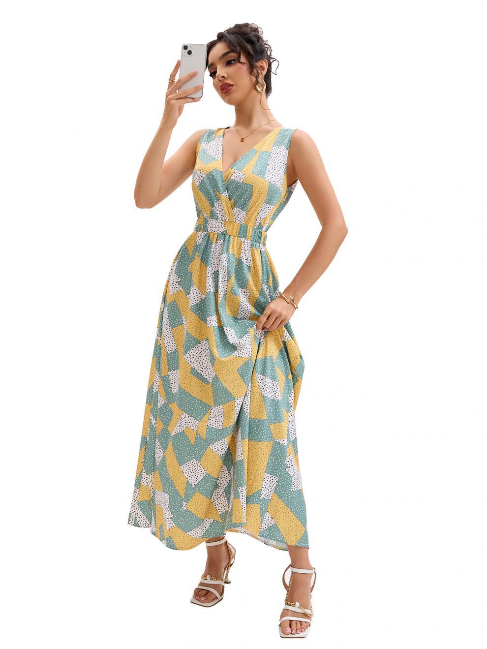 This Geometric Print v-Neck Slim Waist Casual Maxi Dress Design Made Of High Quality polyester And Spandex Material. It Is Stretchy, Durable And Comfortable. Casual Dresses With Long Sleeves Can Not Only Be Worn As Outerwear In Spring And Autumn, But Also Matching a Jacket In Winter, It Is a Must Have Item For Every Season. Grab Really Great Buy Casual Dresses For Women And Grow Your Business. No Moq In BamBam.