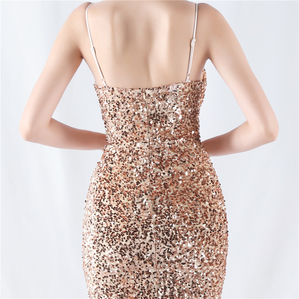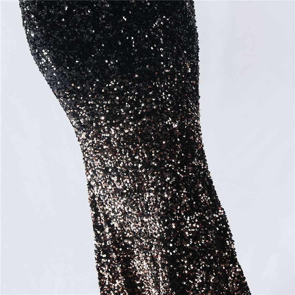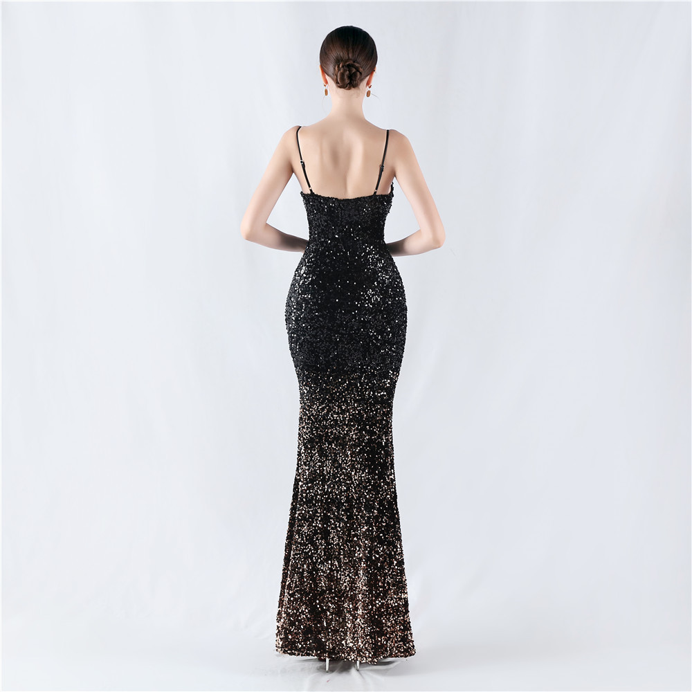 This Gradient Sequins Sexy Strap Evening Dress Design Made Of