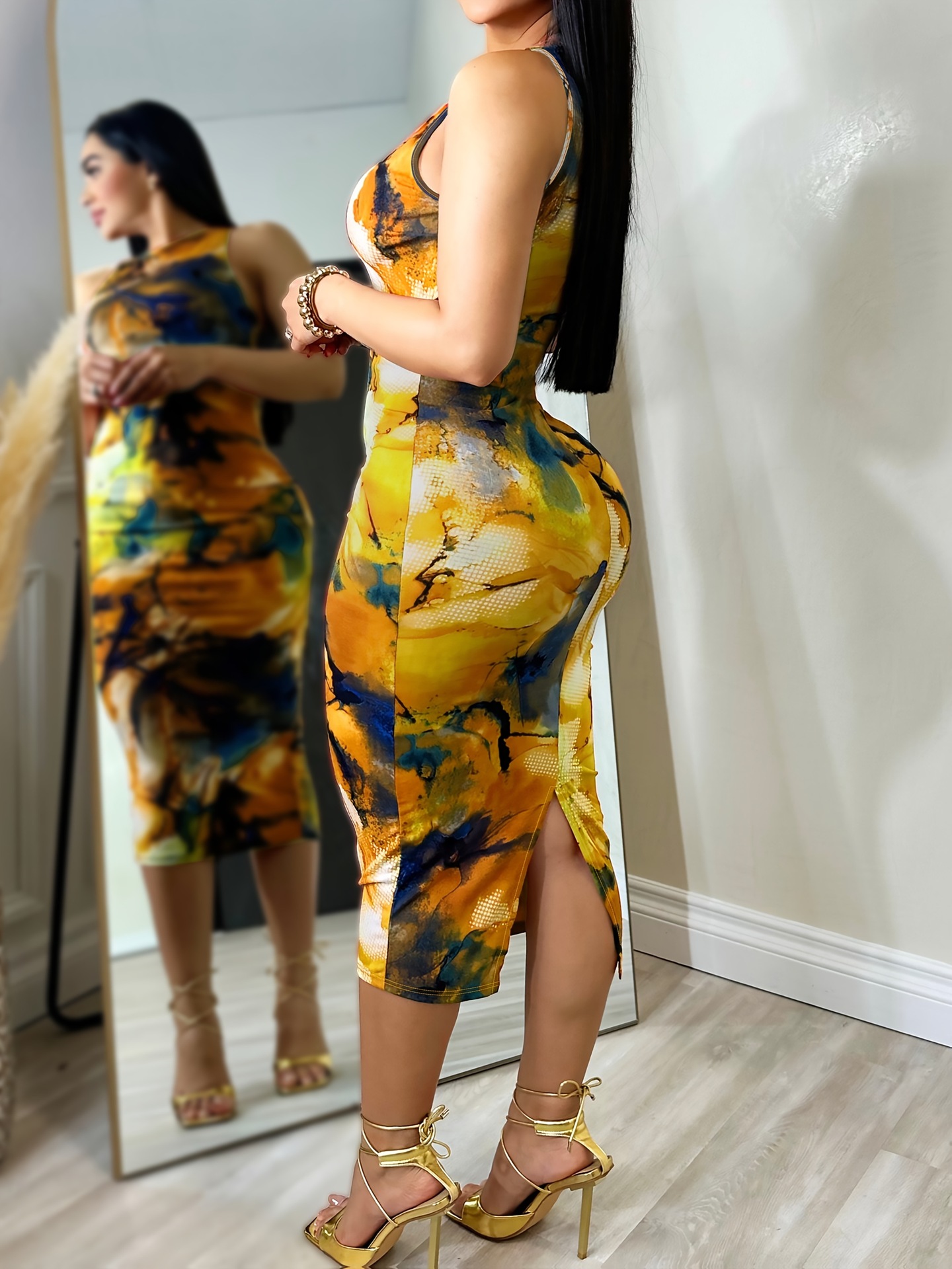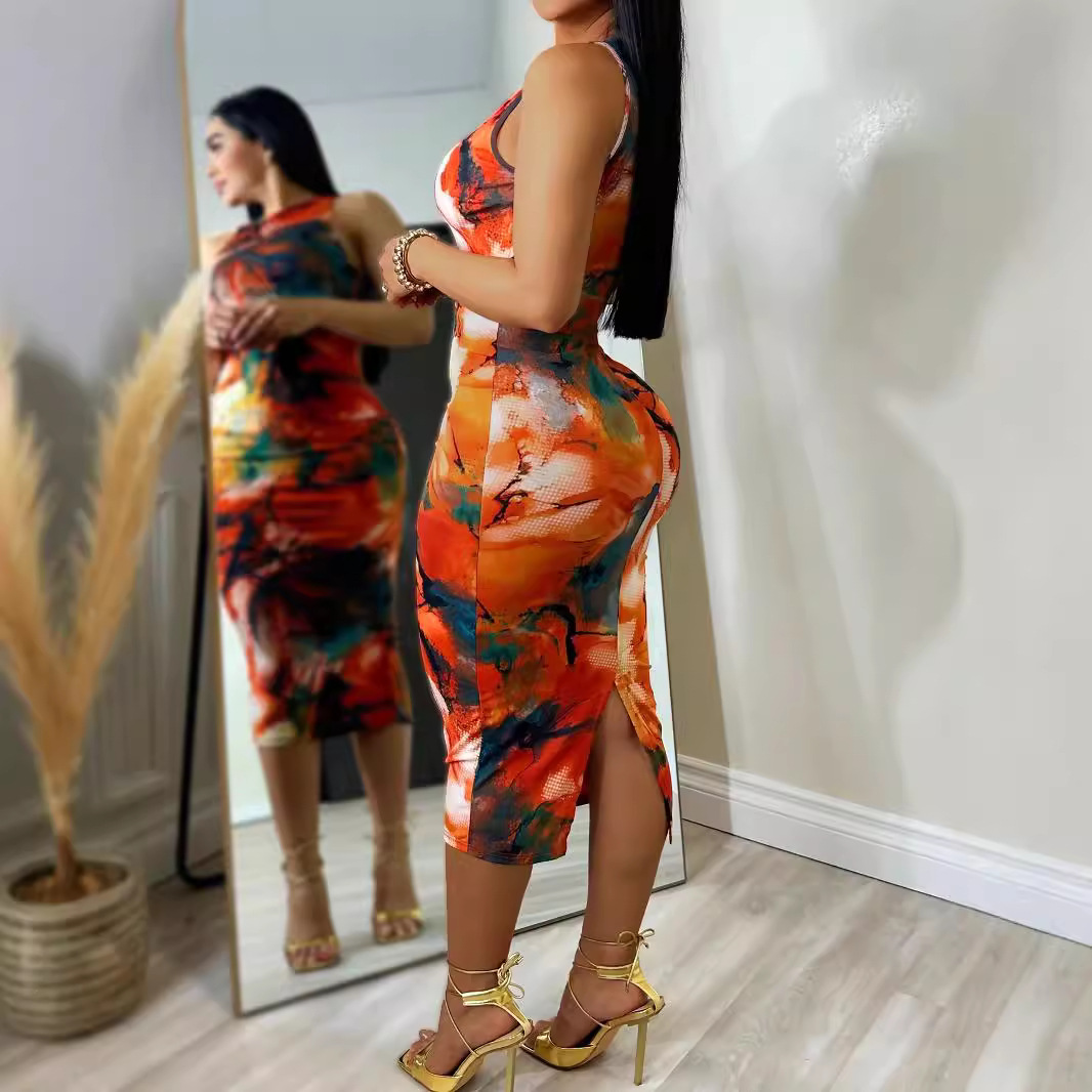 This Graffiti Sexy High-Slit Round Neck Sleeveless Dress Design Made Of High Quality polyester And Spandex Material. Print Dresses Is More Interesting And Stylish. Print Maxi Dresses are extremely popular and a crowd pleaser. Women’s Print Dresses At BamBam Comes With Forever Floral, Dot, Leopard, Camo, Striped, Plaid, Geommetric Print And Trendy Character, Letter, Cartoon, Tie Dye Print. We Can Also Make Custom Personalized Print.