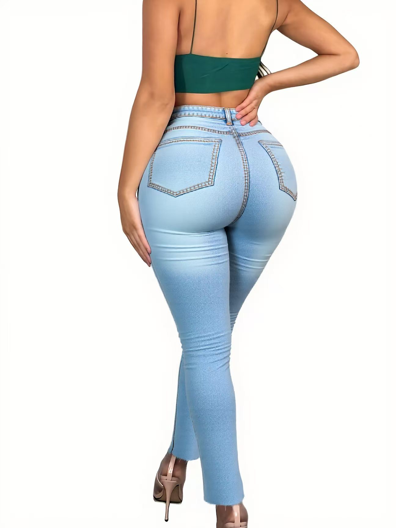 This High-Waist Stretch Straight Leg Denim Pants Women's Slim Fit Distressed Jeans Design Made Of Durable And Stretchy Jeans Fabric. It Is a Must-Have Item For everyday use. Trendy retail Jeans Is a Indispensable Item For Everyday Fashion. Women’s Jeans With High Waist Is a Must Have trouser/pant that helps bring the grace of shape of your legs out even more and fits perfectly snugging your thighs and body gracefully. Grab a Must Have High Waist Jeans retail For Your Closet, Just Choose Different Matching Tops To stay in control of Every Occasion Easily.