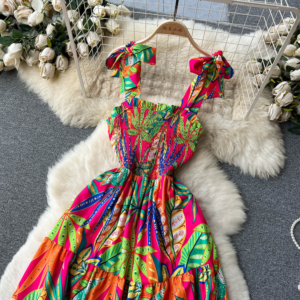 This Holidays Dress Summer Strap Lace-Up Slim Waist Flared Print Dress Design Made Of High Quality polyester And Spandex Material, Which Is Stretchy, Soft And Comfortable. It's Always On Trend. This Casual Maxi Dresses Is a Must-Have For Vocations And Dating Occasions. Maxi Dresses At BamBam Comes With Huge Selections Of Colors, Sizes, Material, And Designs. When You Need retail affordable Maxi Dresses, You Can Always Find Vary Collection And No Moq On Our retail Women Fashion Online Store.