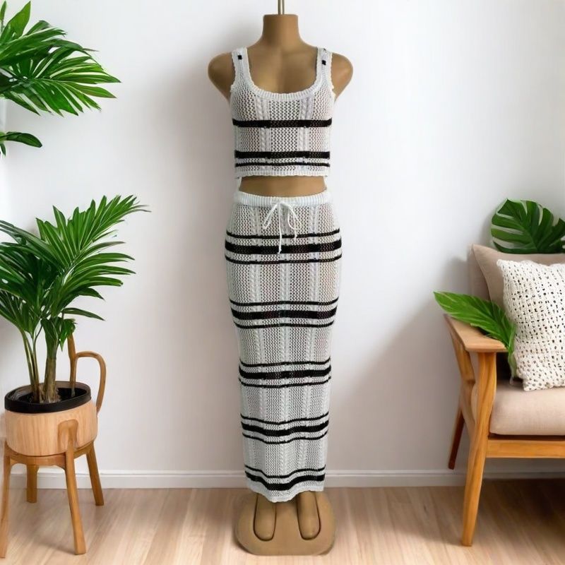 This Holidays Maxi Dress Sexy Hollow-Out Knitted Beach Dress Design Made Of High Quality polyester And Spandex Material. It Is Stretchy, Durable And Comfortable. It Come With The Top And Skirt Matching Set. Women’s Skirt Suit Sets Is a Great Alternative To One Piece Outfit. It Can Either Be Worn Together Or Individually, So You Can Combine Them Endlessly. Grab Different Two Piece Skirt Set retail On Our Website a Women's Clothing Store Online At Really affordable price And Enjoy fast delivery worldwide.