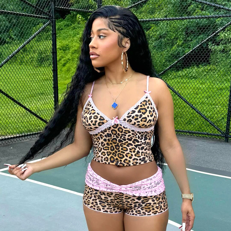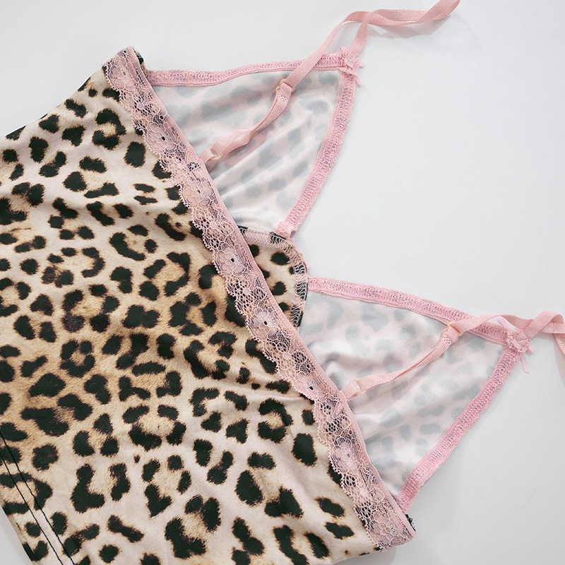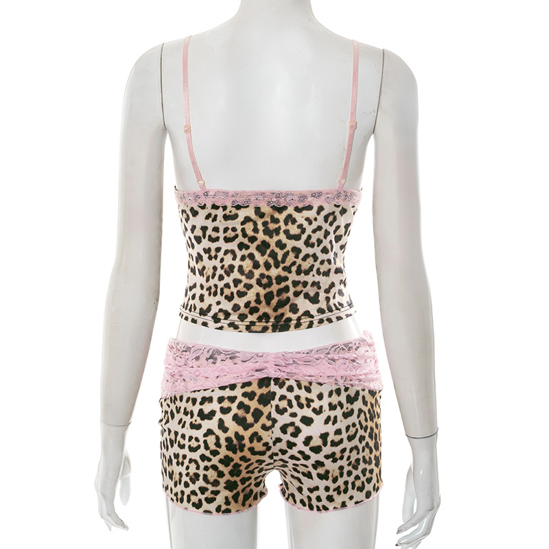 This Leopard Print Patchwork Lace Bowknot Strap Top Contrast Color Shorts Two-Piece Set Design Made Of High Quality polyester And Spandex Material. It Is Stretchy, Durable And Comfortable. It Come With The Top And Shorts. retail Short Sets Saves Some People From The Trouble Of Matching. And For Matchmakers It Is More Flexible Than One-Piece Outfit. Two Piece Short Set Can Be Worn Together Or Individually, Ladies Can Match Them According To Different Occasions. Grab Different Two Piece Short Sets For This Spring And Summer.