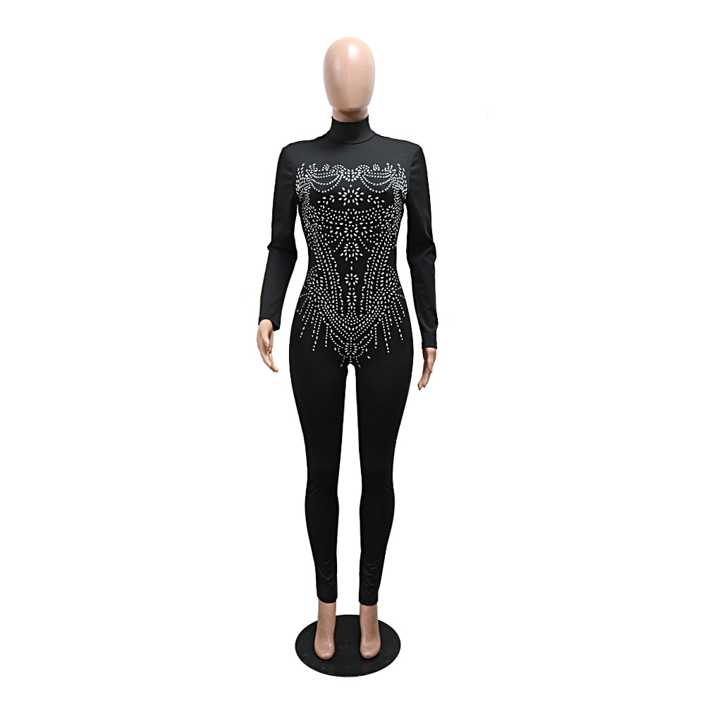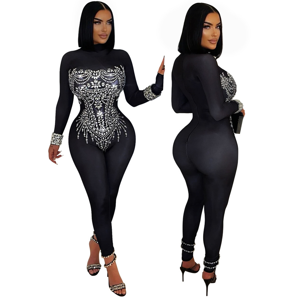 This Long Sleeve Beaded Tight-Fitting Nightclub Women's Fashion Jumpsuit Design Made Of High Quality Polyster And Spandex Material. It Is Stretchy, Durable And Comfortable. Affordable Sexy Jumpsuits For Women Has Long Been a Party Favorite. BamBam provides a Rich selection Of Sequin, Beaded, See Through Mesh, Leopard, Floral Lace, Leather, Velvet, Tight And Fitted retail Jumpsuit Without Moq Limit.
