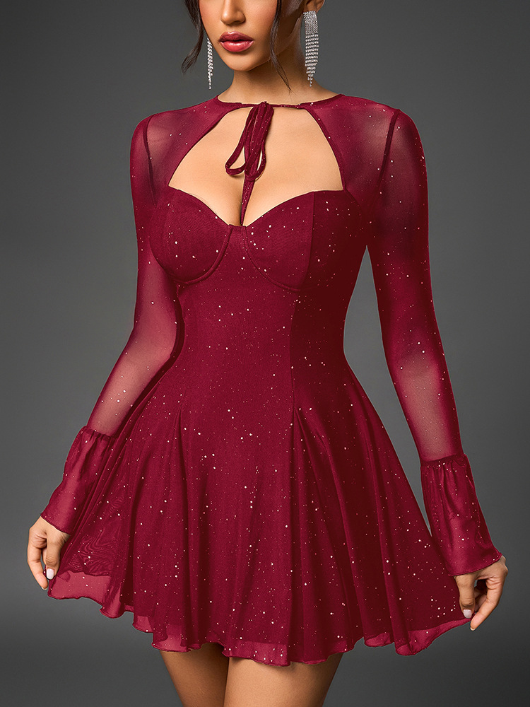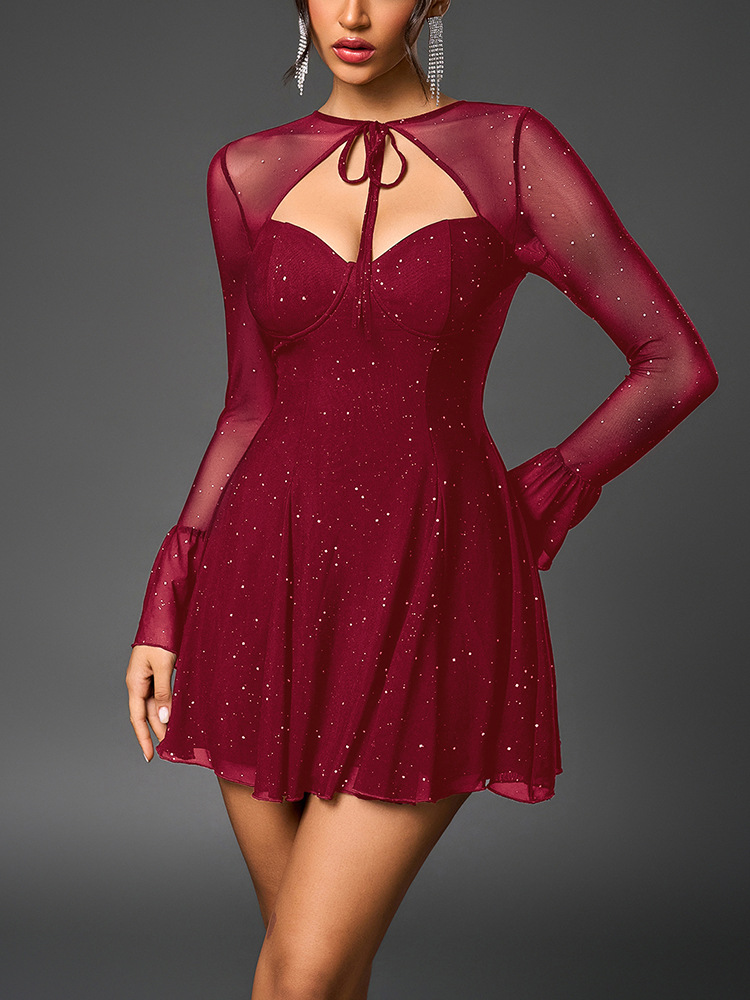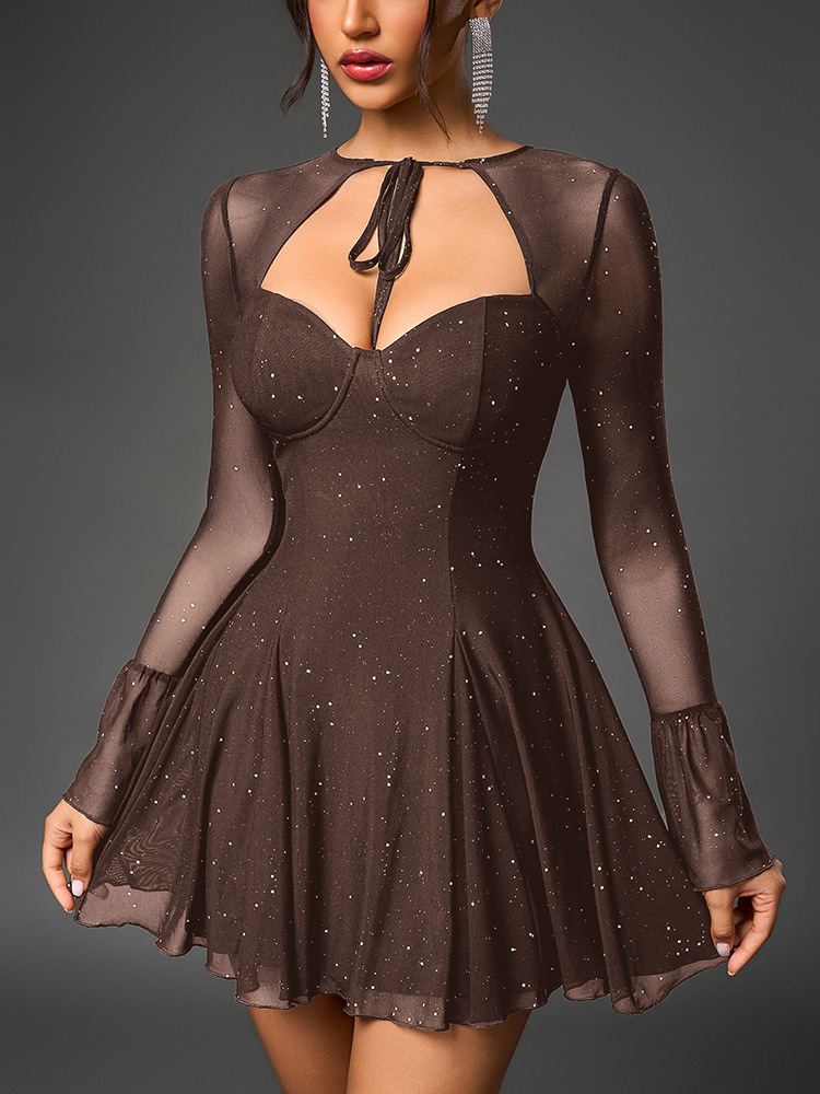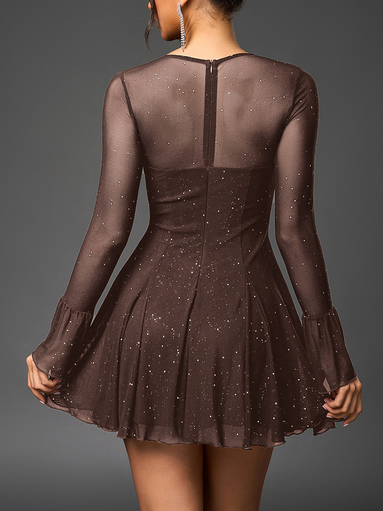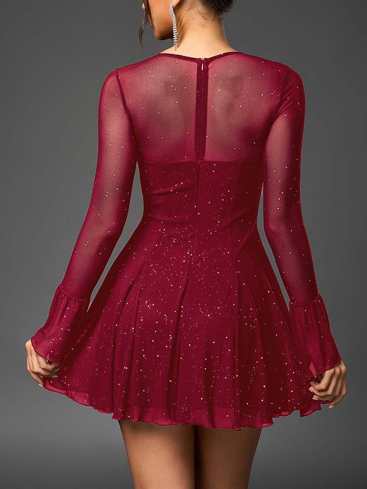 This Mesh Bell Sleeve Dsequin See-Through Mini Dress Design Made Of High Quality polyester And Spandex Material. It Is Stretchy, Durable And Comfortable. Casual Dresses With Long Sleeves Can Not Only Be Worn As Outerwear In Spring And Autumn, But Also Matching a Jacket In Winter, It Is a Must Have Item For Every Season. Grab Really Great Buy Casual Dresses For Women And Grow Your Business. No Moq In BamBam.