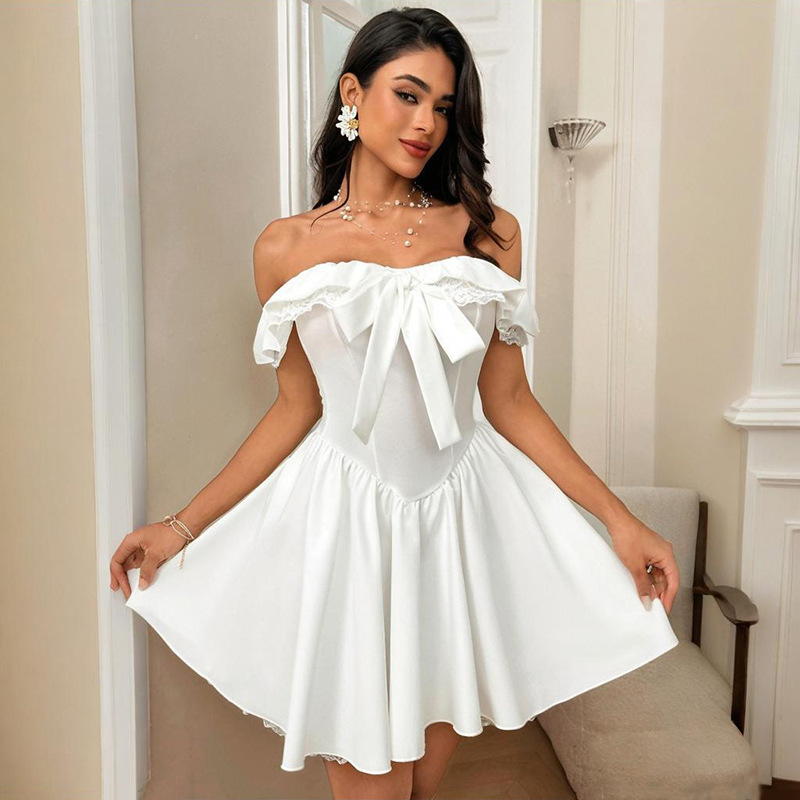 This Off-Shoulder Slim Waist a-Line Mini Dress Chic Cocktail Dress Design Made Of High Quality polyester And Spandex Material. It Is Stretchy, Durable And Comfortable. Casual Dresses With Long Sleeves Can Not Only Be Worn As Outerwear In Spring And Autumn, But Also Matching a Jacket In Winter, It Is a Must Have Item For Every Season. Grab Really Great Buy Casual Dresses For Women And Grow Your Business. No Moq In BamBam.