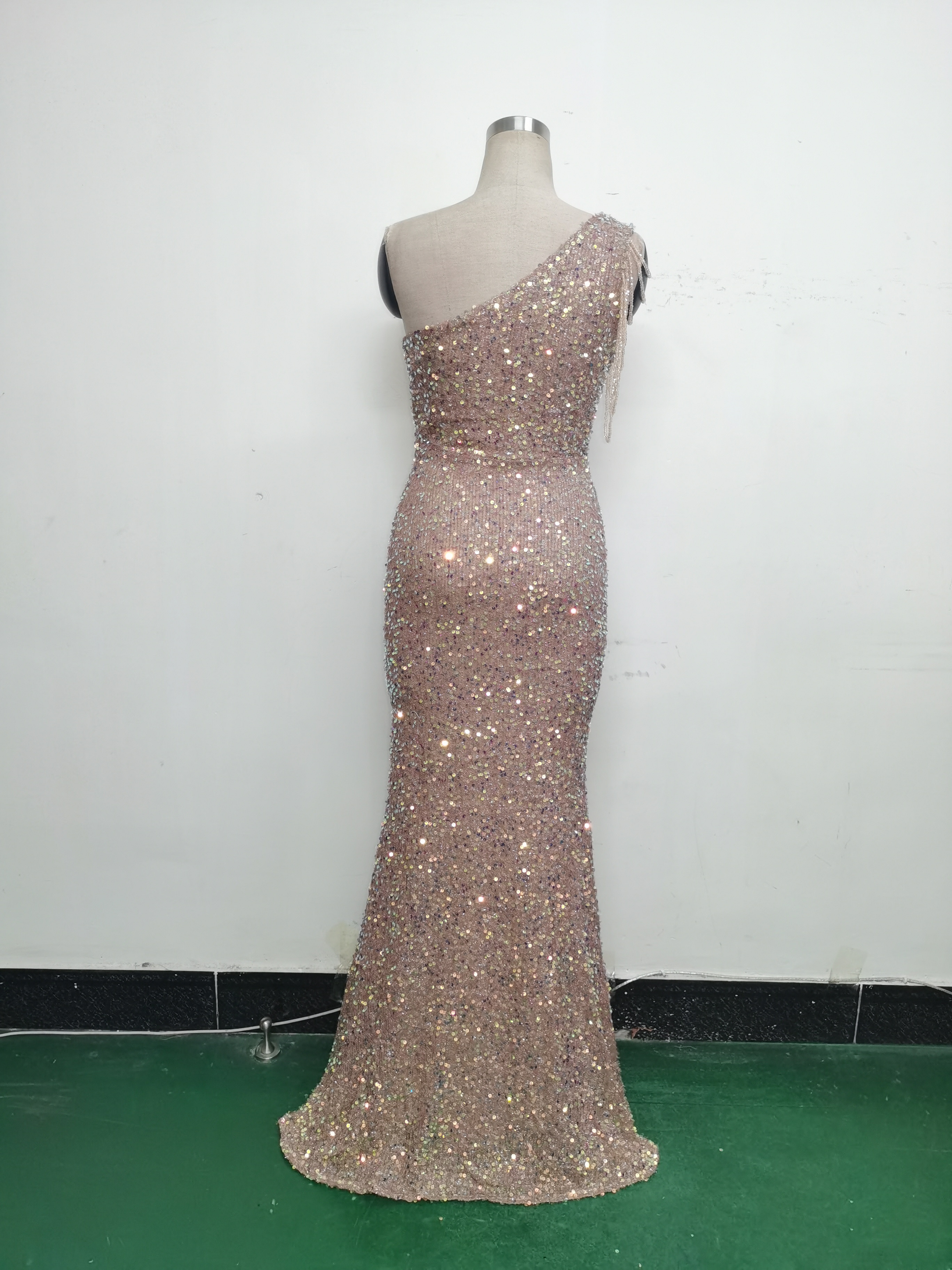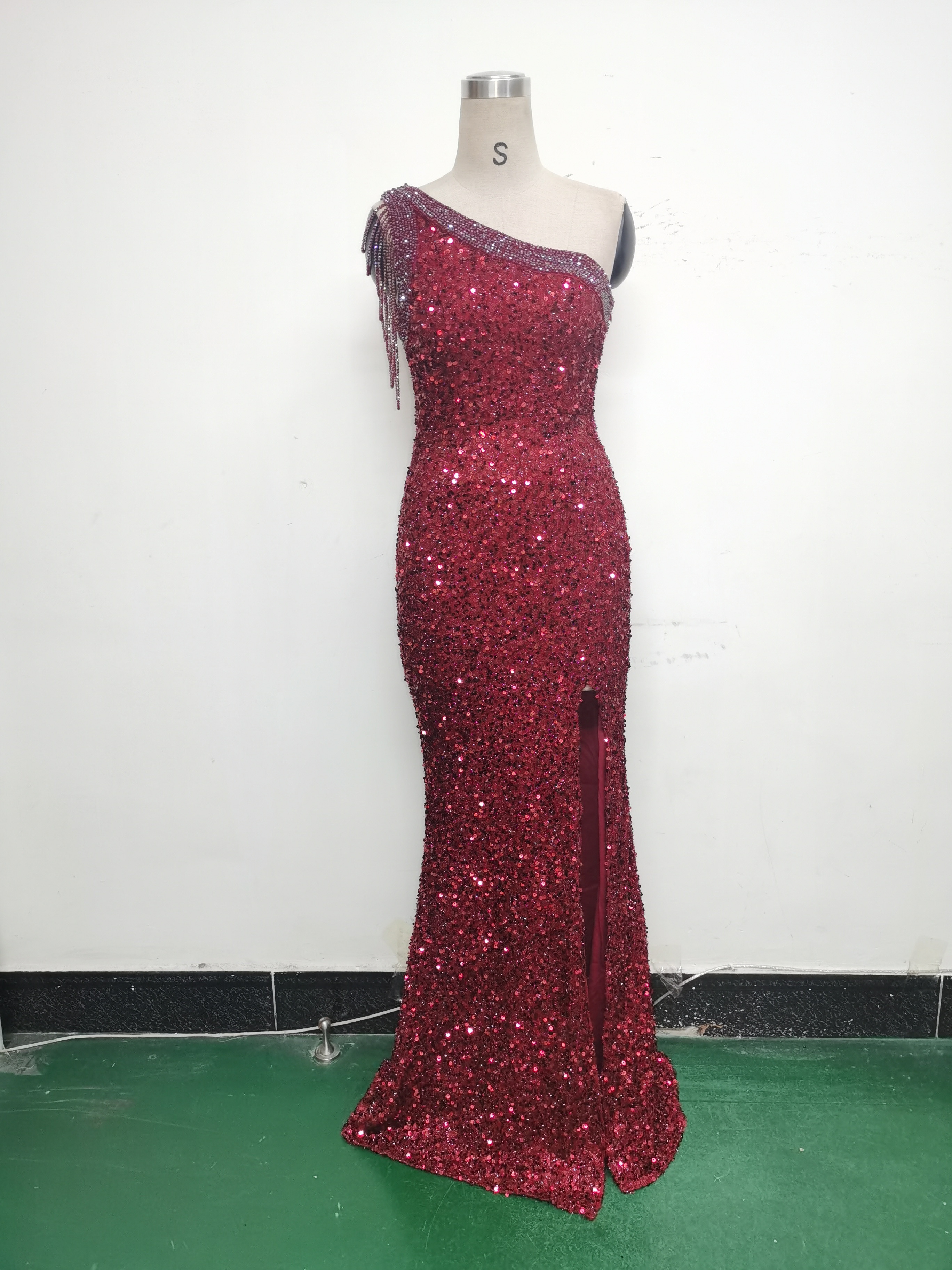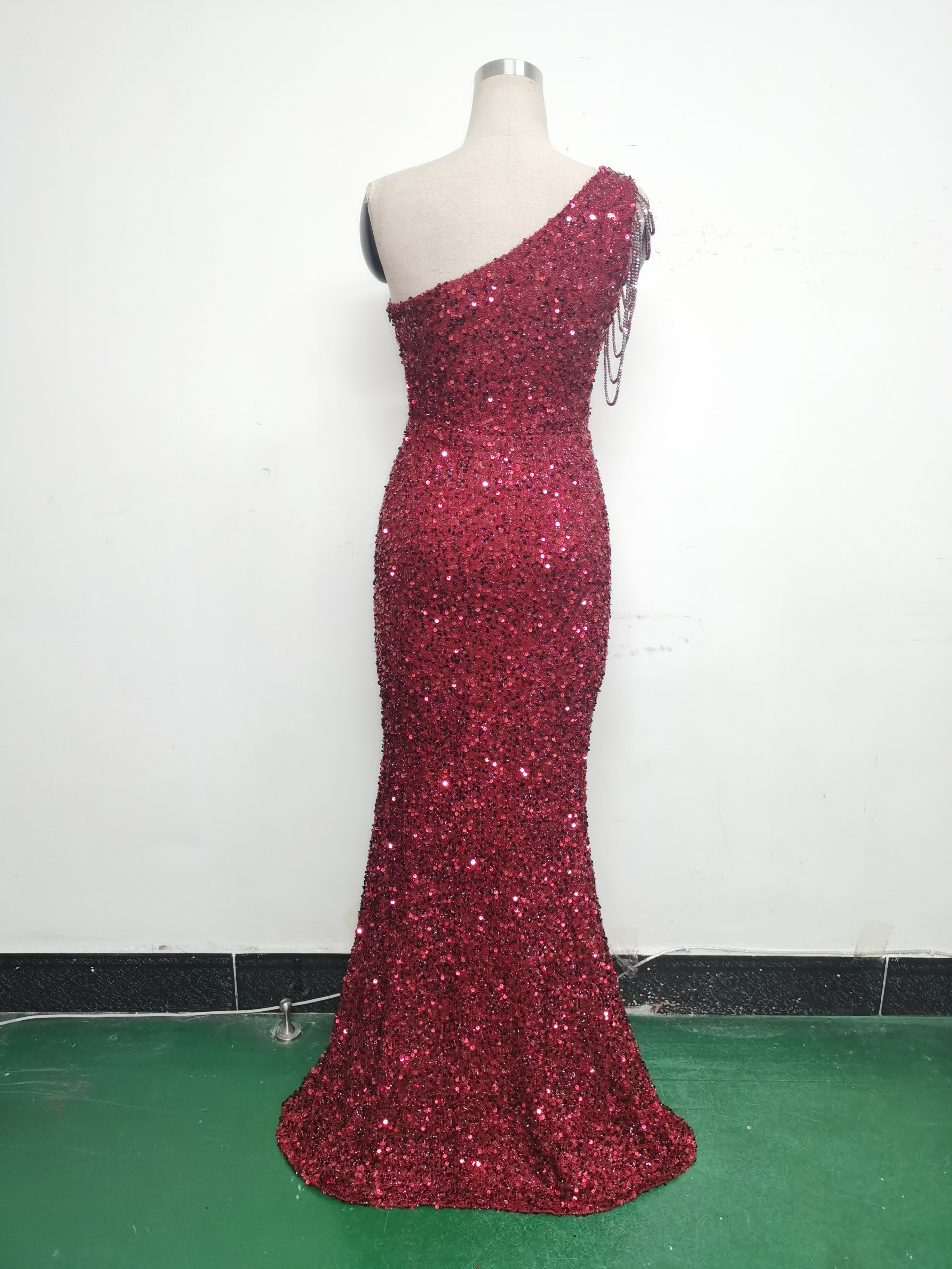 This One-Shoulder Sequined Fishtail Evening Dress For Formal Parties Design Made Of Good Quality polyester And Spandex Material, Which Is Stretchy, Durable And Comfortable. The Long Evening Dresses And Gowns Is Always The main Choice For All Kinds Of Parties, Cocktail, Prom, Events, And Dating Occasions. Evening Gowns At BamBam Comes With Huge Selections - Sequins, Beaded, Satin, Velvet, Lace.... When You Need retail Evening Dresses, BamBam retail Women Garment Online Shop Is Your One-Stop Online Shopping Choice.