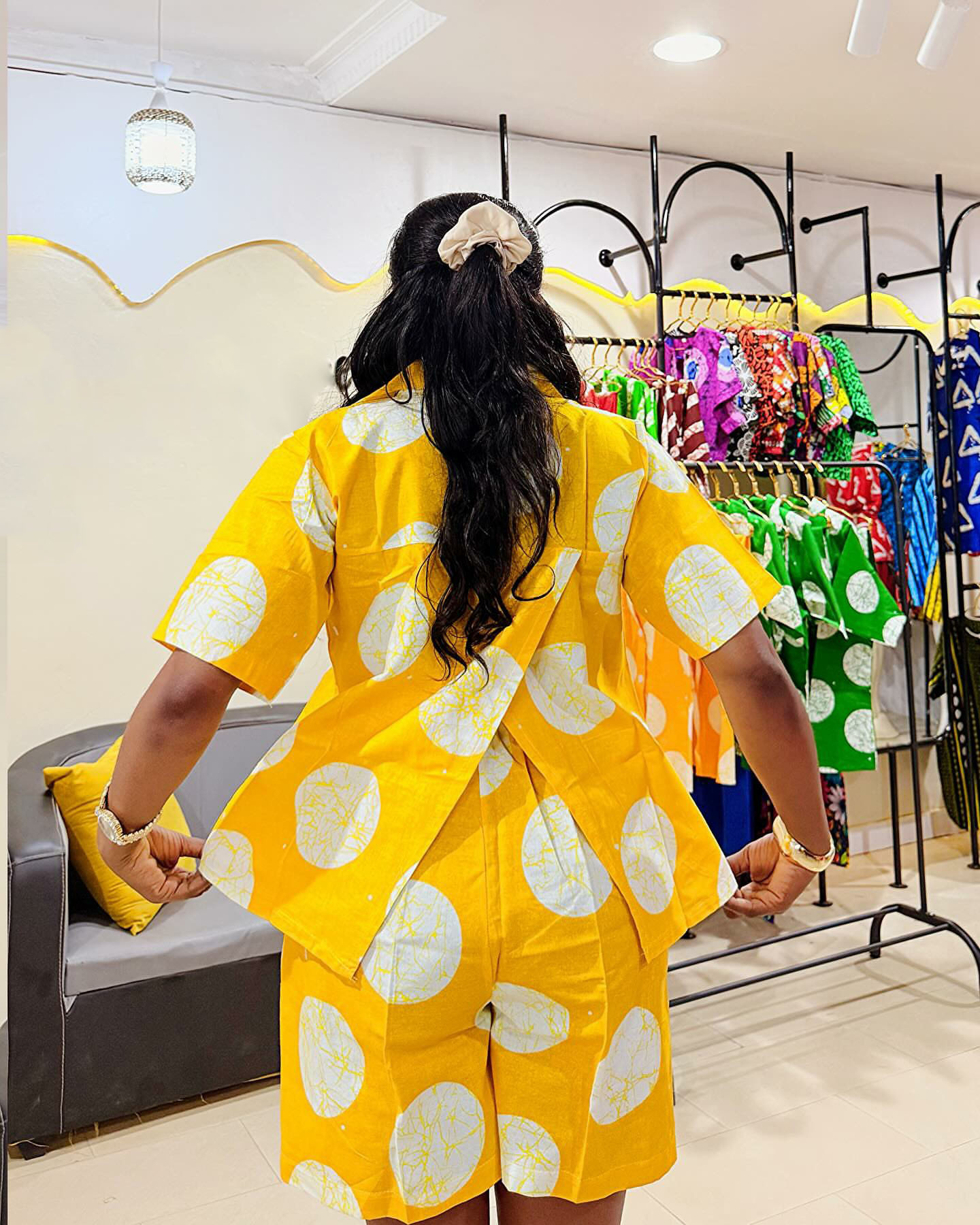 This Plus-Size African Women Printed Short-Sleeved Turndown Collar Shirt And Casual Shorts Two-Piece Set Design Made Of High Quality polyester And Spandex Material. It Is Stretchy, Durable And Comfortable. It Come With The Top And Shorts. retail Short Sets Saves Some People From The Trouble Of Matching. And For Matchmakers It Is More Flexible Than One-Piece Outfit. Two Piece Short Set Can Be Worn Together Or Individually, Ladies Can Match Them According To Different Occasions. Grab Different Two Piece Short Sets For This Spring And Summer.
