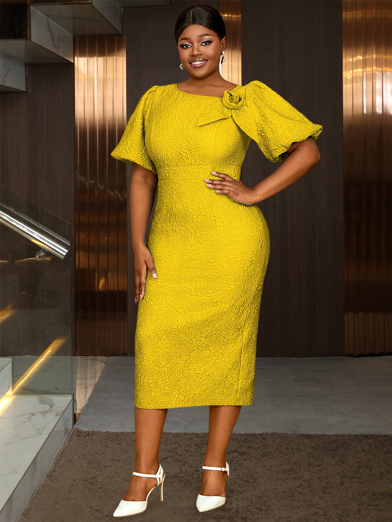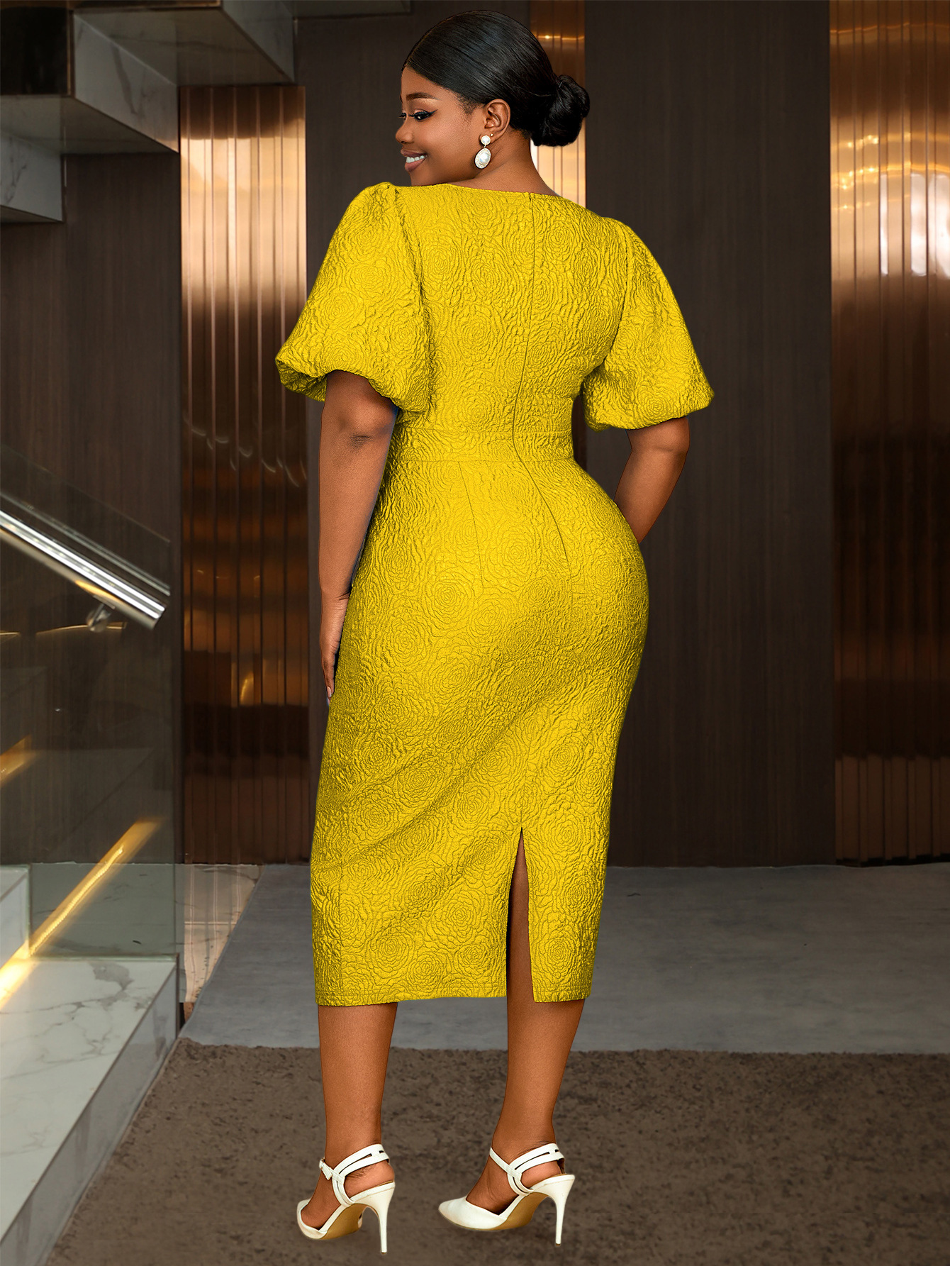This Plus Size Asymmetrical Puff Sleeve High Waist Jacquard Formal Dress Design Made Of Good Quality polyester And Spandex Material, Which Is Stretchy, Durable And Comfortable. The Long Evening Dresses And Gowns Is Always The main Choice For All Kinds Of Parties, Cocktail, Prom, Events, And Dating Occasions. Evening Gowns At BamBam Comes With Huge Selections - Sequins, Beaded, Satin, Velvet, Lace.... When You Need retail Evening Dresses, BamBam retail Women Garment Online Shop Is Your One-Stop Online Shopping Choice.