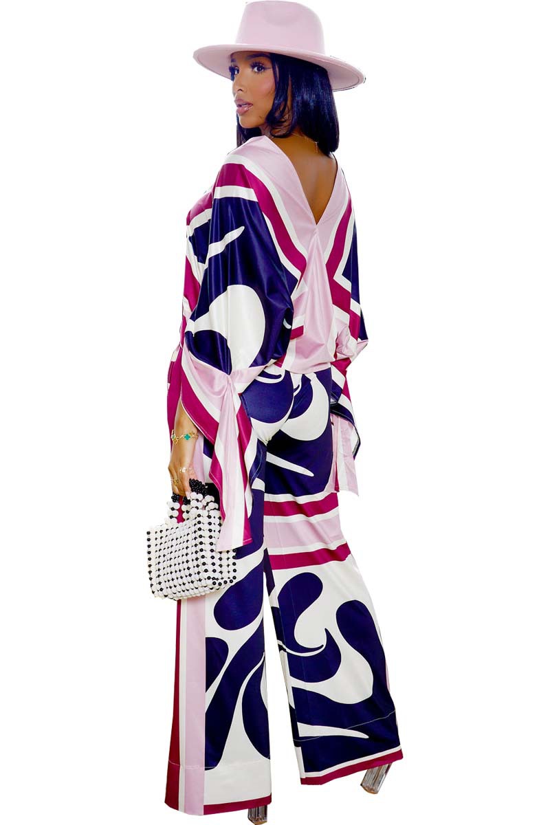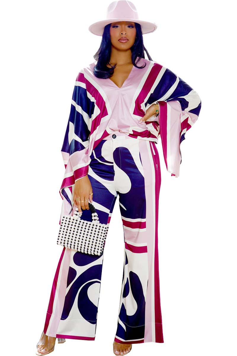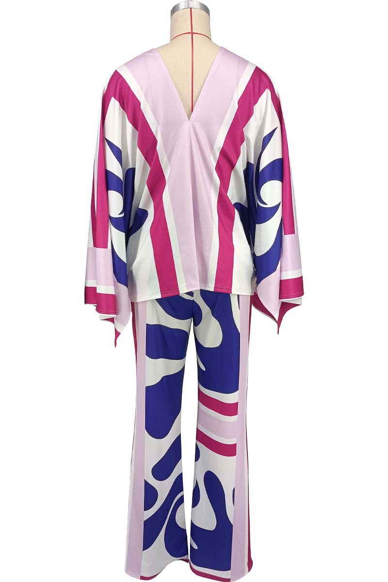 This Plus Size Fashion v-Neck Wide Split Long Sleeve Top Bell Bottom Pants Set Design Made Of High Quality polyester And Spandex Material. It Is Stretchy, Durable And Comfortable. It Is a Must-Have Outfit For All Seasons. retail Two Piece Pant Sets Can Solve Your cloth selection Troubles. Explore More 2 Piece Pants Set On BamBam retail Women Clothing Online Store.