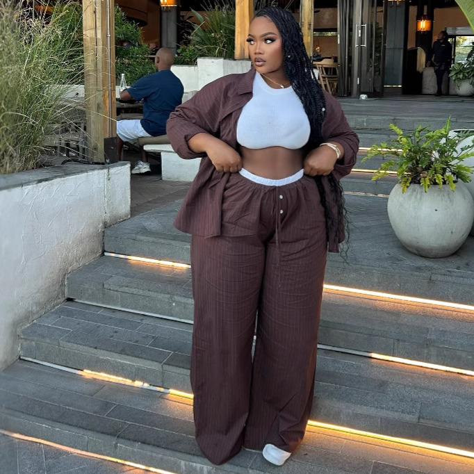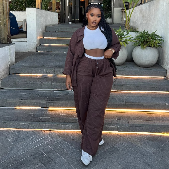 This Plus Size High Waist Striped Shirt Trousers African Trendy Two Piece Set Design Made Of High Quality polyester And Spandex Material. It Is Stretchy, Durable And Comfortable. It Is a Must-Have Outfit For All Seasons. retail Two Piece Pant Sets Can Solve Your cloth selection Troubles. Explore More 2 Piece Pants Set On BamBam retail Women Clothing Online Store.
