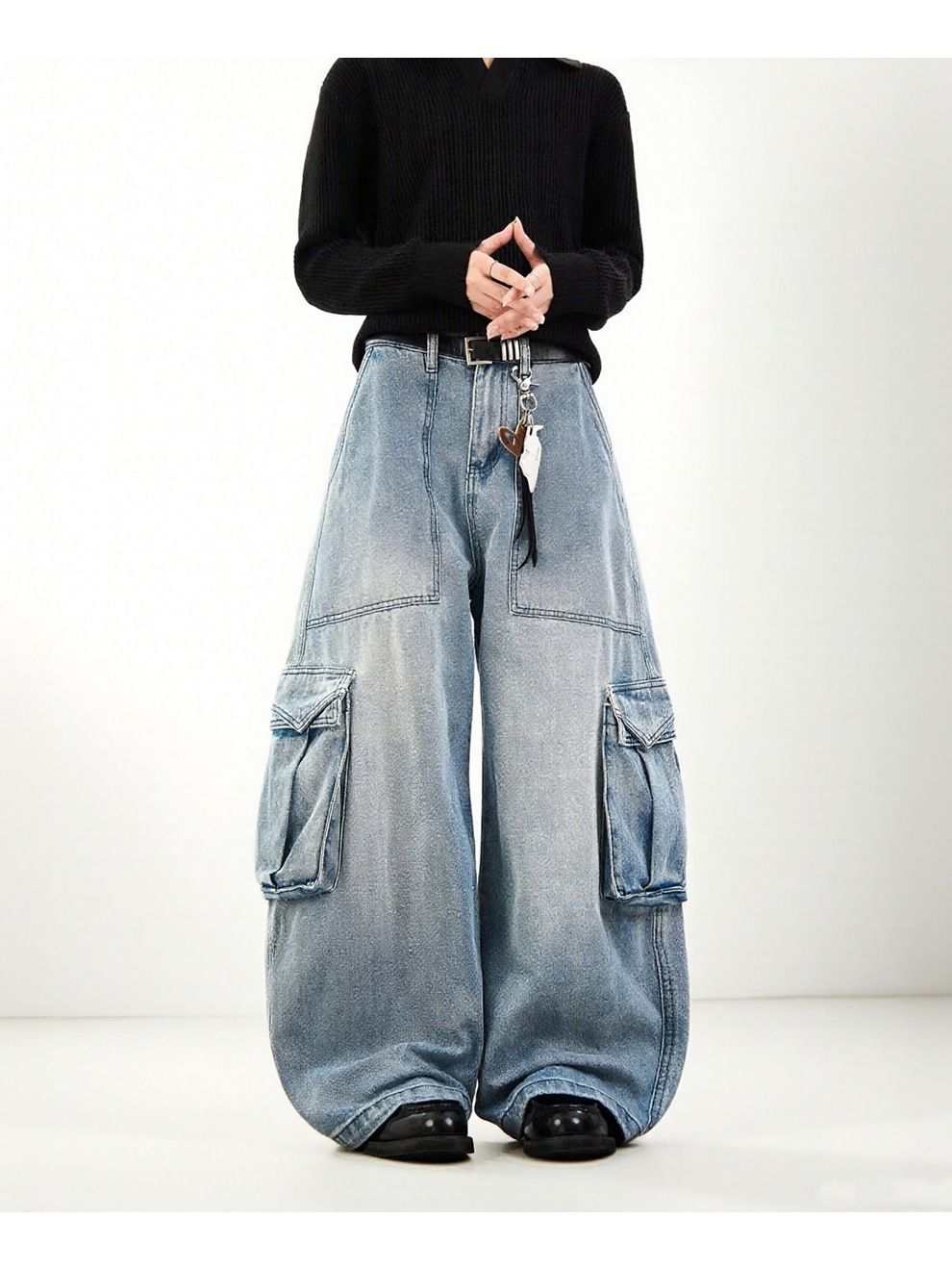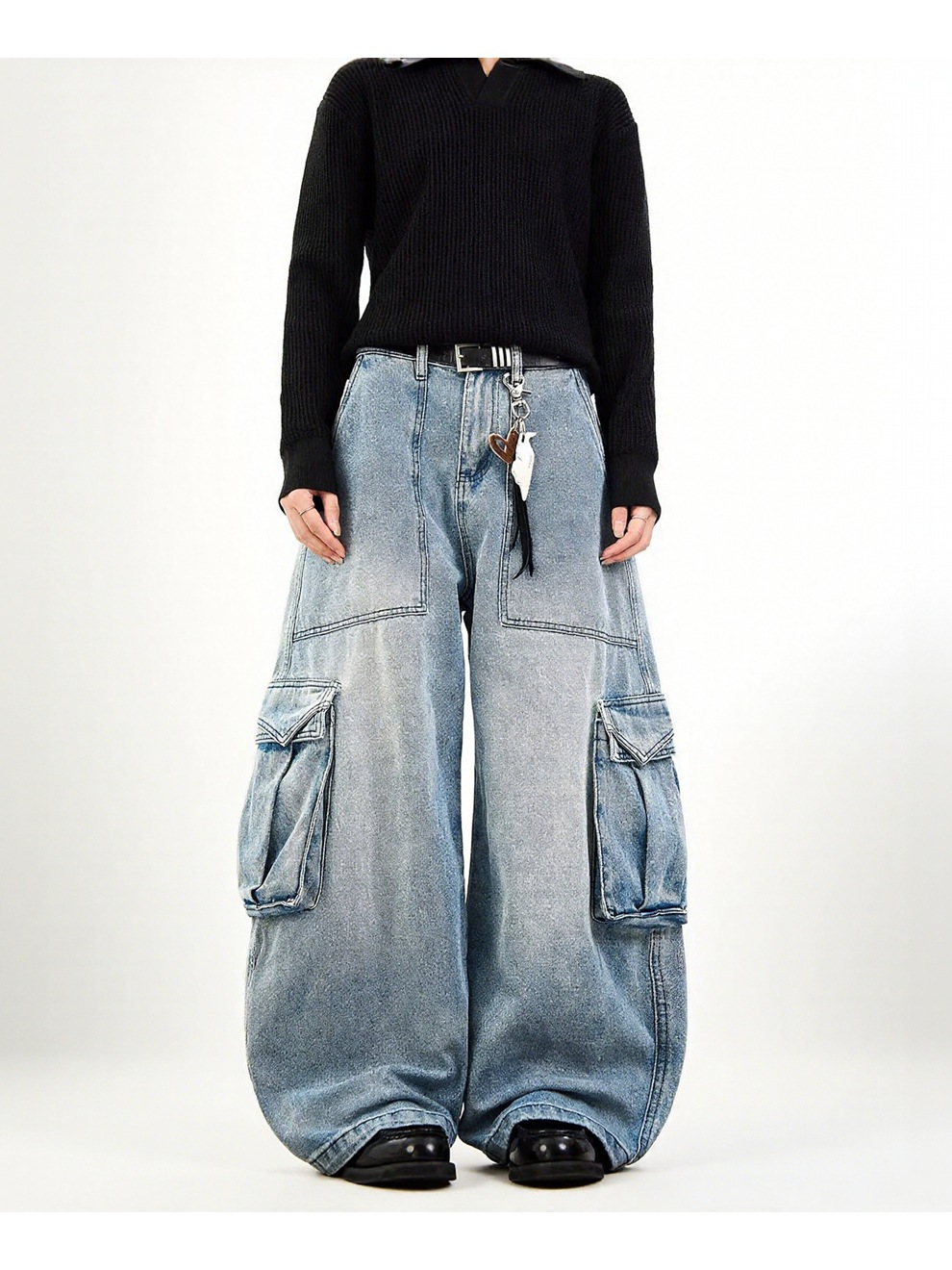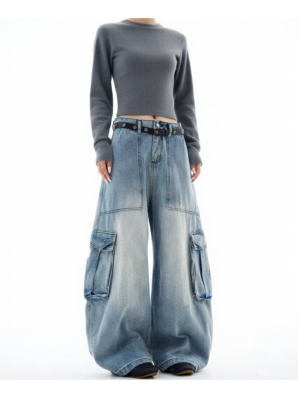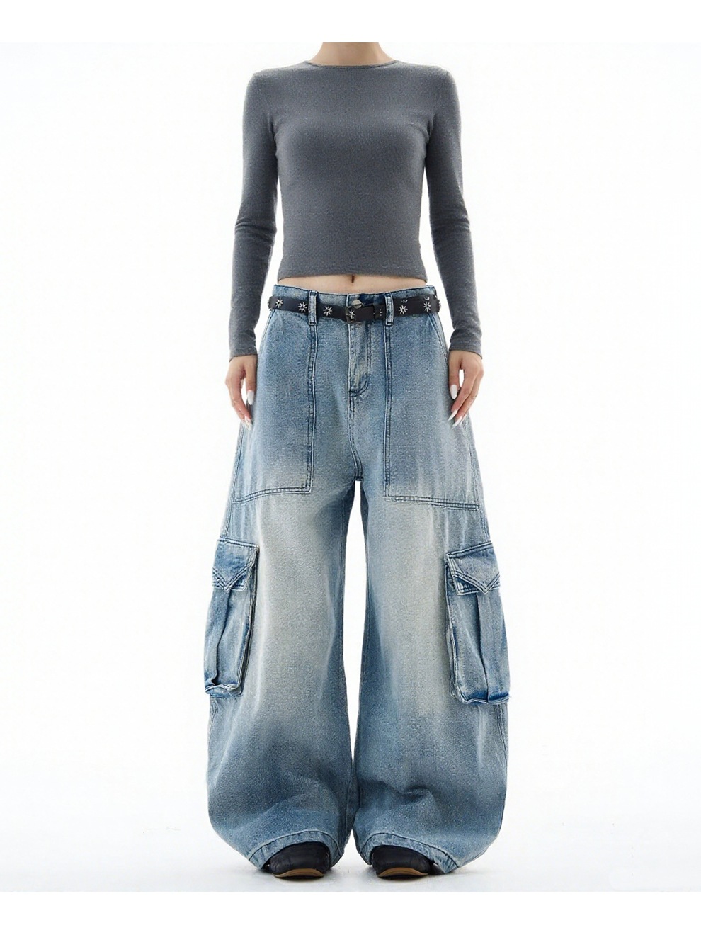 This Plus-Size Women American Blue Cargo Denim Wide-Leg Pants Design Made Of Durable And Stretchy Jeans Fabric. It Is a Must-Have Item For everyday use. Trendy retail Jeans Is a Indispensable Item For Everyday Fashion. Women’s Jeans With High Waist Is a Must Have trouser/pant that helps bring the grace of shape of your legs out even more and fits perfectly snugging your thighs and body gracefully. Grab a Must Have High Waist Jeans retail For Your Closet, Just Choose Different Matching Tops To stay in control of Every Occasion Easily.