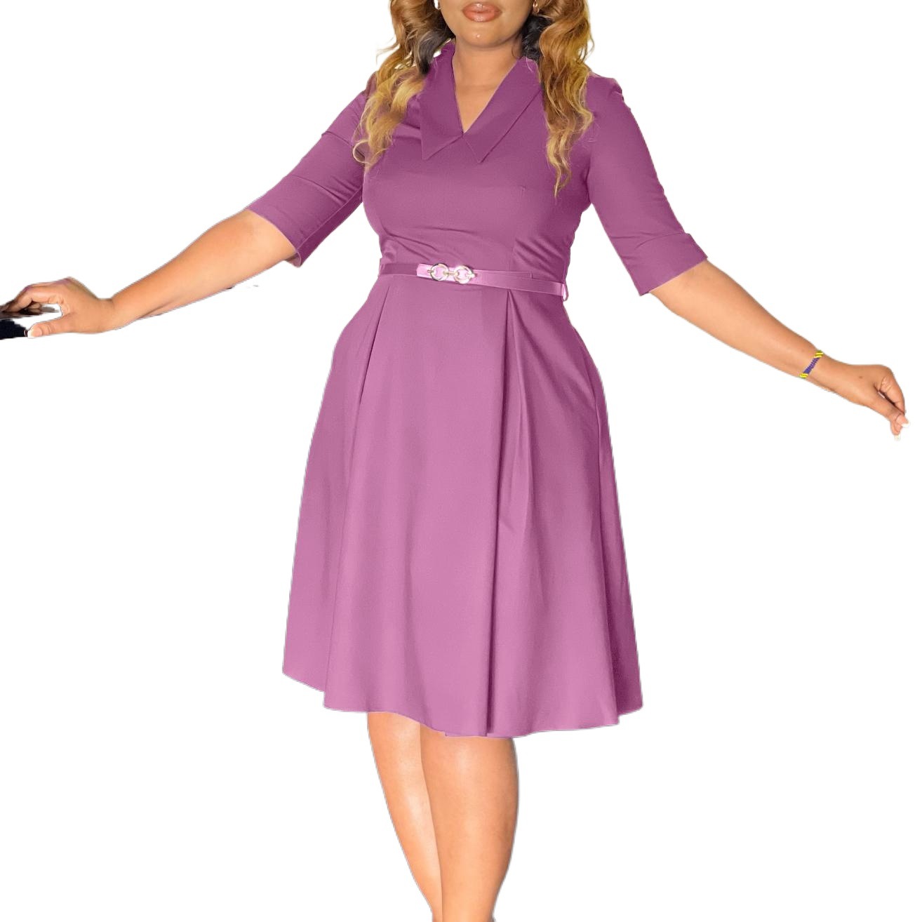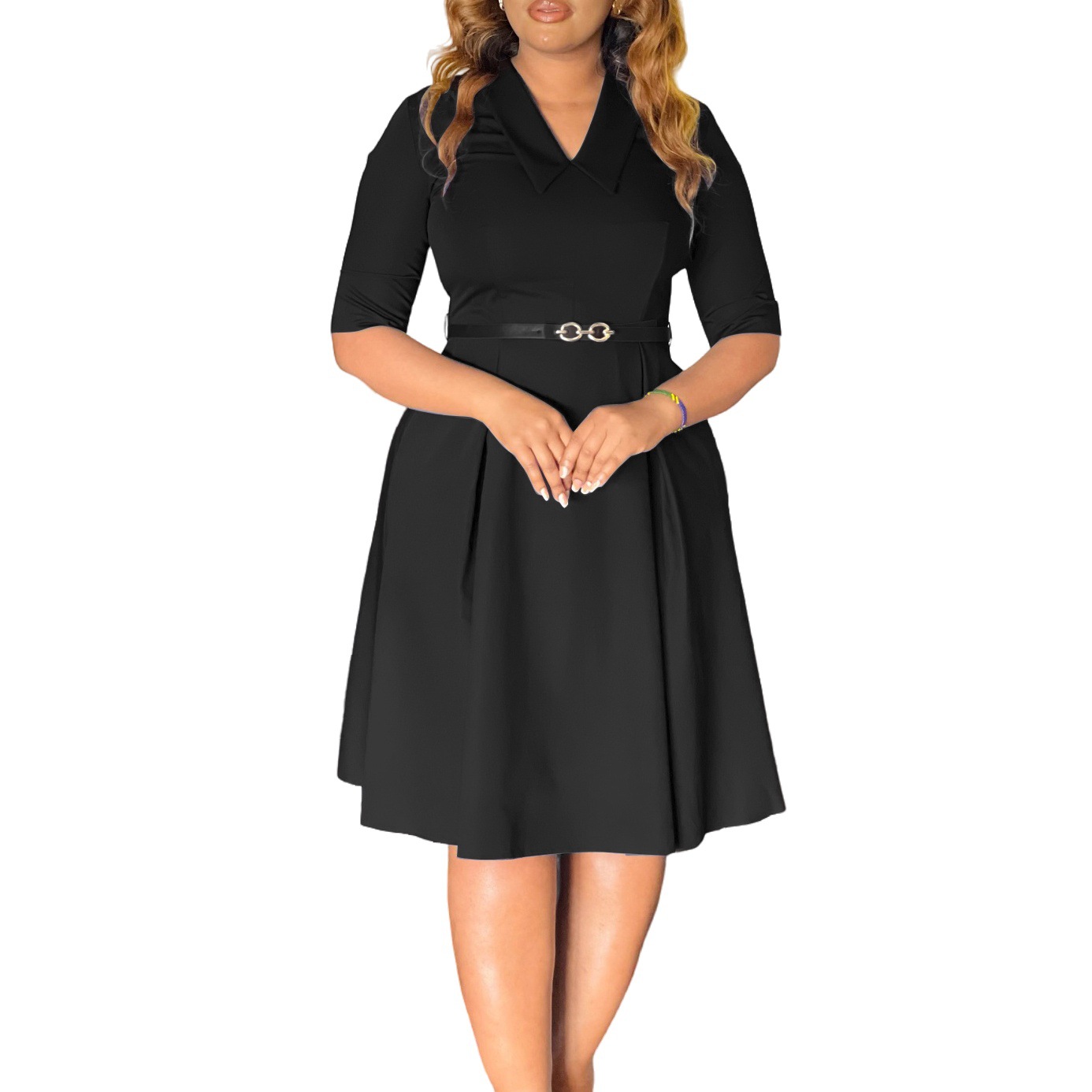 This Plus-Size Women Elegant Solid Turndown Collar African Dress Design Made Of High Quality polyester And Spandex Material. It's nice and stretchy, feels and wears comfortably on your body. Women’s Midi dresses suits all Kinds Of Occasions - Daily Wear, Go To The Church, Commuting And Events Occasion. Midi Dresses can't be Boring, Find Best Midi Dresses At BamBam With Trendy Styles.
