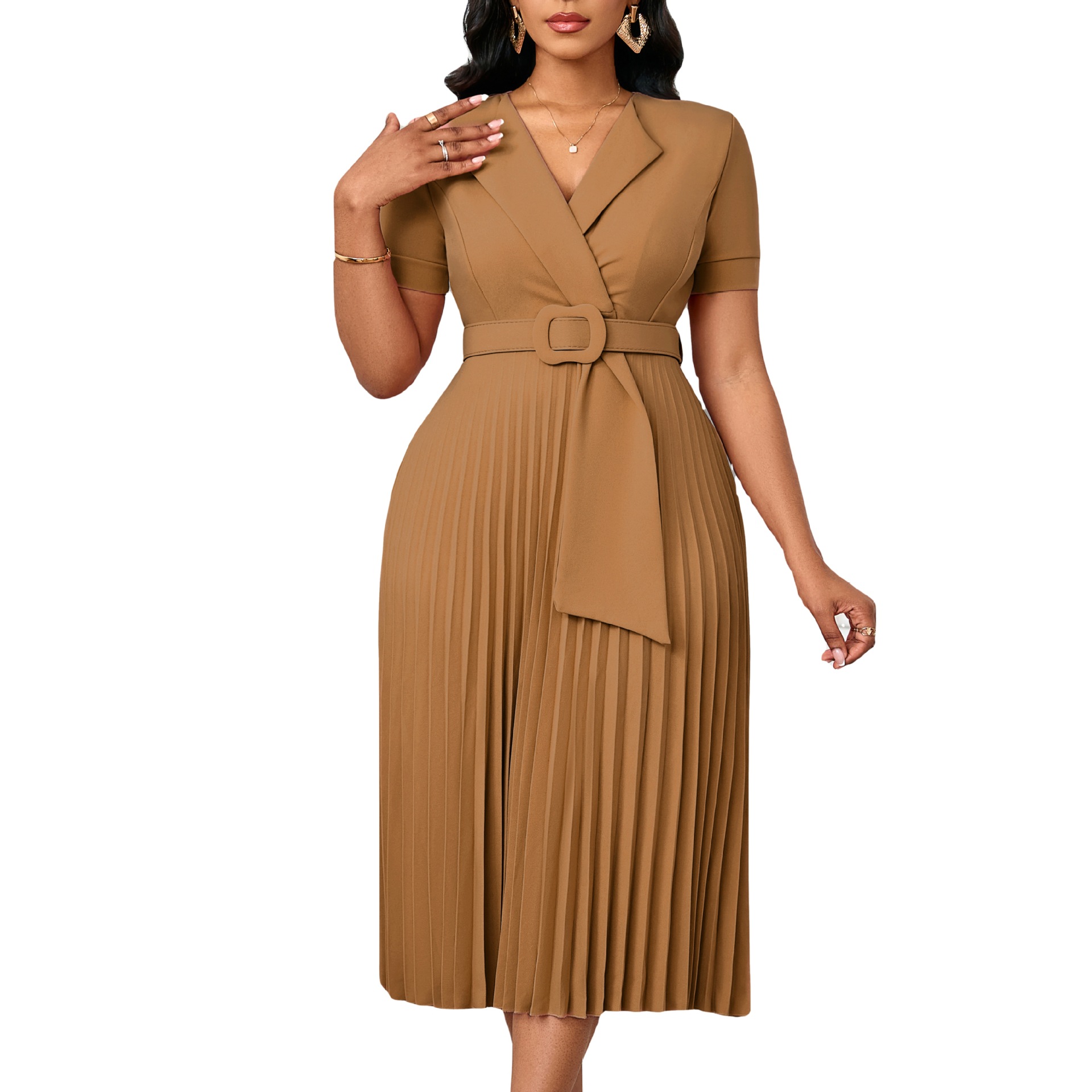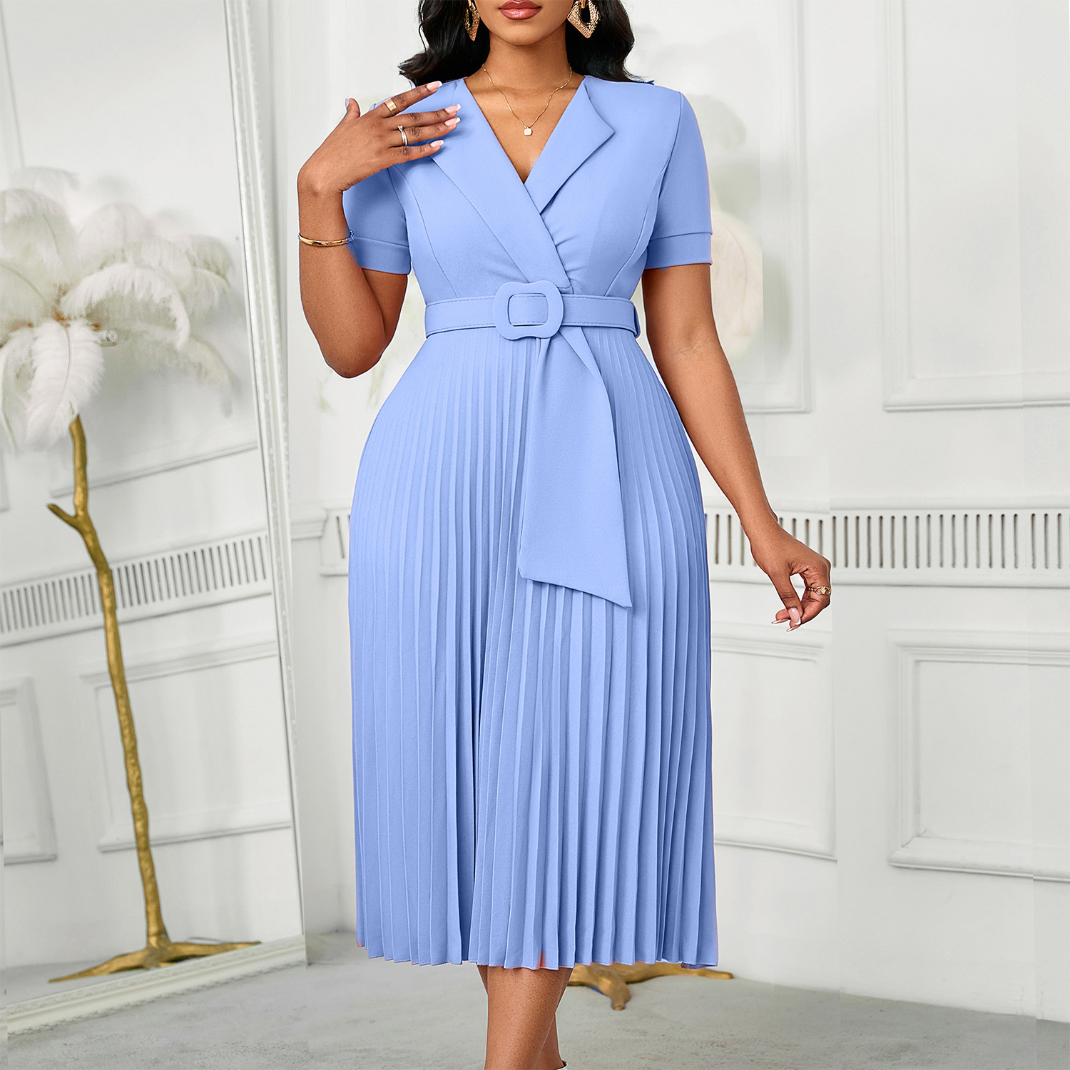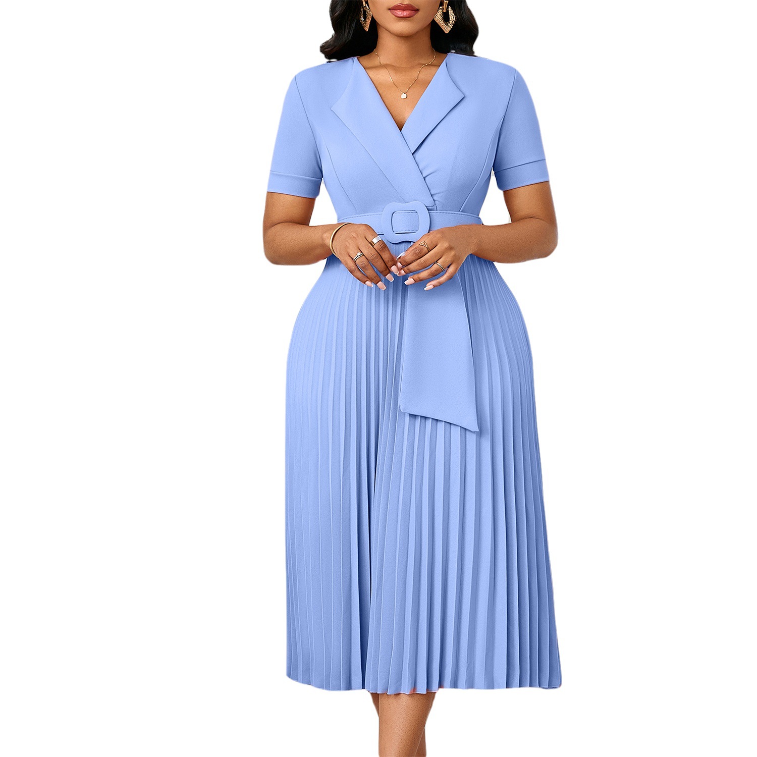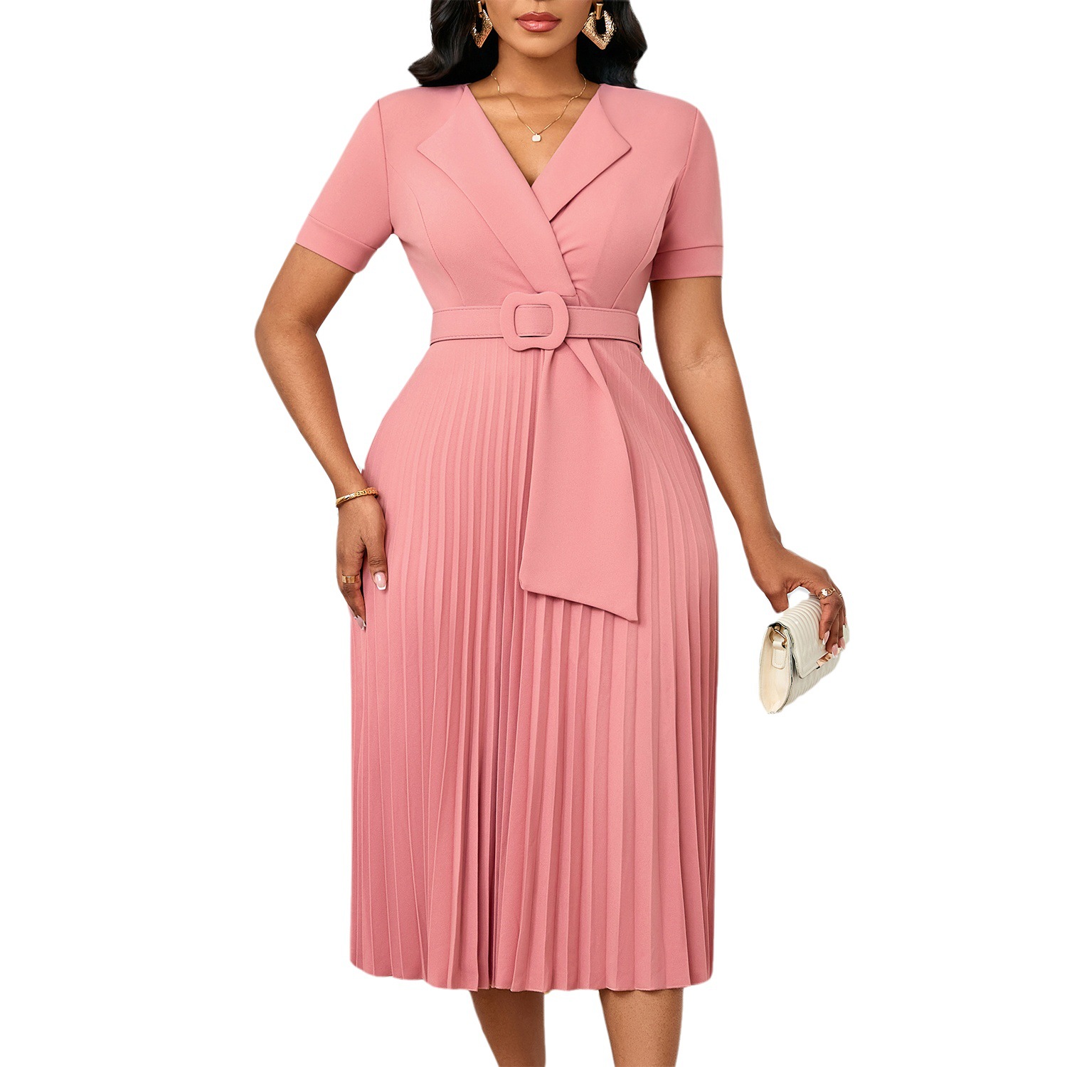 This Plus-Size Women Sexy Short-Sleeved v-Neck Elegant Pleated African Dress Design Made Of High Quality polyester And Spandex Material. It's nice and stretchy, feels and wears comfortably on your body. Women’s Midi dresses suits all Kinds Of Occasions - Daily Wear, Go To The Church, Commuting And Events Occasion. Midi Dresses can't be Boring, Find Best Midi Dresses At BamBam With Trendy Styles.