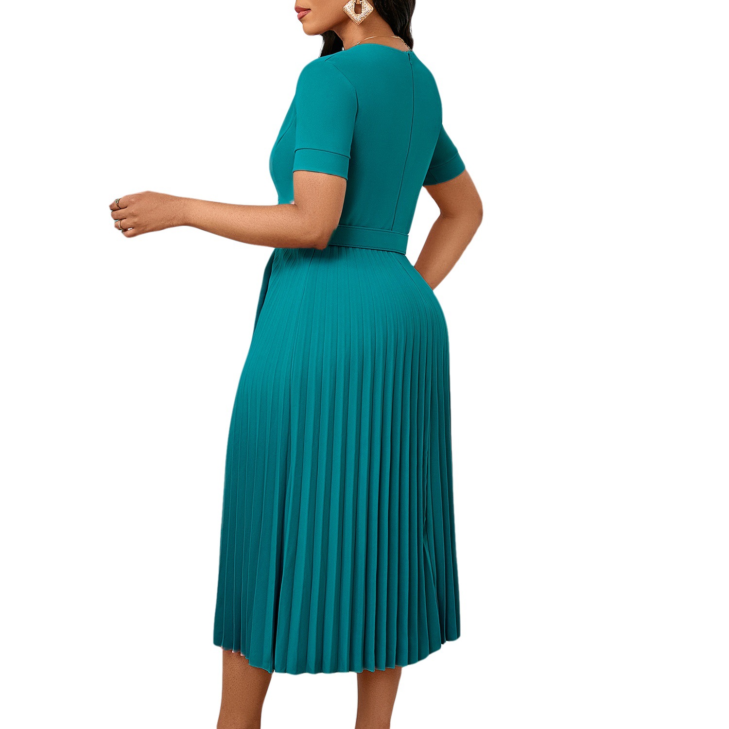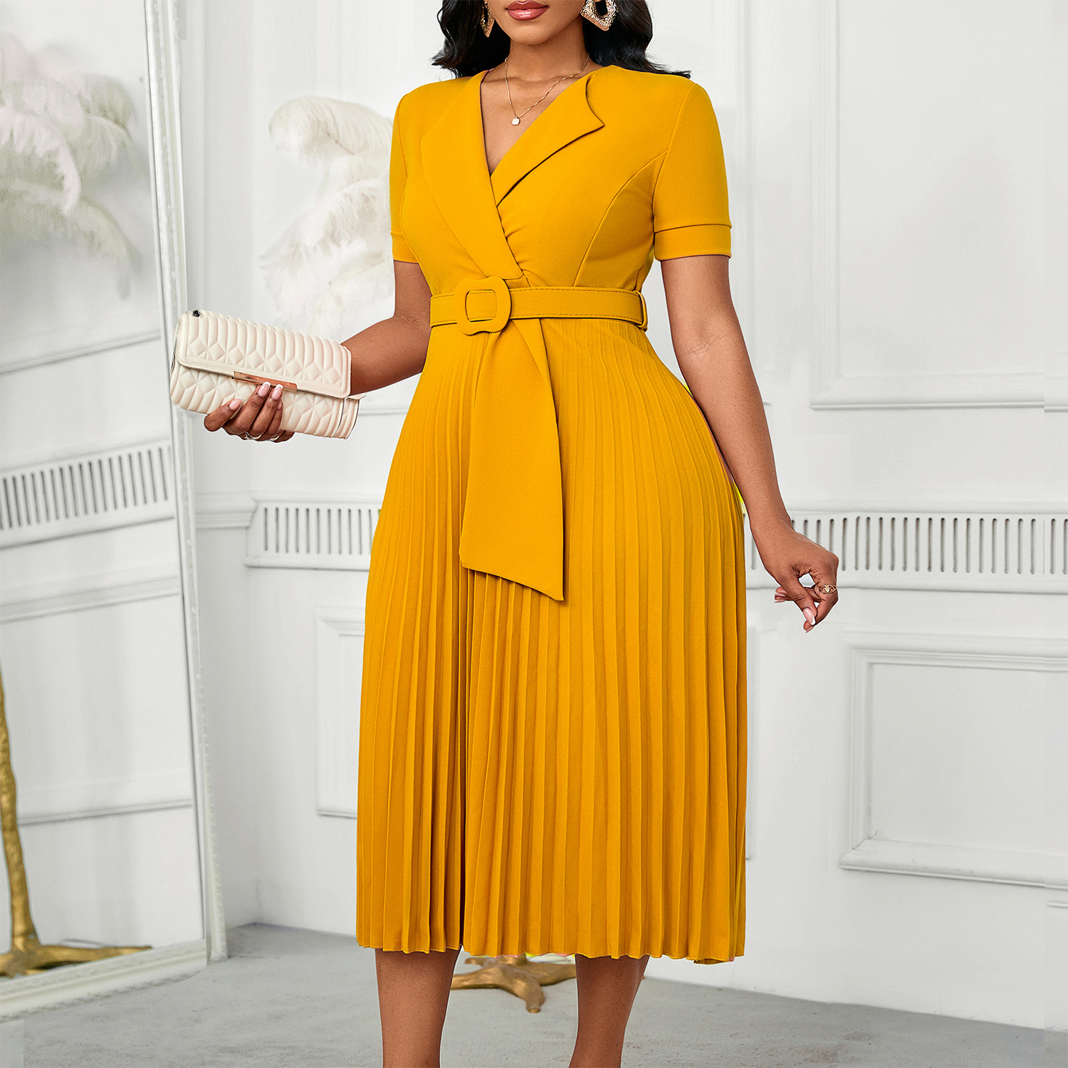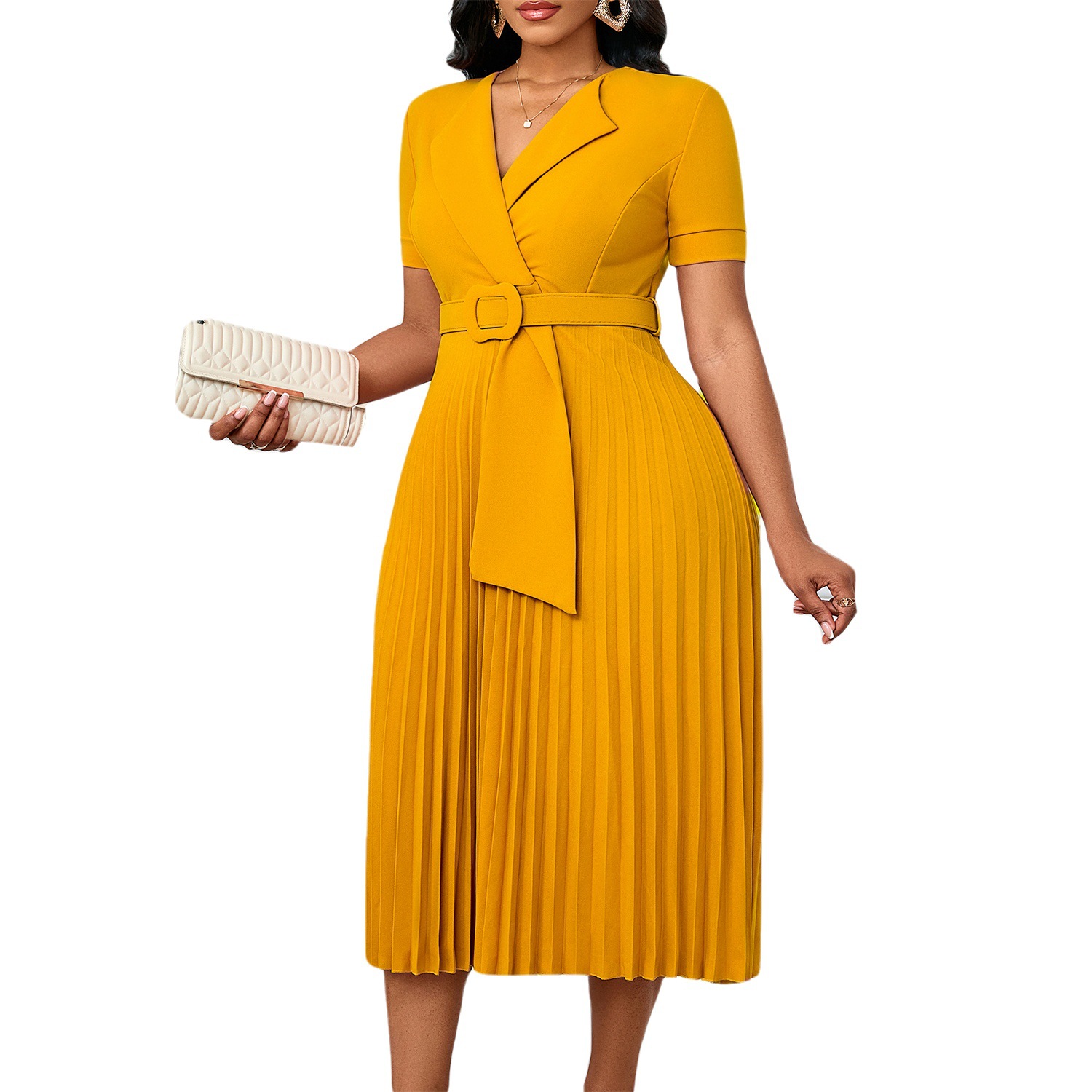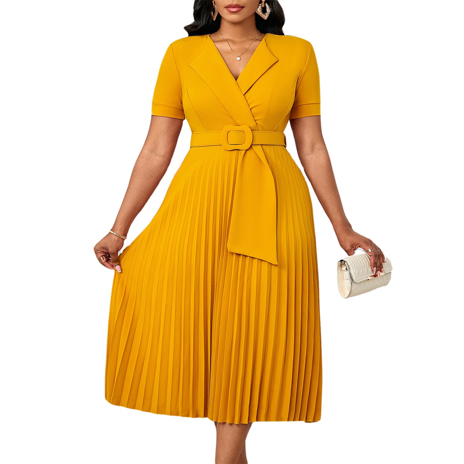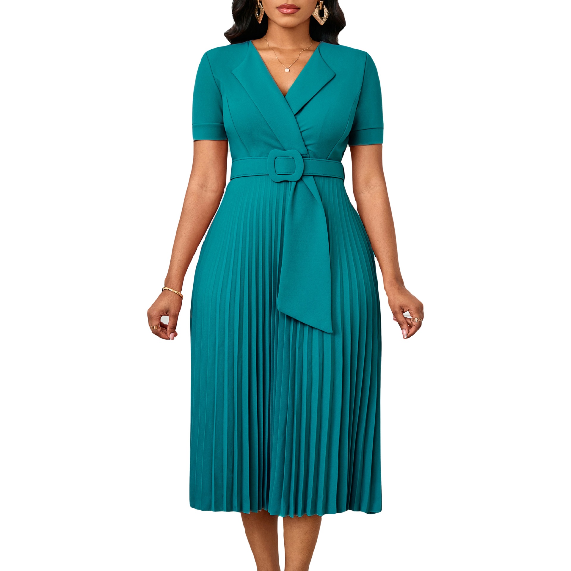 This Plus-Size Women Sexy Short-Sleeved v-Neck Elegant Pleated African Dress Design Made Of High Quality polyester And Spandex Material. It's nice and stretchy, feels and wears comfortably on your body. Women’s Midi dresses suits all Kinds Of Occasions - Daily Wear, Go To The Church, Commuting And Events Occasion. Midi Dresses can't be Boring, Find Best Midi Dresses At BamBam With Trendy Styles.