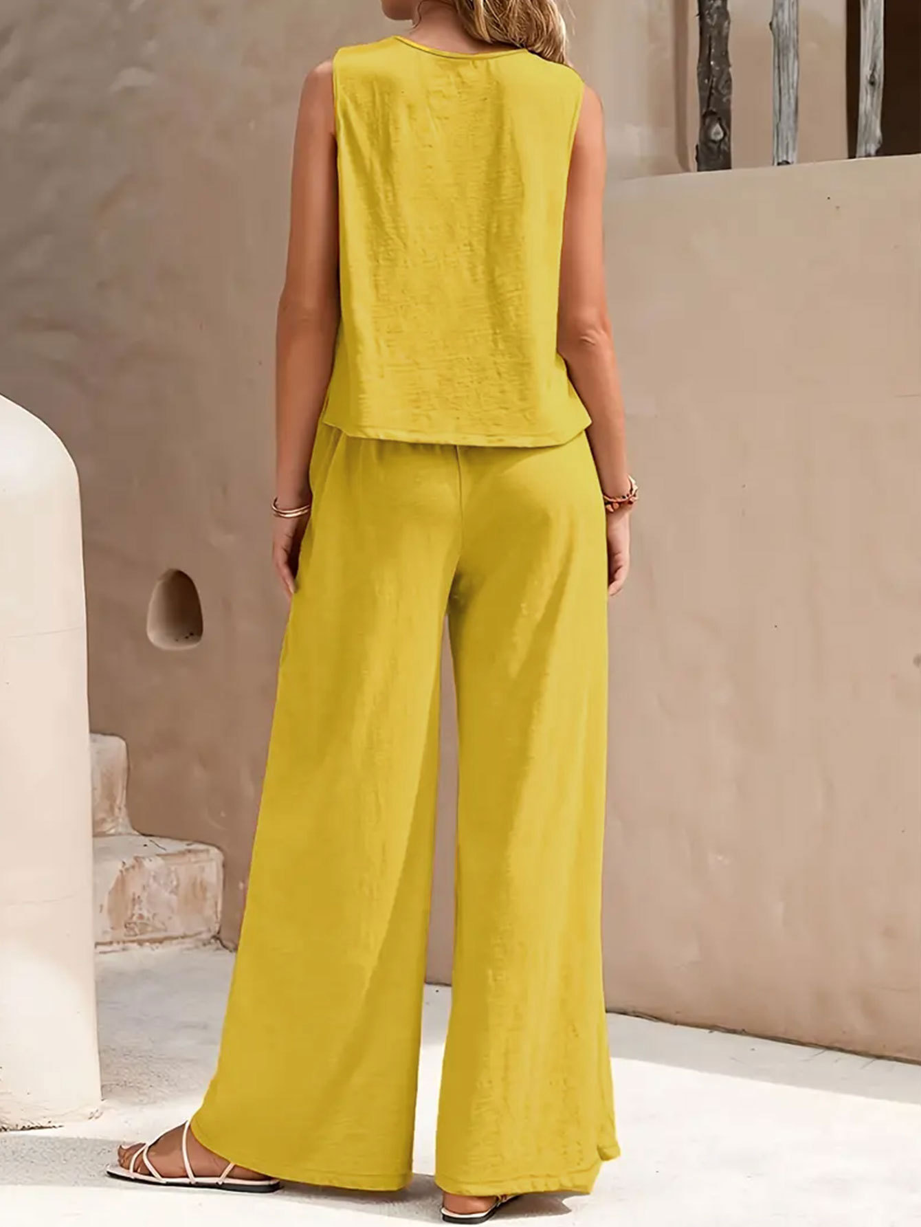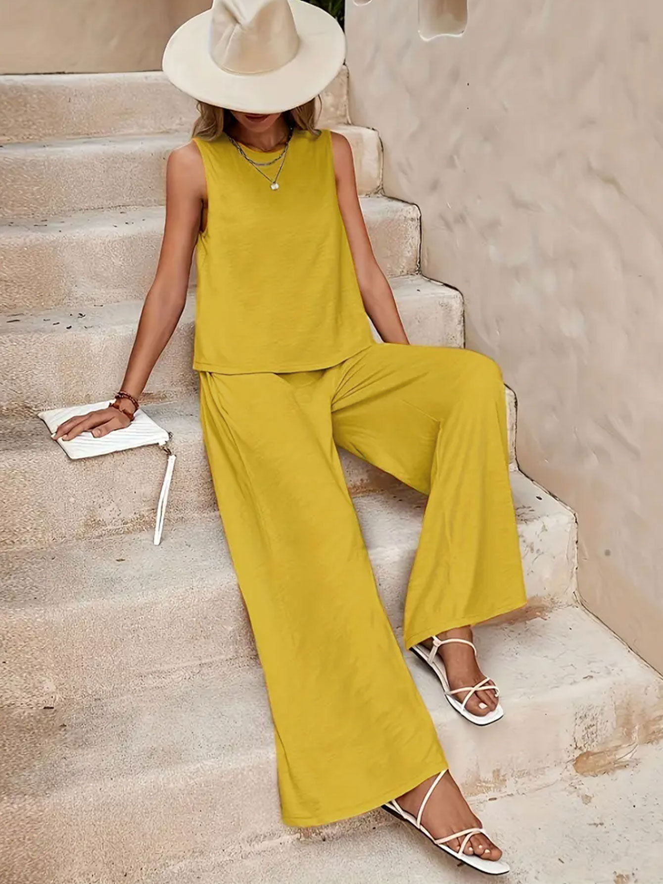 This Plus Size Women Summer Casual Sleeveless Vest + Wide-Leg Pants Two-Piece Set Design Made Of High Quality polyester And Spandex Material. It Is Stretchy, Durable And Comfortable. It Is a Must-Have Outfit For All Seasons. retail Two Piece Pant Sets Can Solve Your cloth selection Troubles. Explore More 2 Piece Pants Set On BamBam retail Women Clothing Online Store.