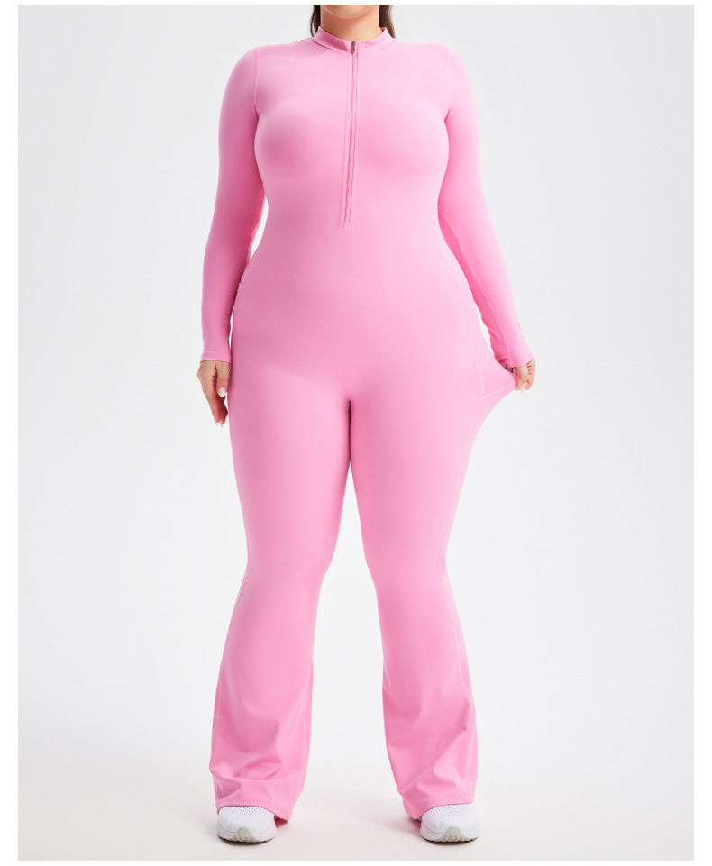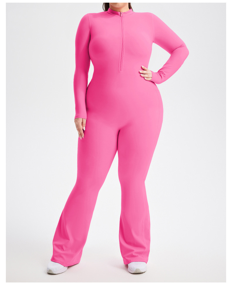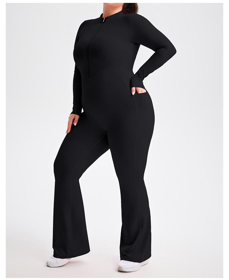 This Plus Size Zipper Long Sleeve Fitness Sport Bell Bottom Jumpsuit Tight Fitting Yoga Wear Design Made Of High Quality polyester And Spandex Material. It Is Stretchy, Durable And Comfortable. This Is The New Trend. Ladies Do Not Have To Worry About dress Matching. a Sexy Tight Fitting Jumpsuits And Rompers For Women Will fit the party. a Loose Cut Jumpsuit With Wide Legs Appears More Elegant For Occasions. When You Need More Sexy Plus Size Jumpsuits retail Online, You Can Find All Sizes Xl, Xxl, Xxxl, Xxxxl, Xxxxxl, Xxxxxxl At BamBam.