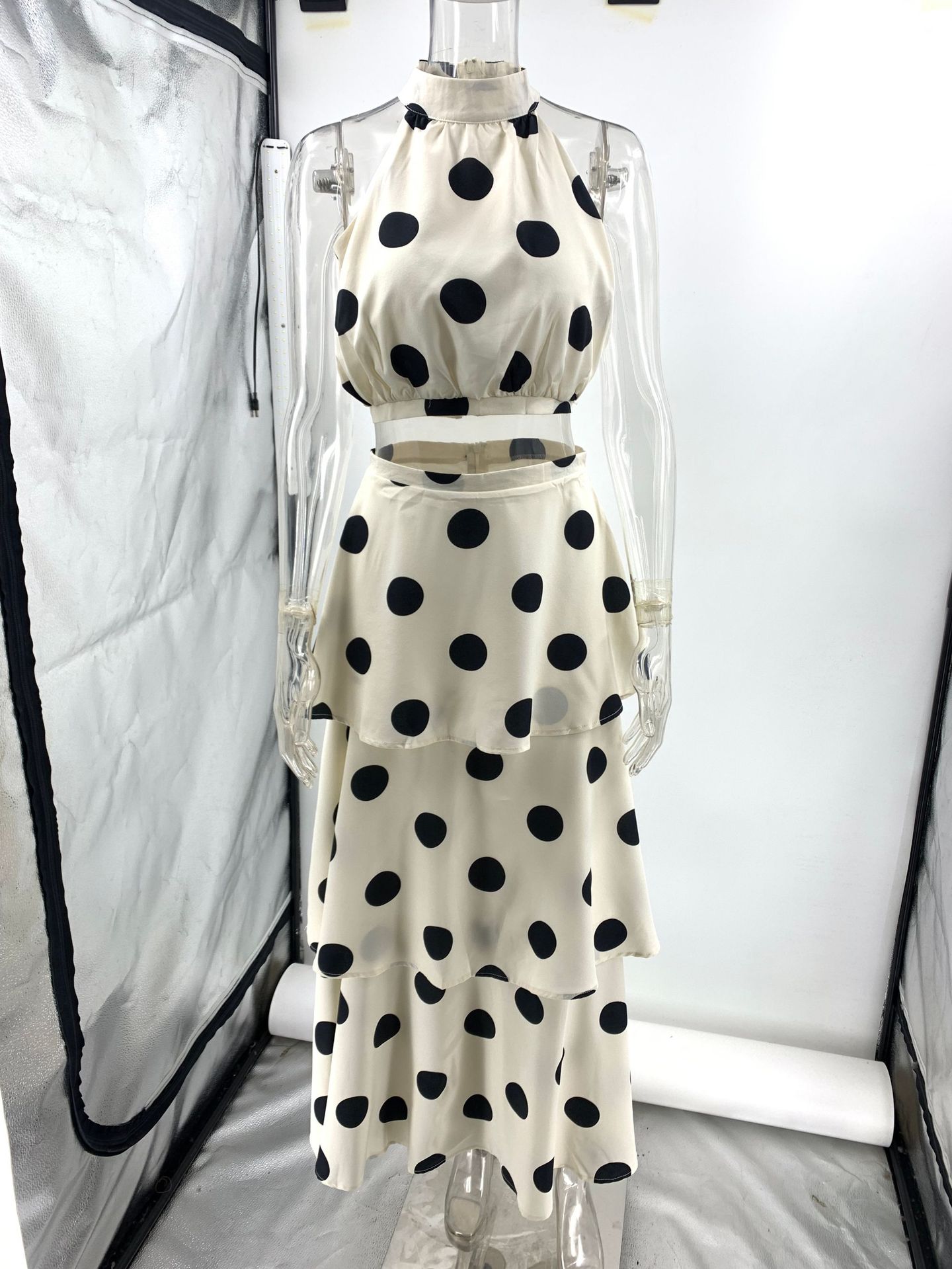 This Polka Dot Halter Neck Sleeveless Top & Tiered Skirt Set Design Made Of High Quality polyester And Spandex Material. It Is Stretchy, Durable And Comfortable. It Come With The Top And Skirt Matching Set. Women’s Skirt Suit Sets Is a Great Alternative To One Piece Outfit. It Can Either Be Worn Together Or Individually, So You Can Combine Them Endlessly. Grab Different Two Piece Skirt Set retail On Our Website a Women's Clothing Store Online At Really affordable price And Enjoy fast delivery worldwide.
