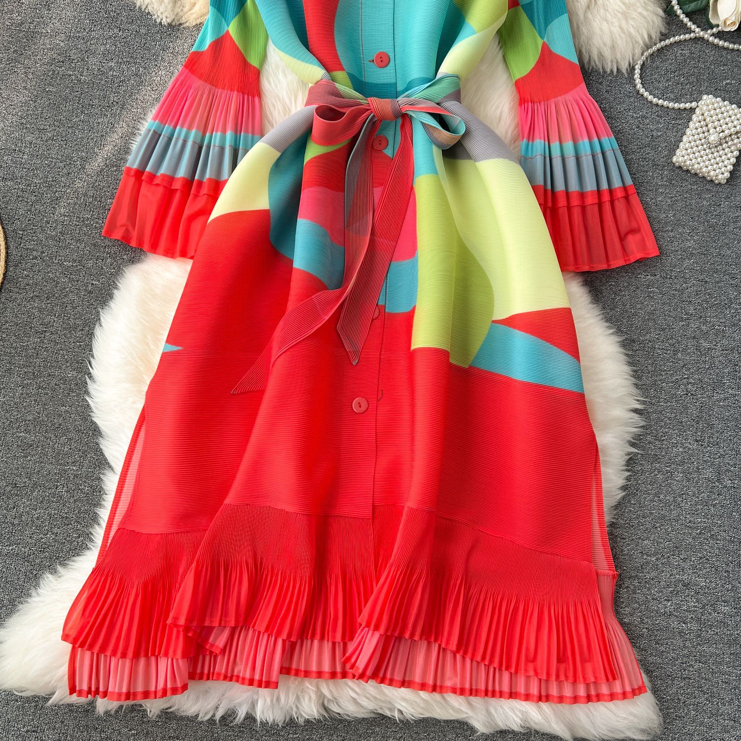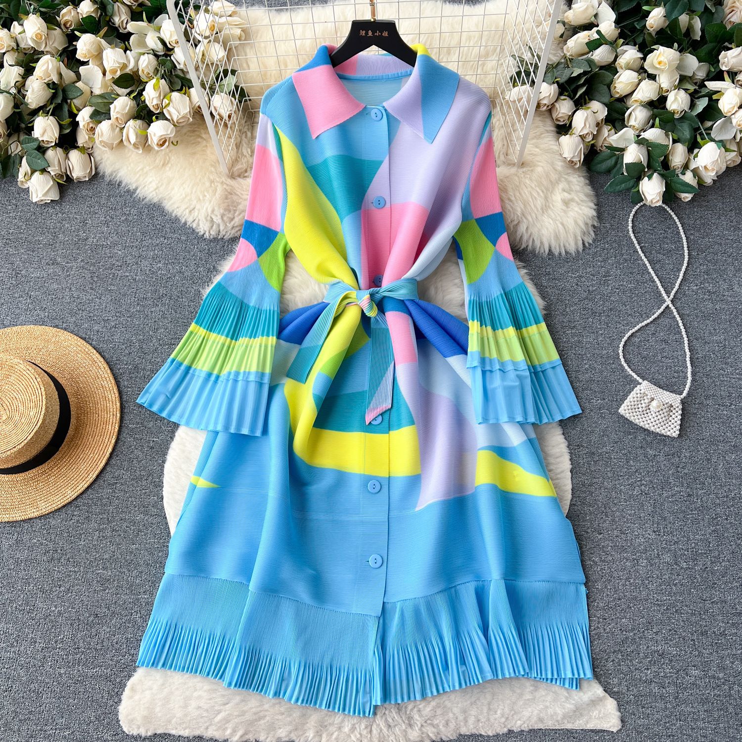 This Print Women Summer Loose Slim Fit Casual Pleated Dress Design Made Of High Quality polyester And Spandex Material. It Is Stretchy, Durable And Comfortable. Casual Dresses With Long Sleeves Can Not Only Be Worn As Outerwear In Spring And Autumn, But Also Matching a Jacket In Winter, It Is a Must Have Item For Every Season. Grab Really Great Buy Casual Dresses For Women And Grow Your Business. No Moq In BamBam.