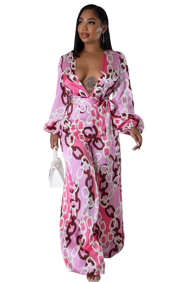 This Printed Deep v Long Sleeve Women's Casual Loose Jumpsuit Design Made Of High Quality Polyster And Spandex Material. It Is Stretchy, Durable And Comfortable. Affordable Sexy Jumpsuits For Women Has Long Been a Party Favorite. BamBam provides a Rich selection Of Sequin, Beaded, See Through Mesh, Leopard, Floral Lace, Leather, Velvet, Tight And Fitted retail Jumpsuit Without Moq Limit.