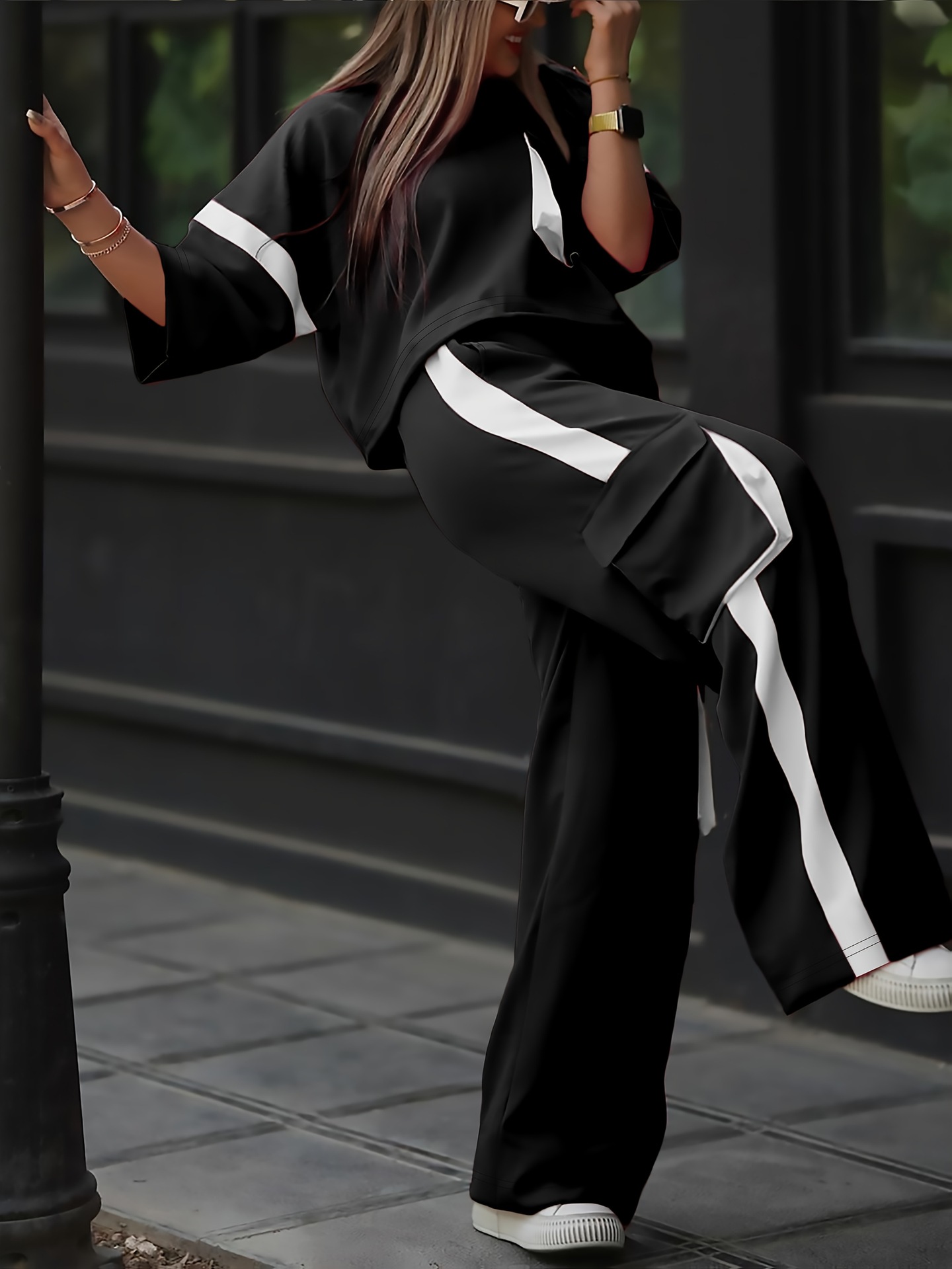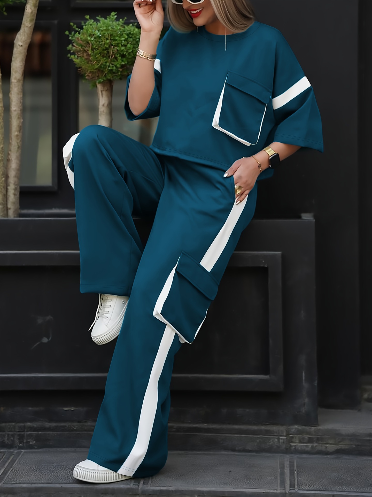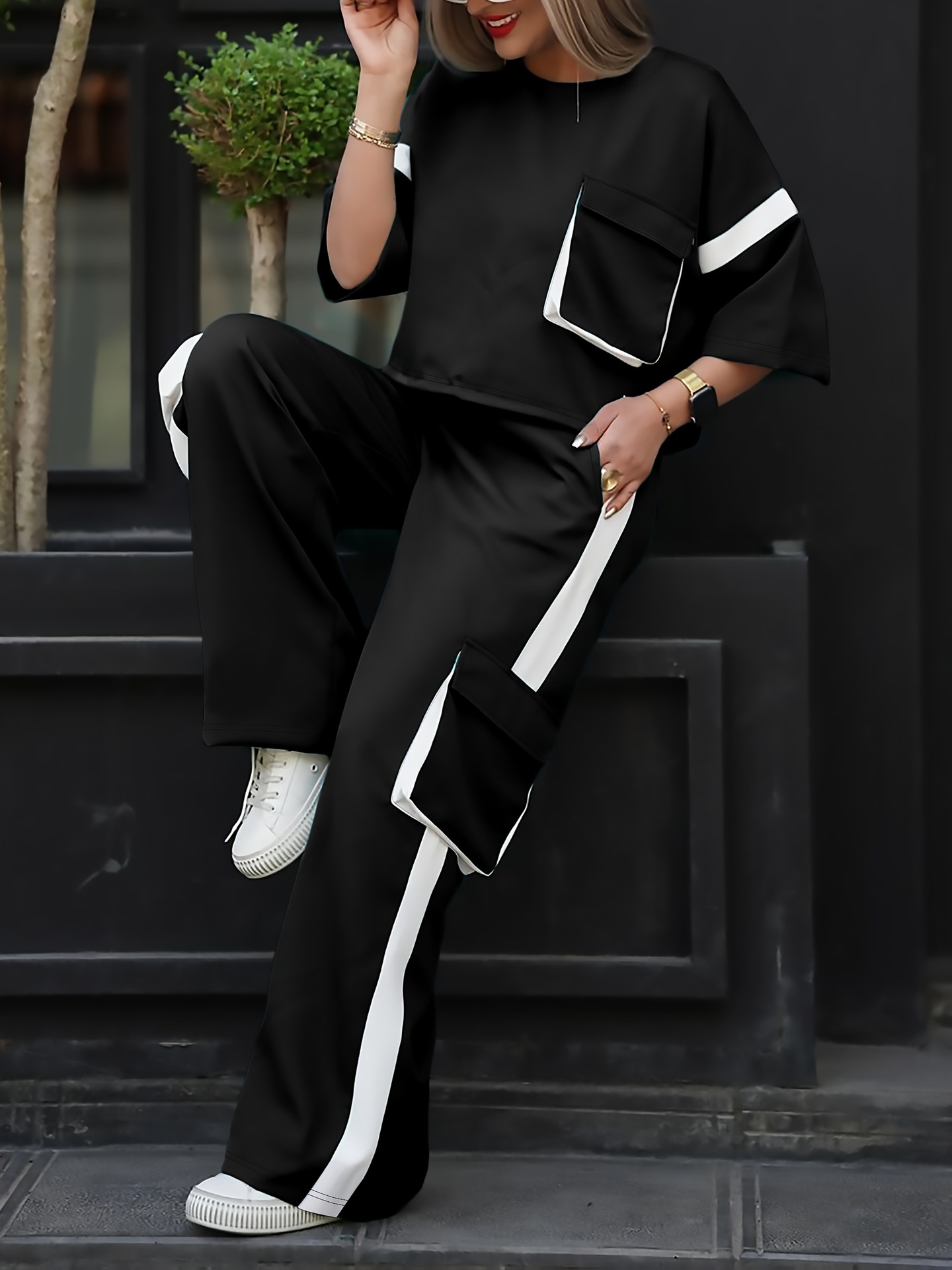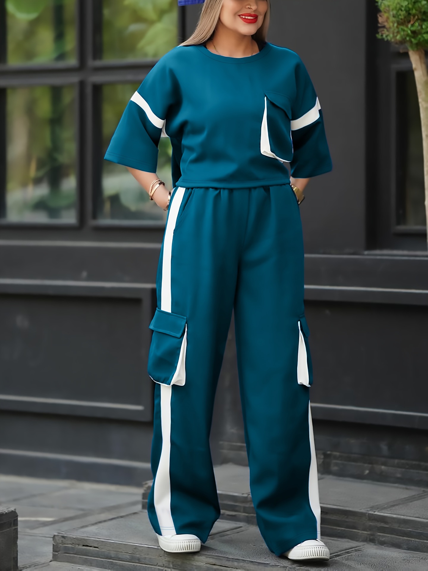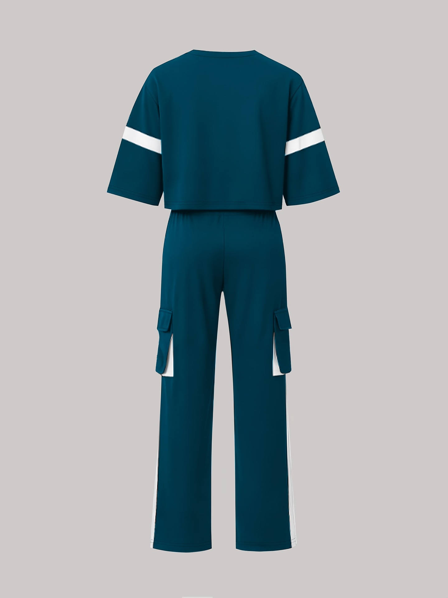 This Retro American Streetwear Sports Short Sleeve Two-Piece Pants Set Design Made Of High Quality polyester And Spandex Material. It Is Stretchy, Durable And Comfortable. It Is a Must-Have Outfit For All Seasons. retail Two Piece Pant Sets Can Solve Your cloth selection Troubles. Explore More 2 Piece Pants Set On BamBam retail Women Clothing Online Store.