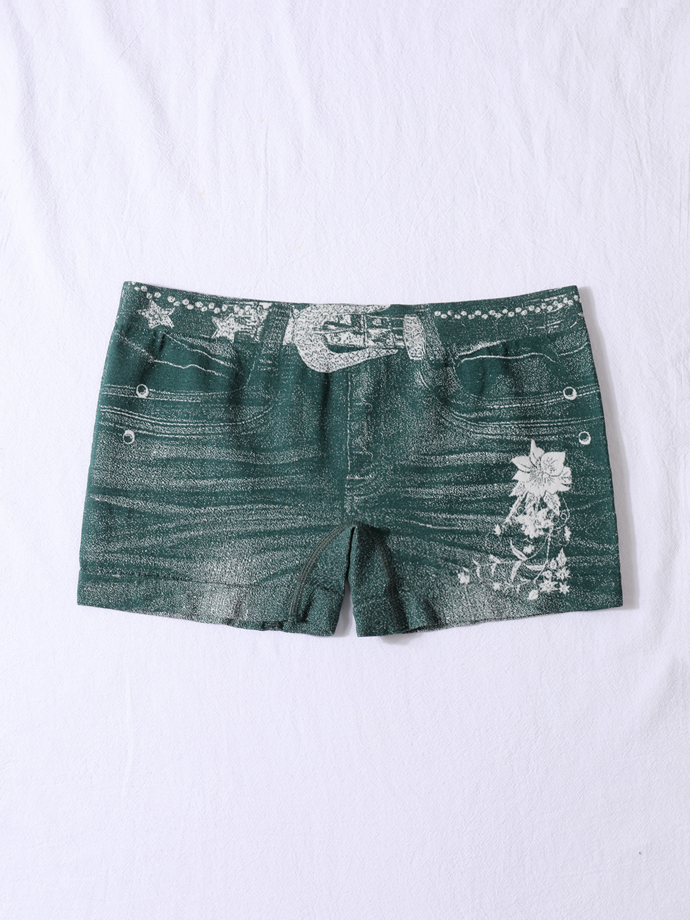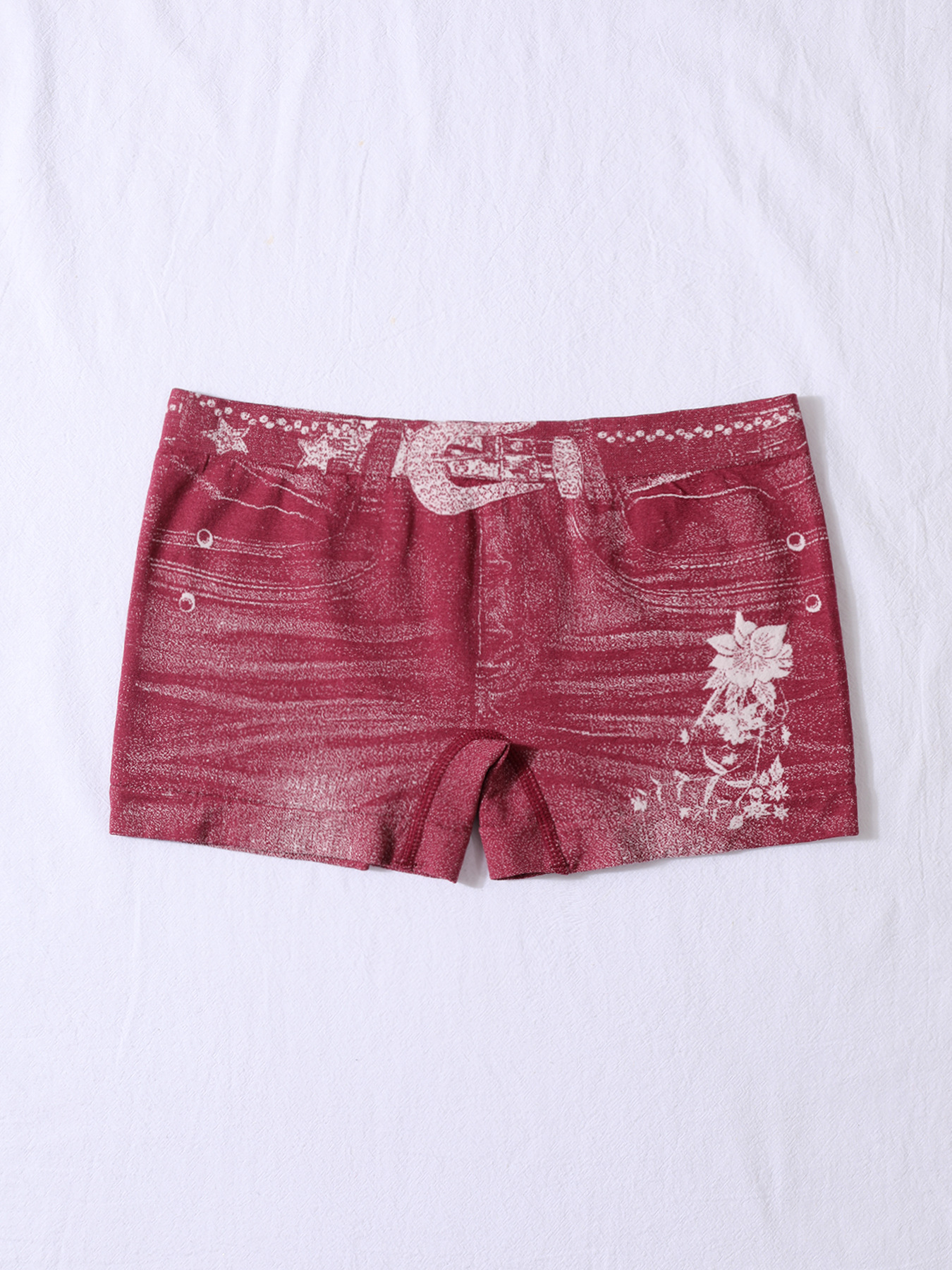This Seamless Simulated Denim Pattern Print Outdoor Wear High Stretch Mid-Rise Women's Square Leg shorts Made Of Durable And Stretchy Material. It Is a Must-Have Item For This Summer. No One Can Refuse Sexy Shorts For Women In The Burning Summer. retail Women’s Shorts Not Only Make You Feel Cool In Summer, But Also make you look classy. It Is a Must-Have Item For Summer. BamBam Offer Large Collection Of affordable Shorts For Sale - Bermuda Shorts, Denim Shorts, Biker Shorts, Hot Shorts, Jogging Shorts, Snack Shorts...When You Need More retail Women Shorts, You Can Always Find What You Need On Our retail Women Clothing Online Store.