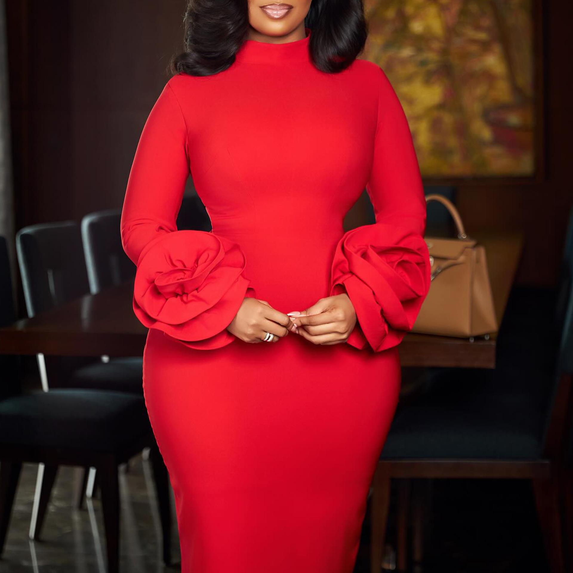 This Semi-High Neck Chic Slim Elegant Office Floral Long Sleeve Bodycon Dress Design Made Of High Quality polyester And Spandex Material. It smooth and stretchy And wears comfortably with a keen sense of freedom and ease. The Tight And Fitted Dress Is The Most Popular dress option for those that like to party hard. Shop Bodycon Dresses At BamBam And Find Amazing Designs Sequins, Beaded, Diamond, Crystals, Lace... BamBam retail Women Dresses Online Store is your one stop shop that helps By Providing Vary Dresses At quality and afforable prices with limitless variations.