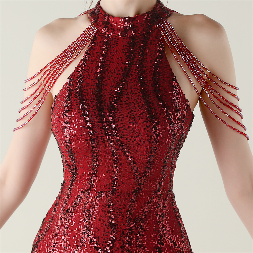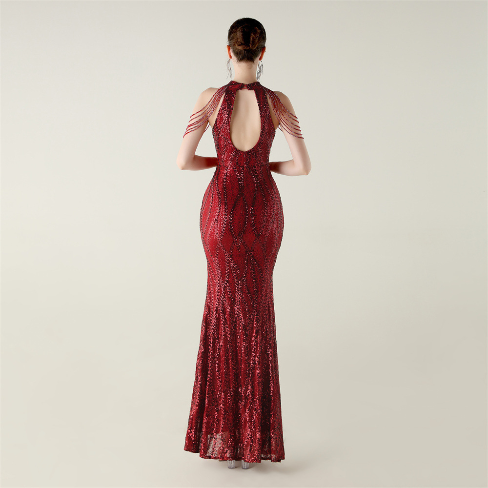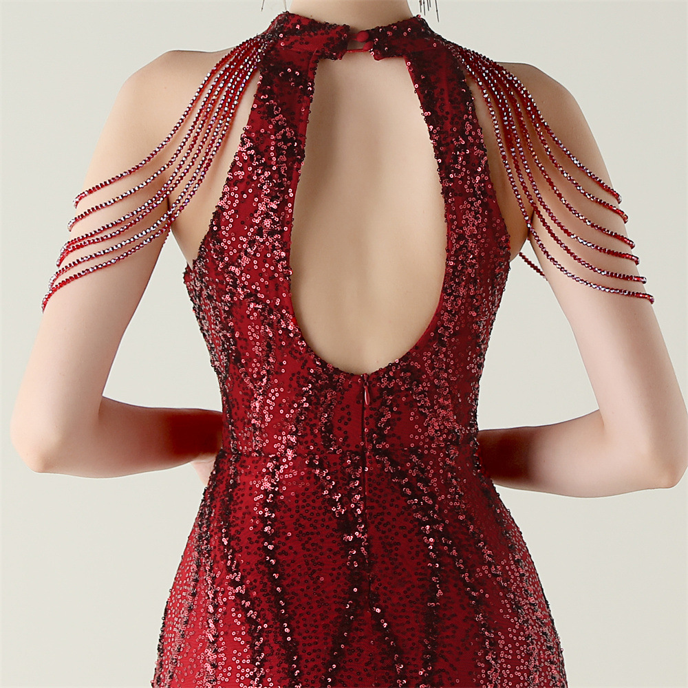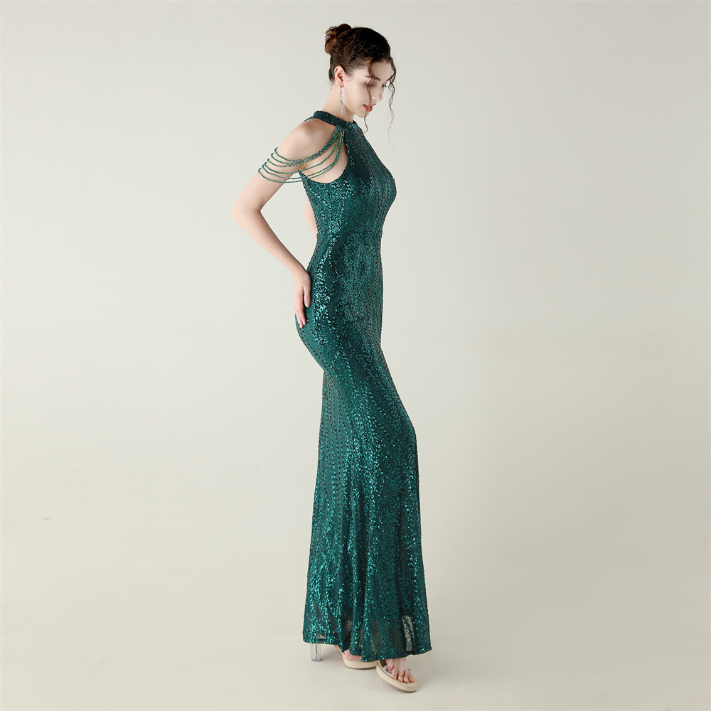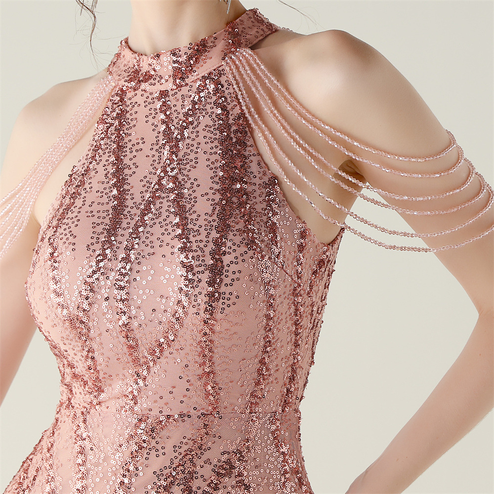 This Sequin Beaded Off-Shoulder Halter Fishtail Evening Dress Design Made Of Good Quality Polyester And Spandex Material, Which Is Stretchy, Durable And Comfortable. The Long Evening Dresses And Gowns Is Always The main Choice For All Kinds Of Parties, Cocktail, Prom, Events, And Dating Occasions. Evening Gowns At BamBam Comes With Huge Selections - Sequins, Beaded, Satin, Velvet, Lace.... When You Need retail Evening Dresses, BamBam retail Women Garment Online Shop Is Your One-Stop Online Shopping Choice.
