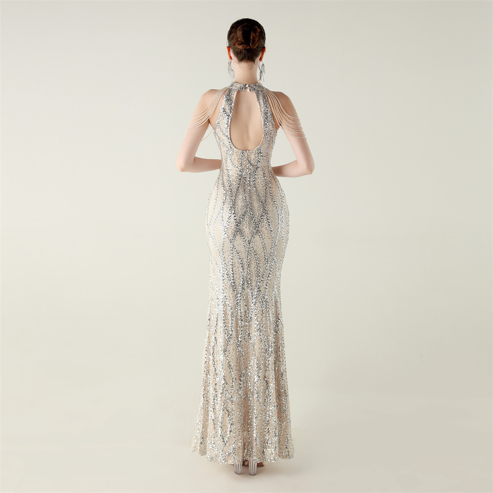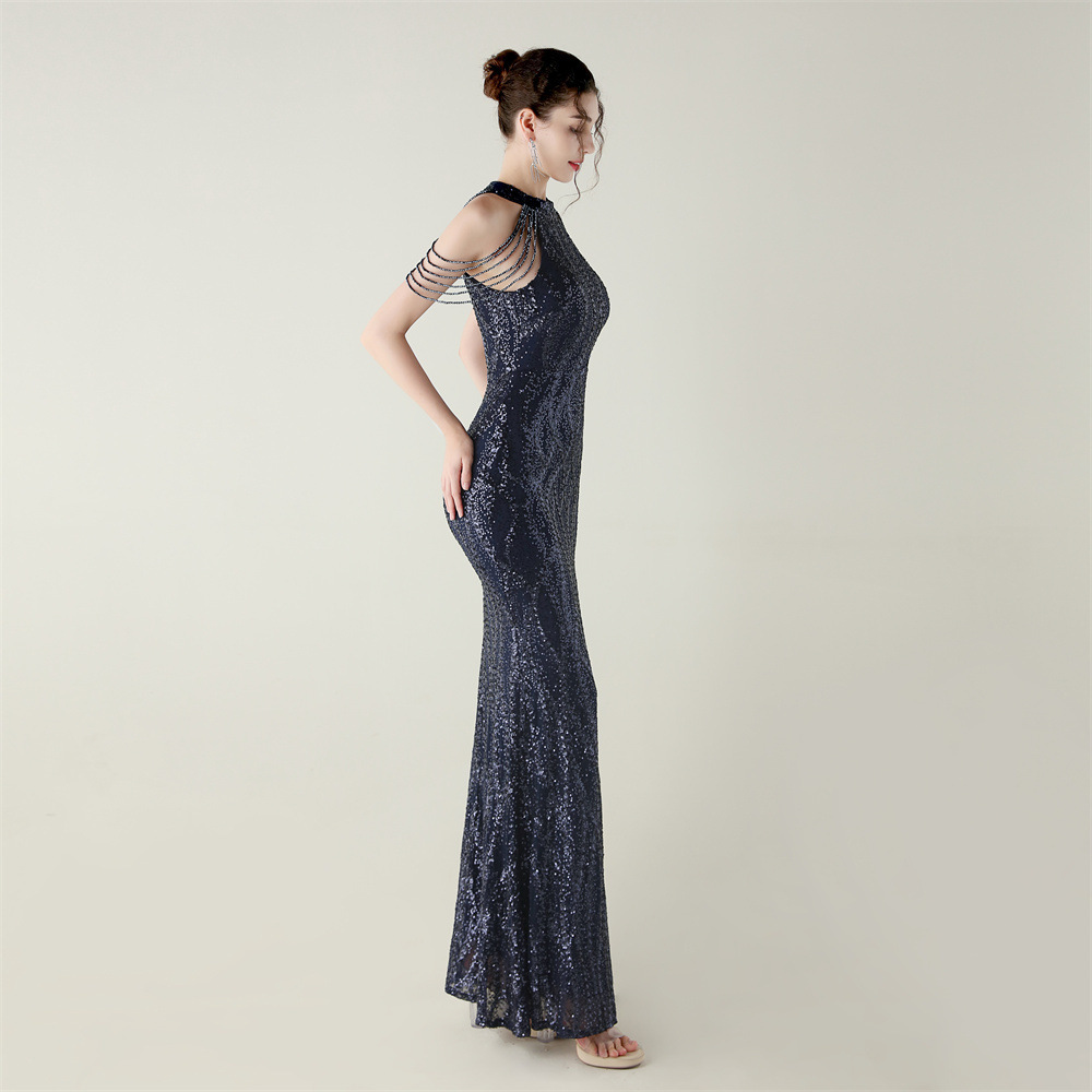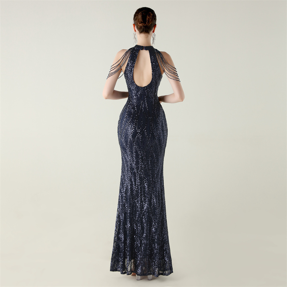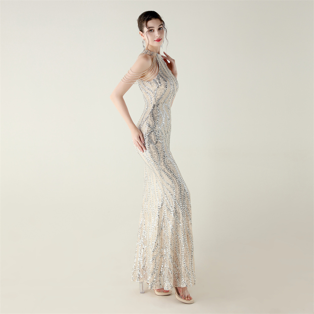 This Sequin Beaded Off-Shoulder Halter Fishtail Evening Dress Design Made Of Good Quality Polyester And Spandex Material, Which Is Stretchy, Durable And Comfortable. The Long Evening Dresses And Gowns Is Always The main Choice For All Kinds Of Parties, Cocktail, Prom, Events, And Dating Occasions. Evening Gowns At BamBam Comes With Huge Selections - Sequins, Beaded, Satin, Velvet, Lace.... When You Need retail Evening Dresses, BamBam retail Women Garment Online Shop Is Your One-Stop Online Shopping Choice.
