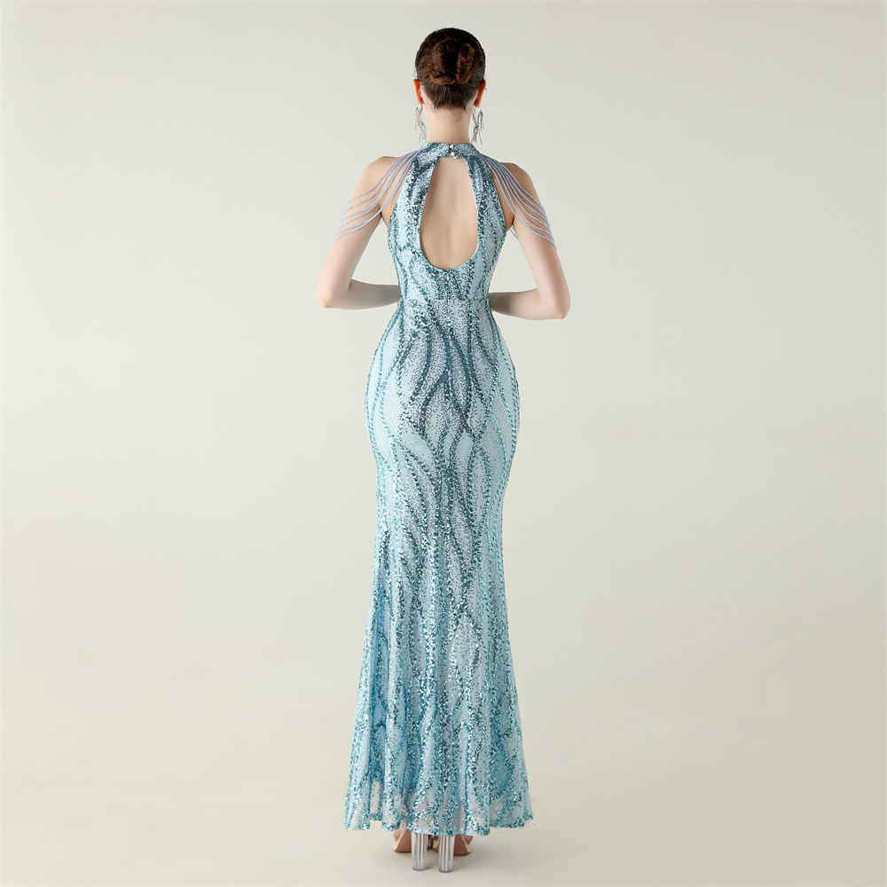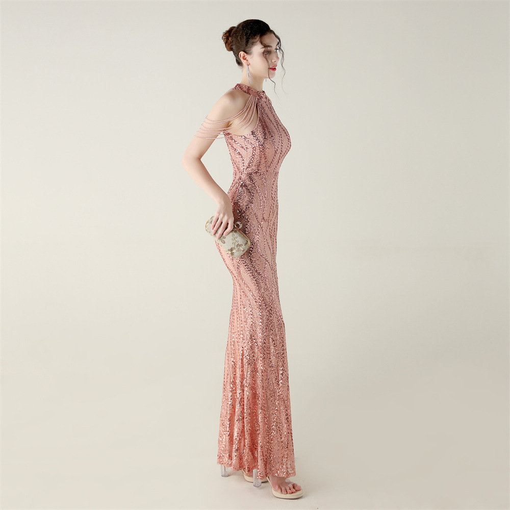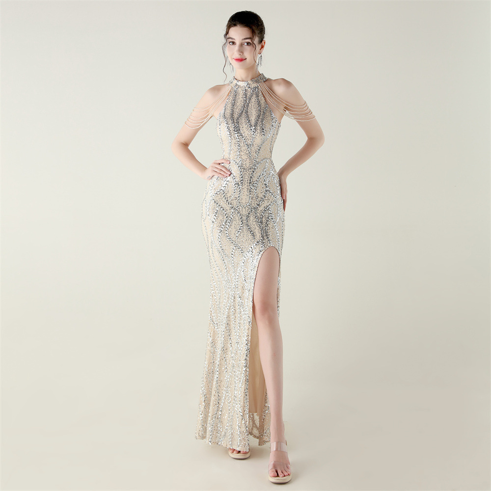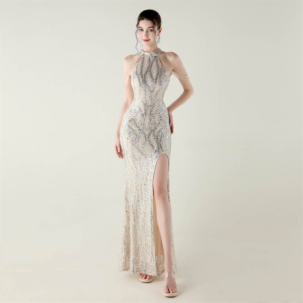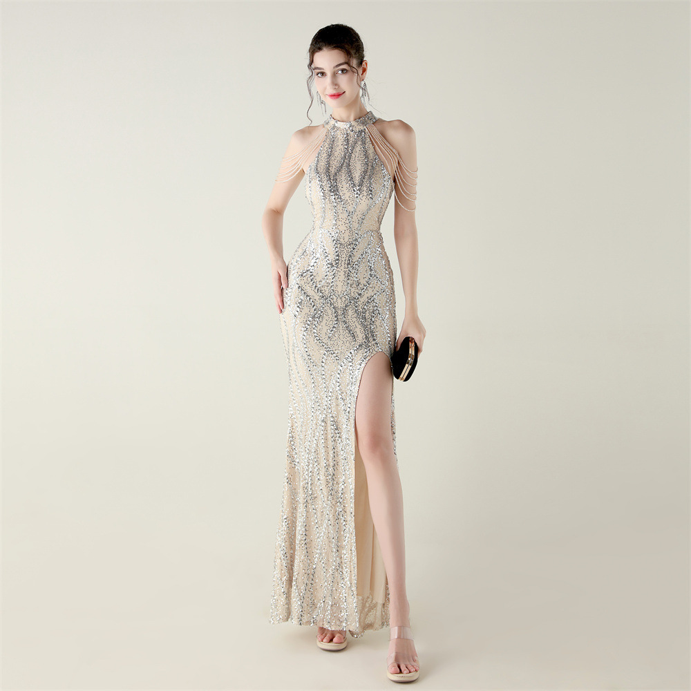 This Sequin Beaded Off-Shoulder Halter Fishtail Evening Dress Design Made Of Good Quality Polyester And Spandex Material, Which Is Stretchy, Durable And Comfortable. The Long Evening Dresses And Gowns Is Always The main Choice For All Kinds Of Parties, Cocktail, Prom, Events, And Dating Occasions. Evening Gowns At BamBam Comes With Huge Selections - Sequins, Beaded, Satin, Velvet, Lace.... When You Need retail Evening Dresses, BamBam retail Women Garment Online Shop Is Your One-Stop Online Shopping Choice.
