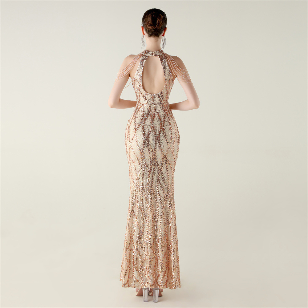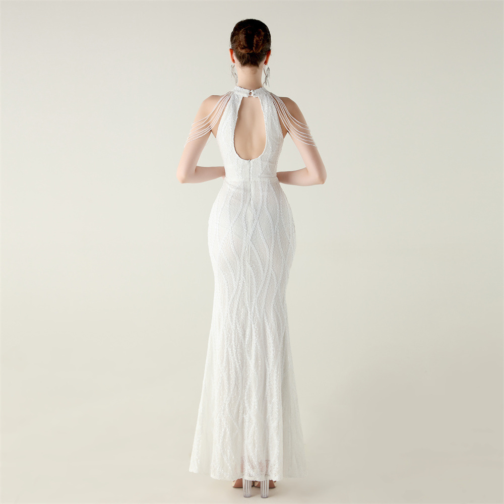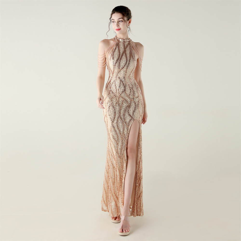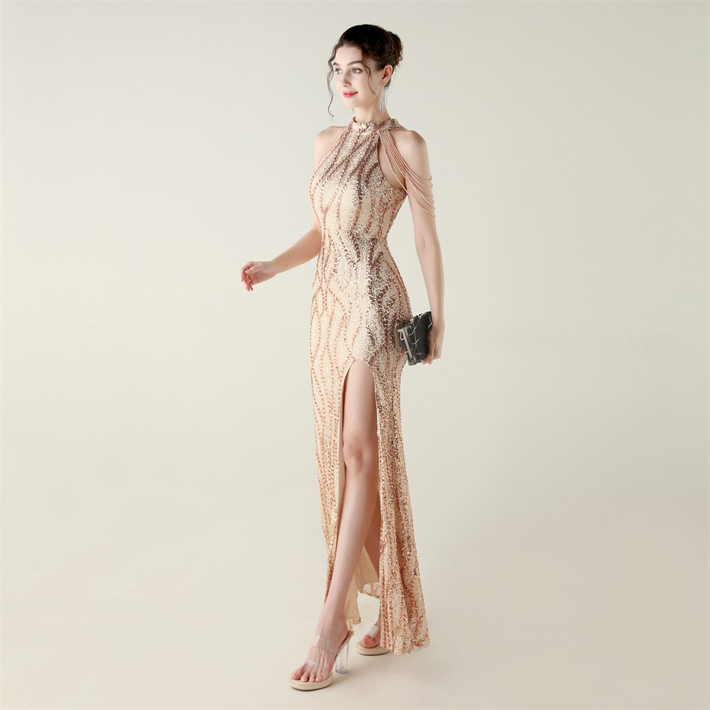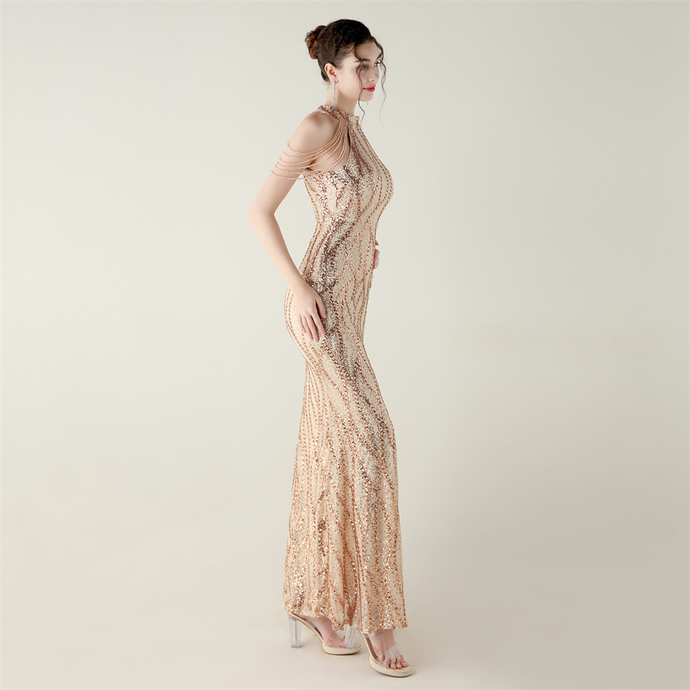 This Sequin Beaded Off-Shoulder Halter Fishtail Evening Dress Design Made Of Good Quality Polyester And Spandex Material, Which Is Stretchy, Durable And Comfortable. The Long Evening Dresses And Gowns Is Always The main Choice For All Kinds Of Parties, Cocktail, Prom, Events, And Dating Occasions. Evening Gowns At BamBam Comes With Huge Selections - Sequins, Beaded, Satin, Velvet, Lace.... When You Need retail Evening Dresses, BamBam retail Women Garment Online Shop Is Your One-Stop Online Shopping Choice.