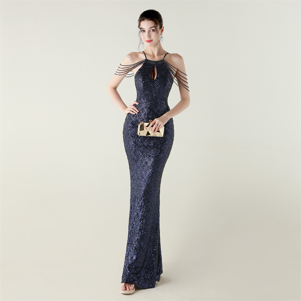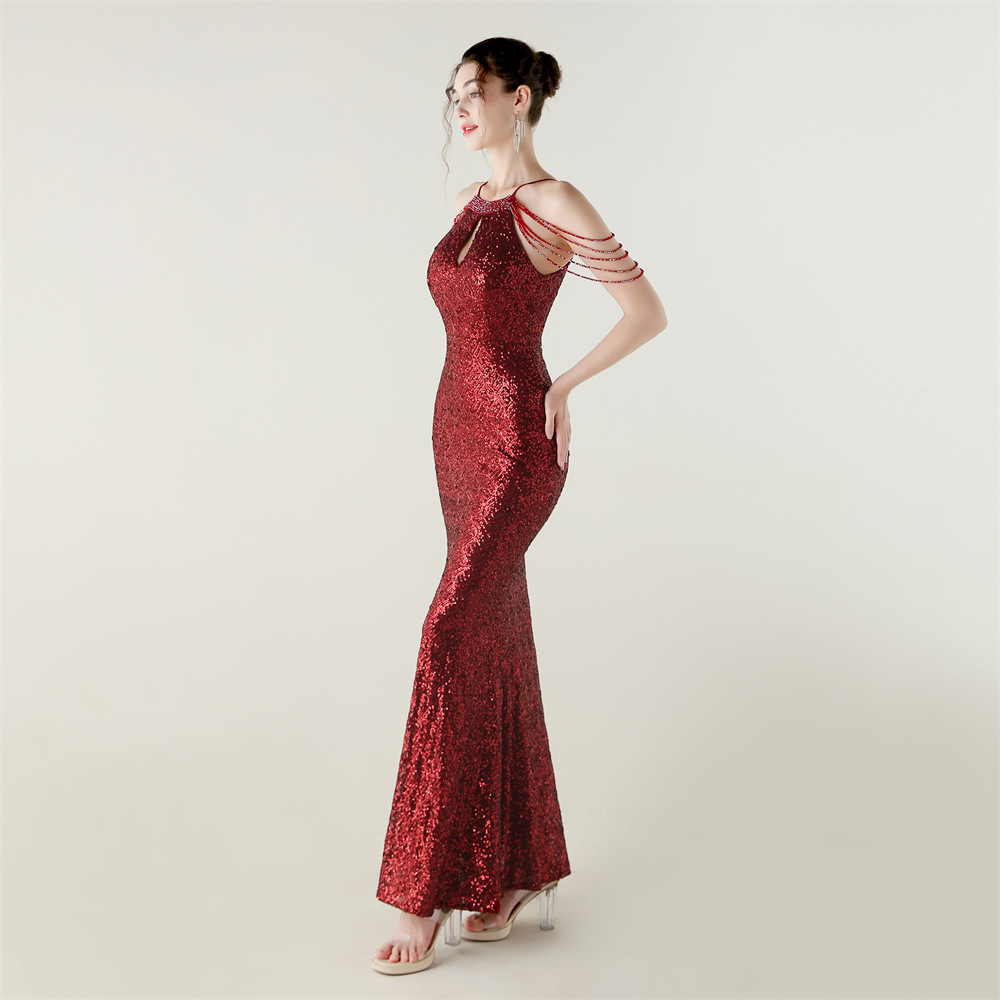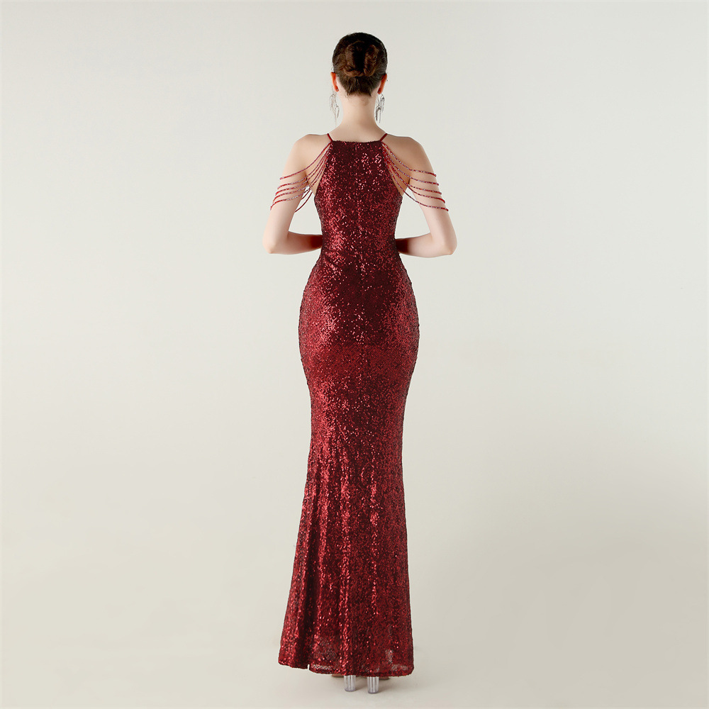 This Sequin Beaded Off-Shoulder Halter Fishtail Luxury Party Dress Design Made Of Good Quality Polyester And Spandex Material, Which Is Stretchy, Durable And Comfortable. The Long Evening Dresses And Gowns Is Always The main Choice For All Kinds Of Parties, Cocktail, Prom, Events, And Dating Occasions. Evening Gowns At BamBam Comes With Huge Selections - Sequins, Beaded, Satin, Velvet, Lace.... When You Need retail Evening Dresses, BamBam retail Women Garment Online Shop Is Your One-Stop Online Shopping Choice.