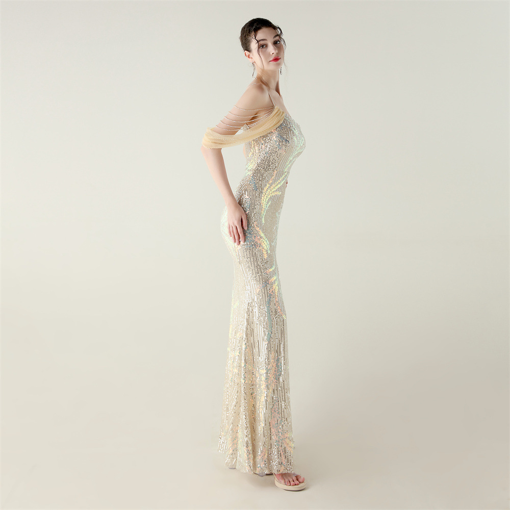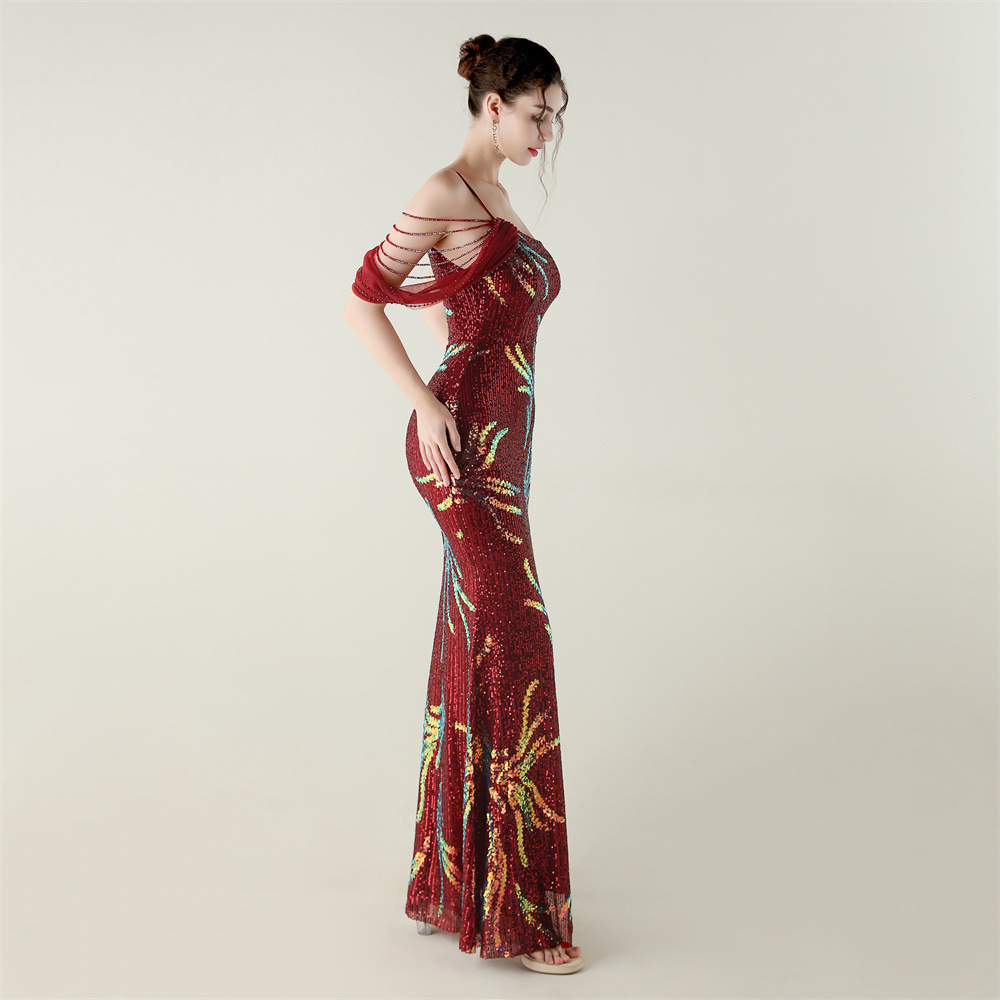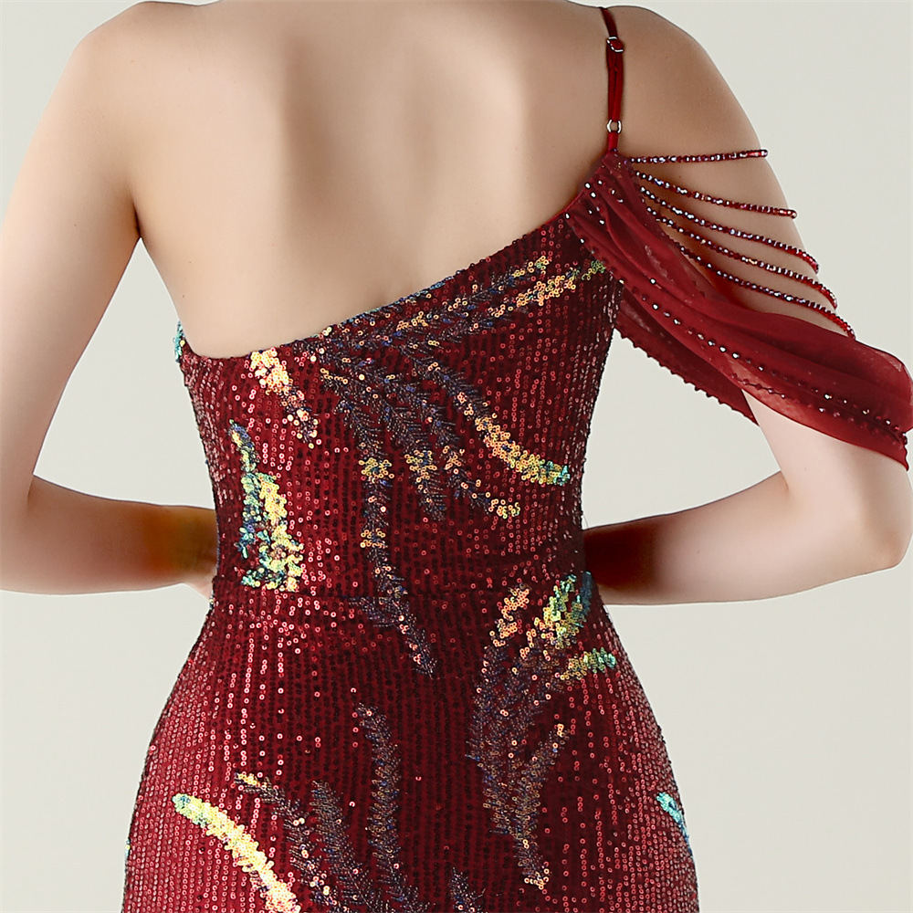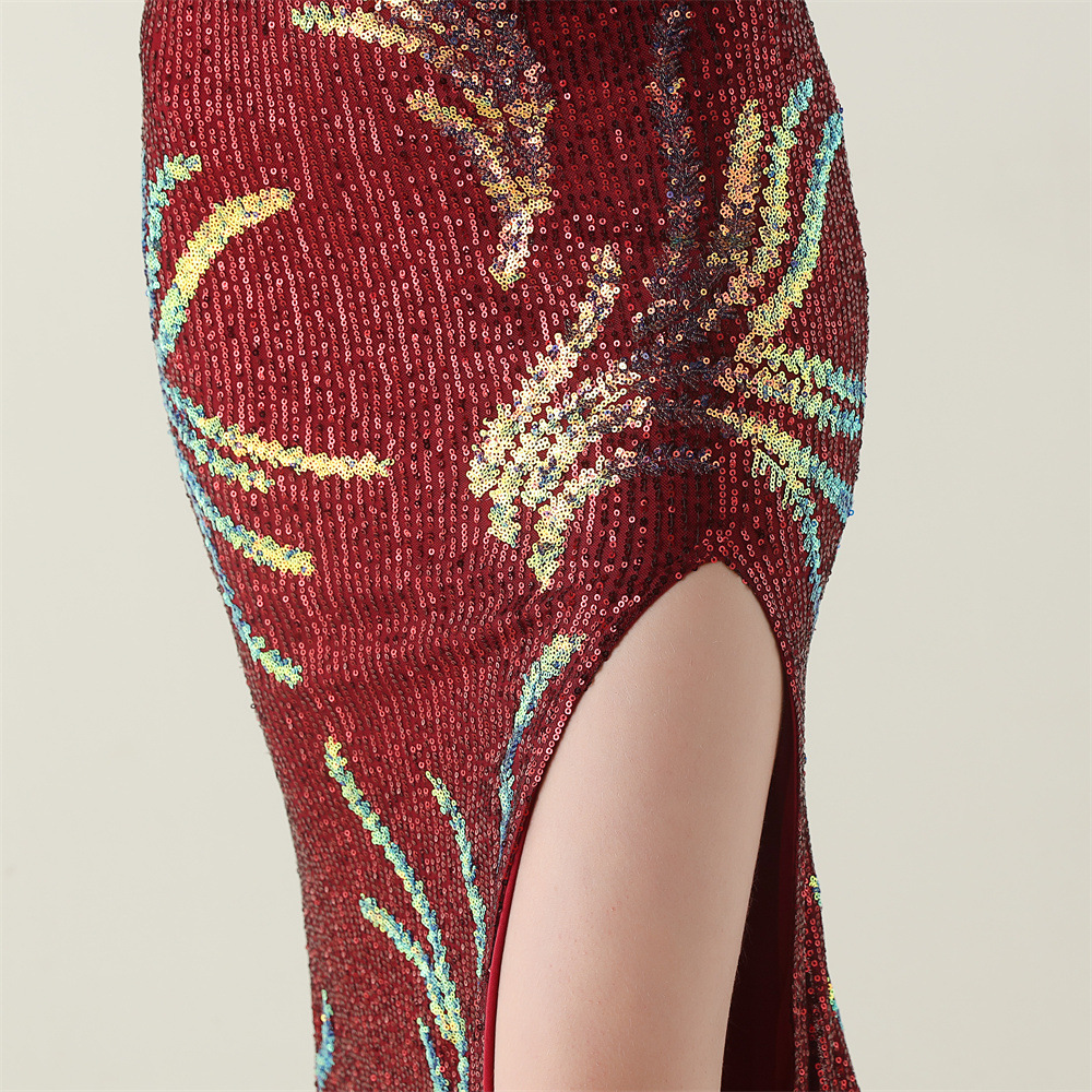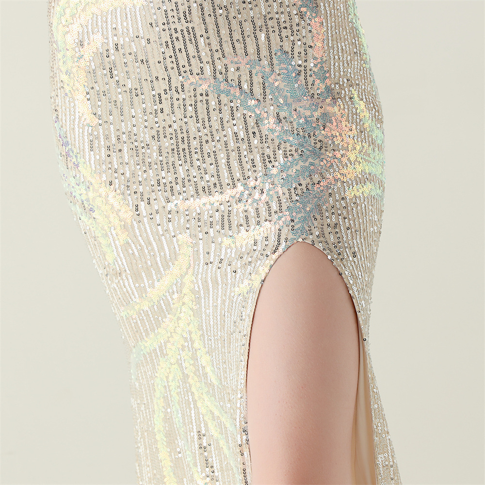 This Sequin Mesh Off-Shoulder High Slit Fishtail Party Dress Design Made Of Good Quality Polyester And Spandex Material, Which Is Stretchy, Durable And Comfortable. The Long Evening Dresses And Gowns Is Always The main Choice For All Kinds Of Parties, Cocktail, Prom, Events, And Dating Occasions. Evening Gowns At BamBam Comes With Huge Selections - Sequins, Beaded, Satin, Velvet, Lace.... When You Need retail Evening Dresses, BamBam retail Women Garment Online Shop Is Your One-Stop Online Shopping Choice.
