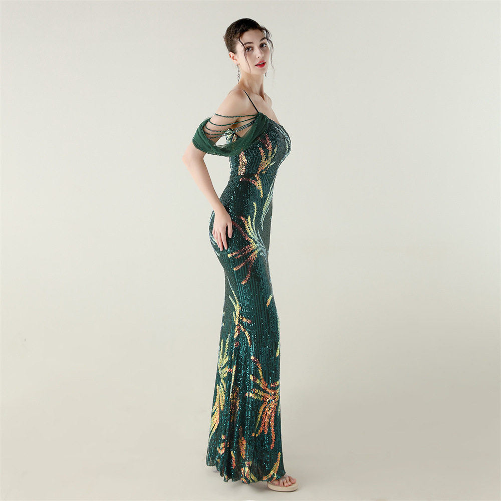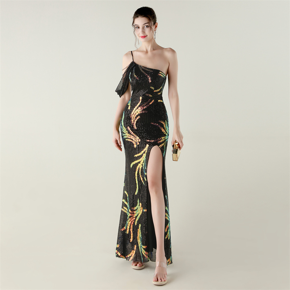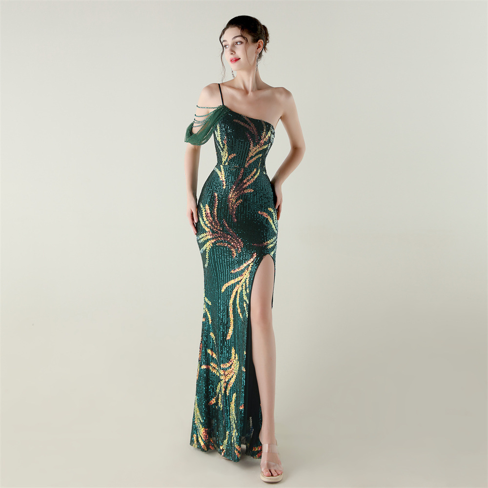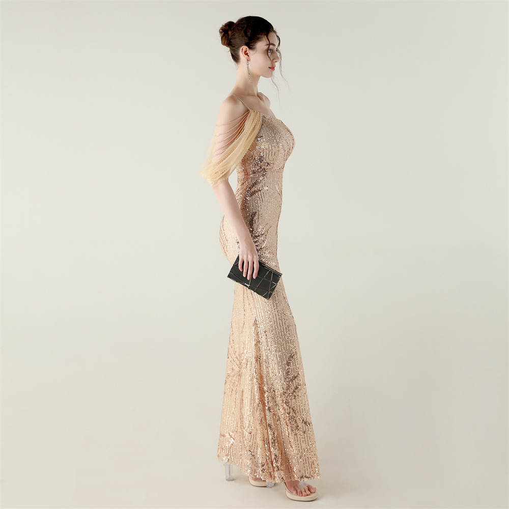 This Sequin Mesh Off-Shoulder High Slit Fishtail Party Dress Design Made Of Good Quality Polyester And Spandex Material, Which Is Stretchy, Durable And Comfortable. The Long Evening Dresses And Gowns Is Always The main Choice For All Kinds Of Parties, Cocktail, Prom, Events, And Dating Occasions. Evening Gowns At BamBam Comes With Huge Selections - Sequins, Beaded, Satin, Velvet, Lace.... When You Need retail Evening Dresses, BamBam retail Women Garment Online Shop Is Your One-Stop Online Shopping Choice.
