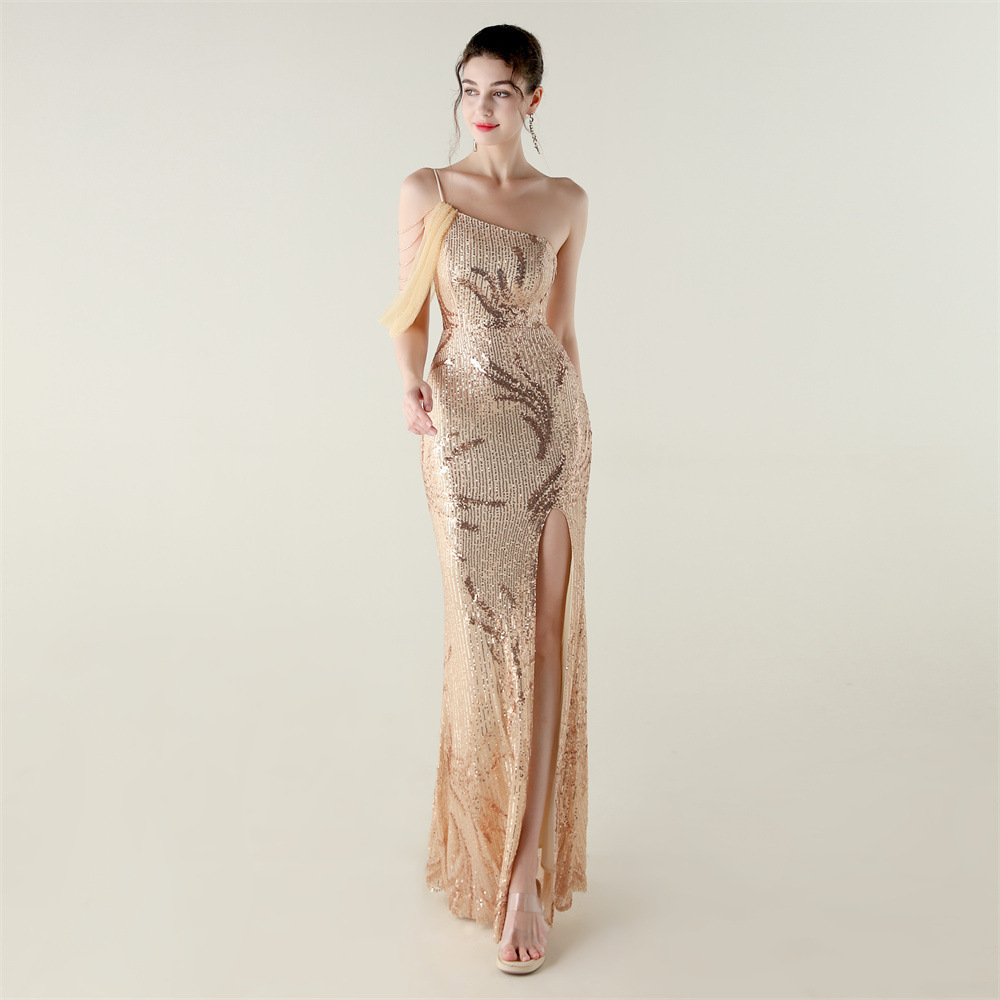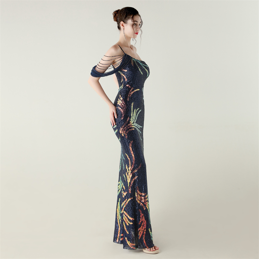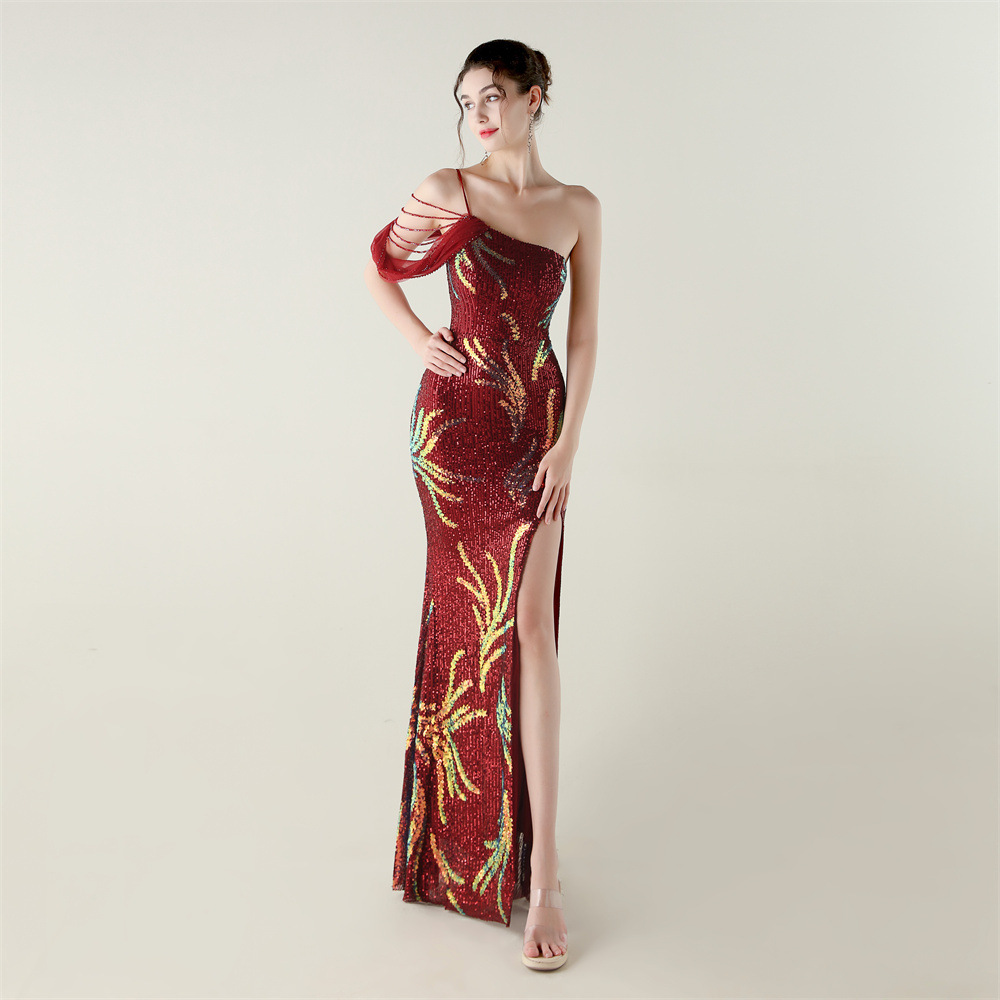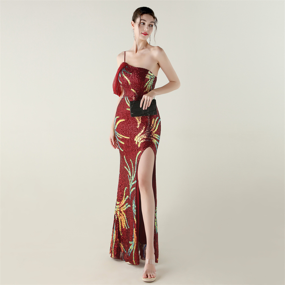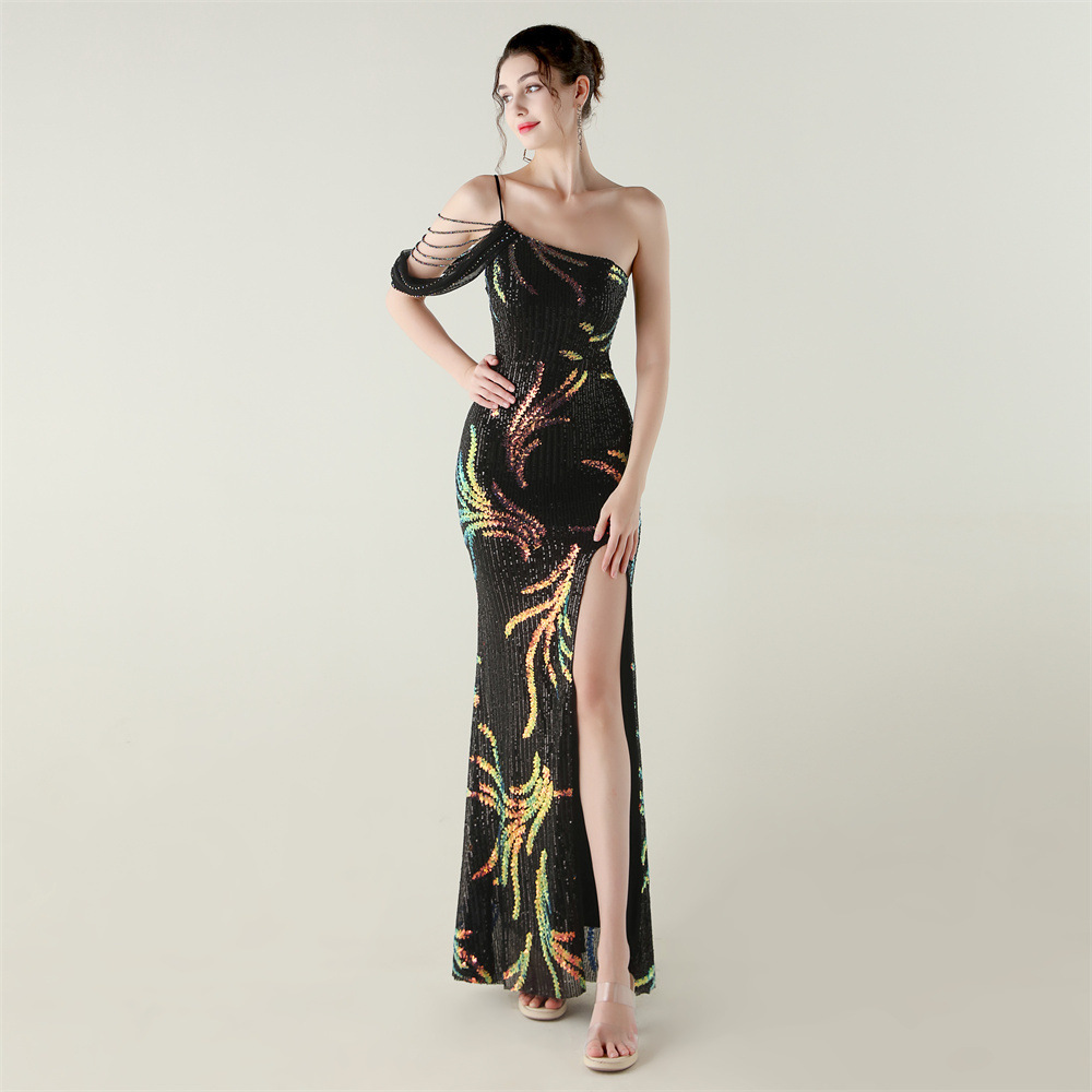 This Sequin Mesh Off-Shoulder High Slit Fishtail Party Dress Design Made Of Good Quality Polyester And Spandex Material, Which Is Stretchy, Durable And Comfortable. The Long Evening Dresses And Gowns Is Always The main Choice For All Kinds Of Parties, Cocktail, Prom, Events, And Dating Occasions. Evening Gowns At BamBam Comes With Huge Selections - Sequins, Beaded, Satin, Velvet, Lace.... When You Need retail Evening Dresses, BamBam retail Women Garment Online Shop Is Your One-Stop Online Shopping Choice.