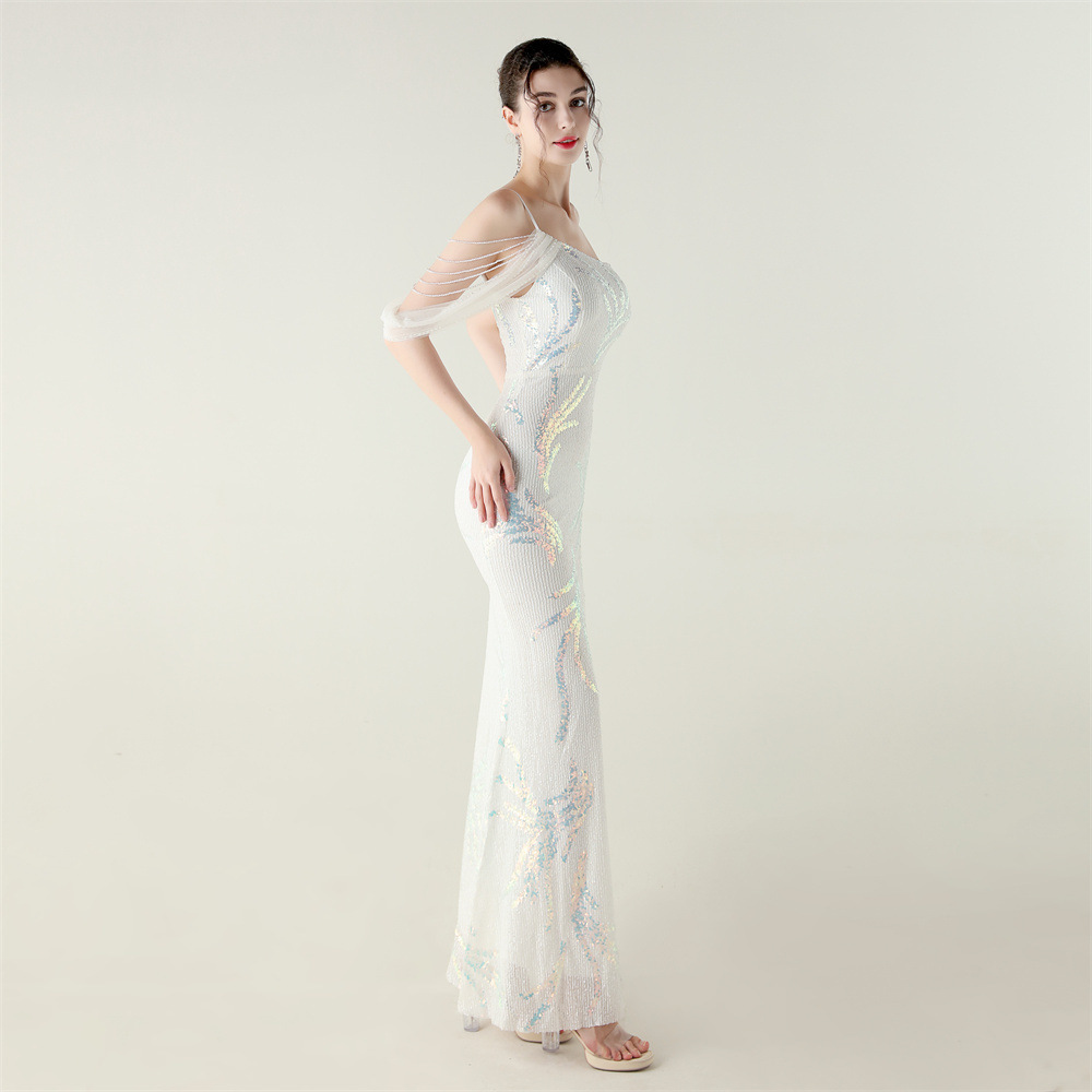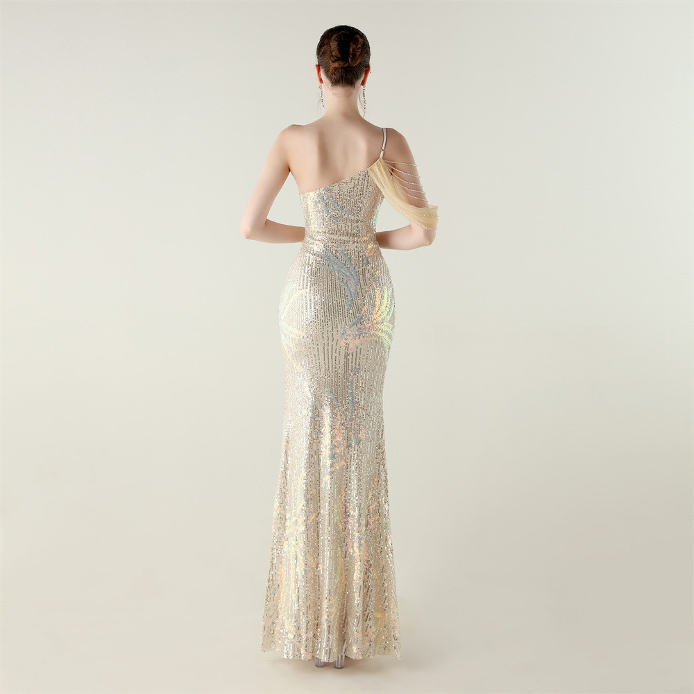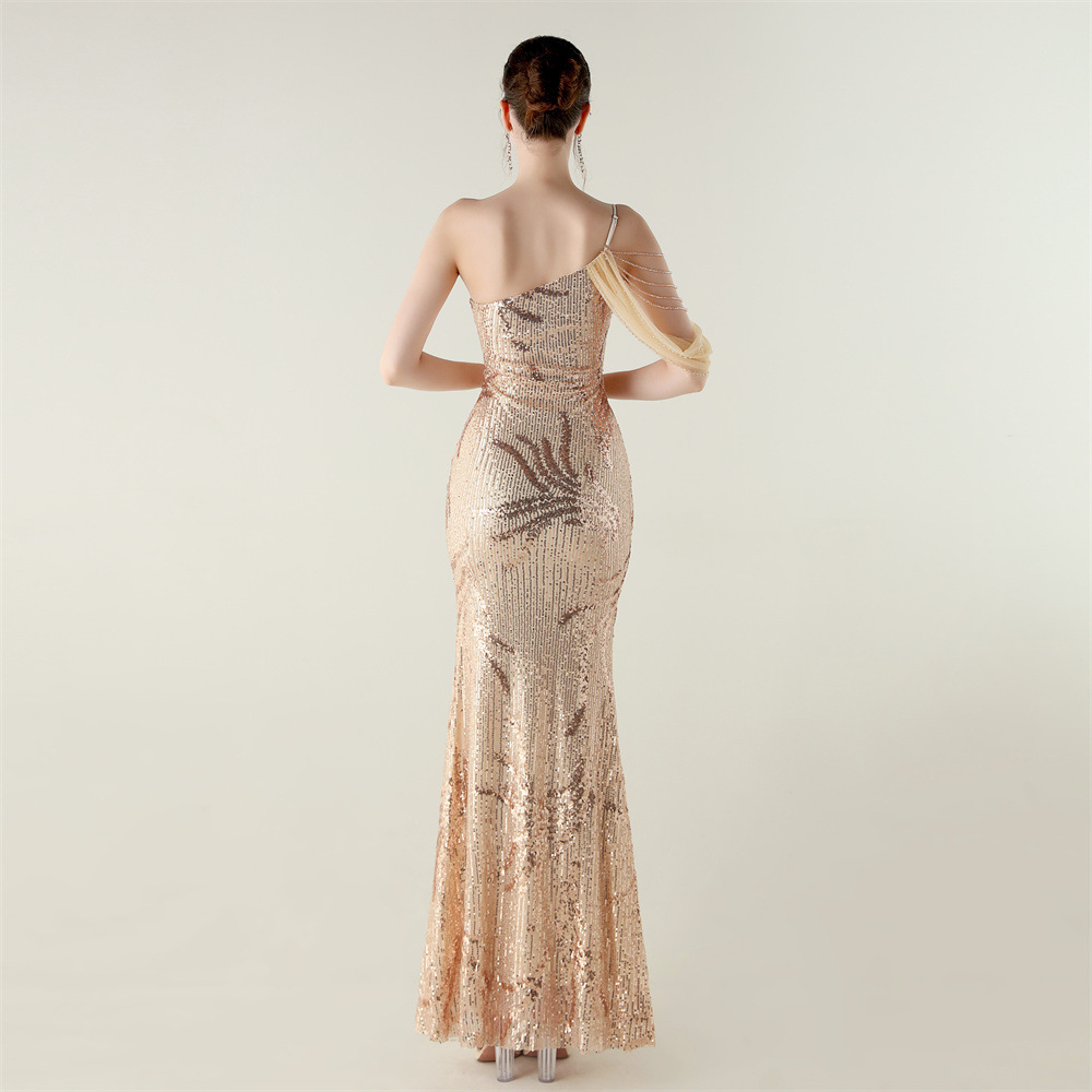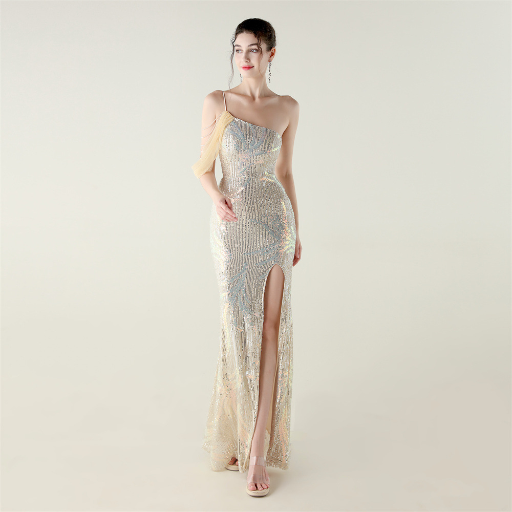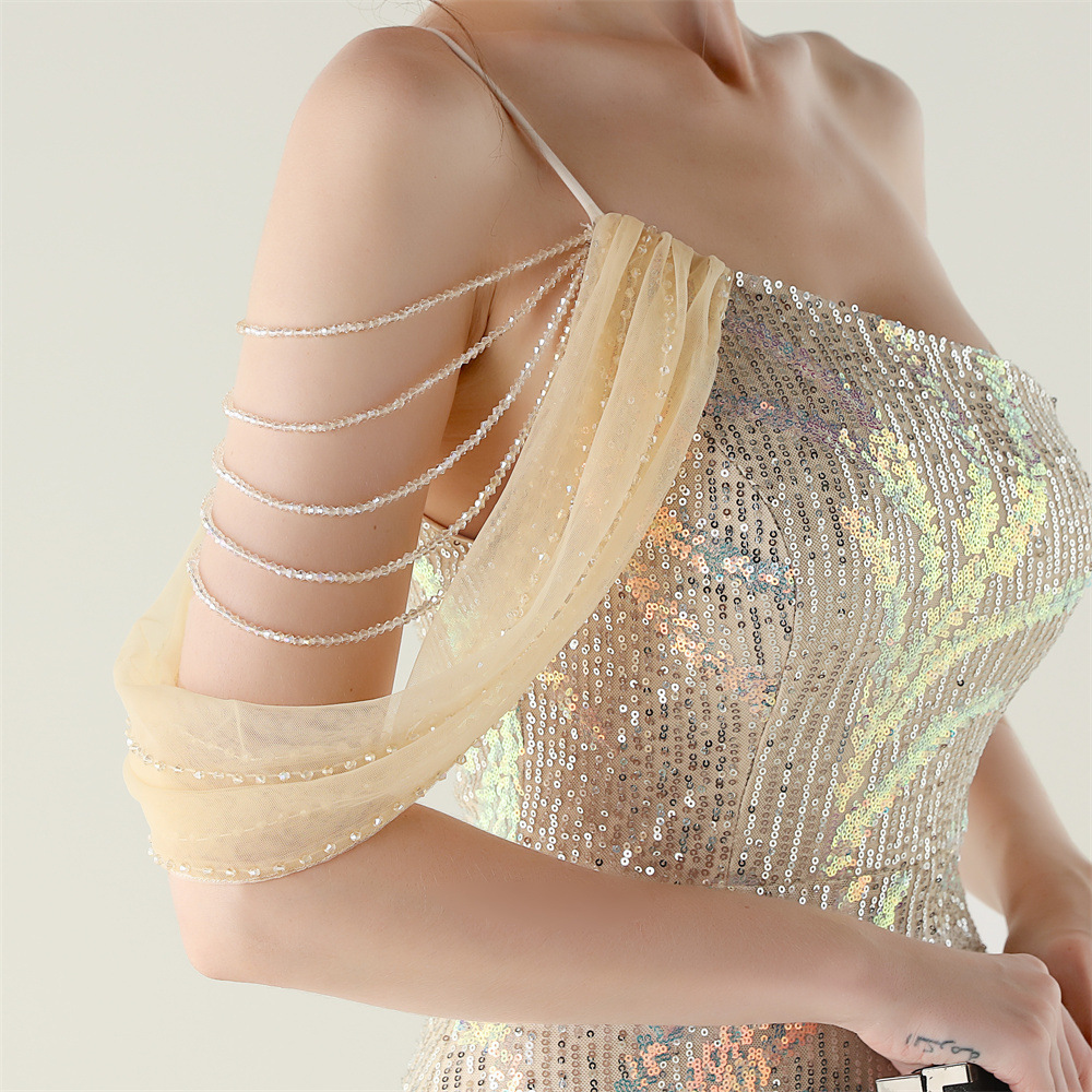 This Sequin Mesh Off-Shoulder High Slit Fishtail Party Dress Design Made Of Good Quality Polyester And Spandex Material, Which Is Stretchy, Durable And Comfortable. The Long Evening Dresses And Gowns Is Always The main Choice For All Kinds Of Parties, Cocktail, Prom, Events, And Dating Occasions. Evening Gowns At BamBam Comes With Huge Selections - Sequins, Beaded, Satin, Velvet, Lace.... When You Need retail Evening Dresses, BamBam retail Women Garment Online Shop Is Your One-Stop Online Shopping Choice.