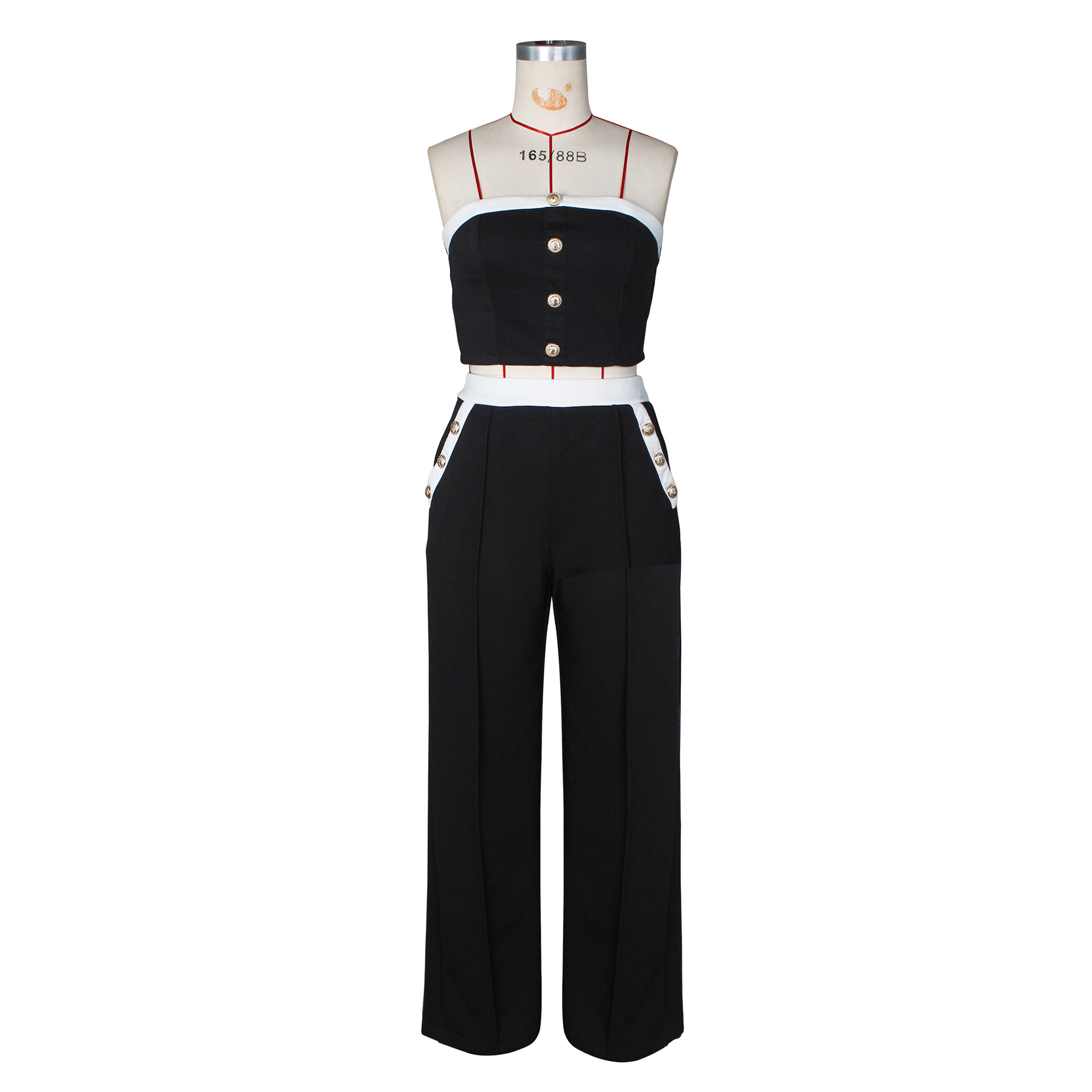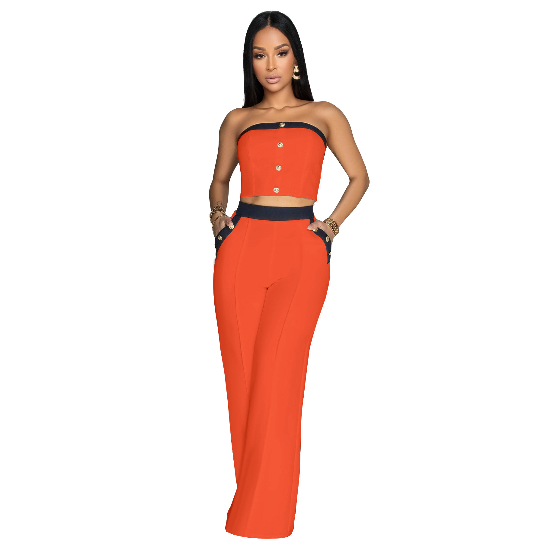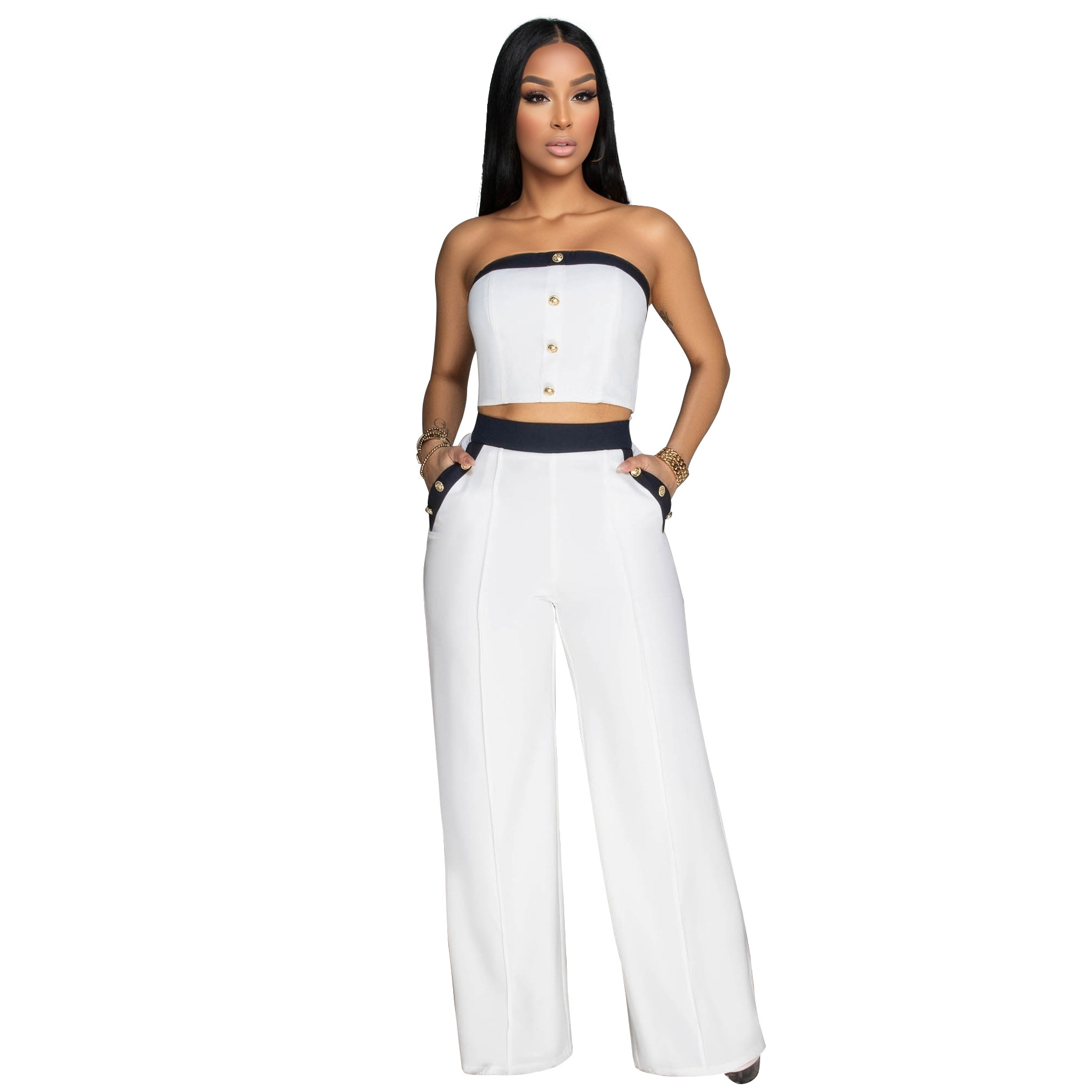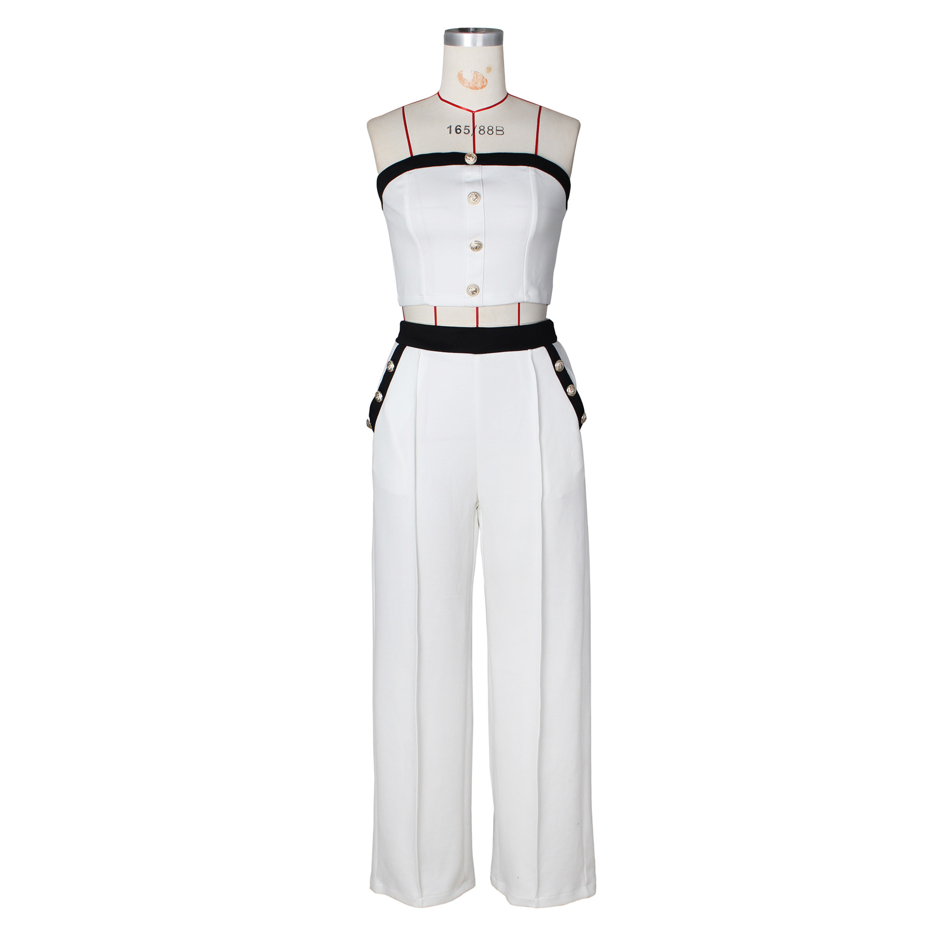 This Sexy Color Blocked Decorative Button Straight High Waist Wide Leg Women's Pants Set Design Made Of High Quality polyester And Spandex Material. It Is Stretchy, Durable And Comfortable. It Is a Must-Have Outfit For All Seasons. retail Two Piece Pant Sets Can Solve Your cloth selection Troubles. Explore More 2 Piece Pants Set On BamBam retail Women Clothing Online Store.