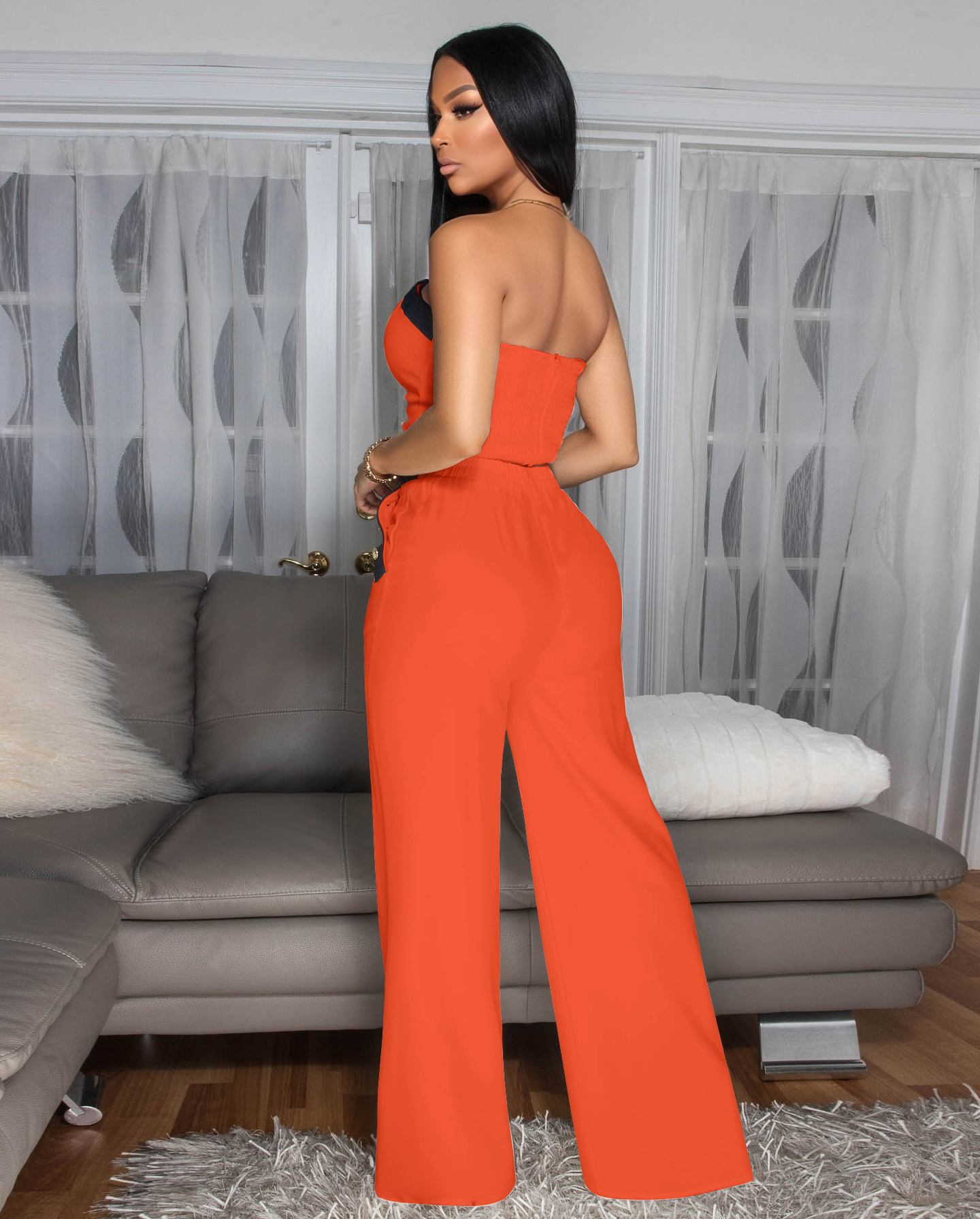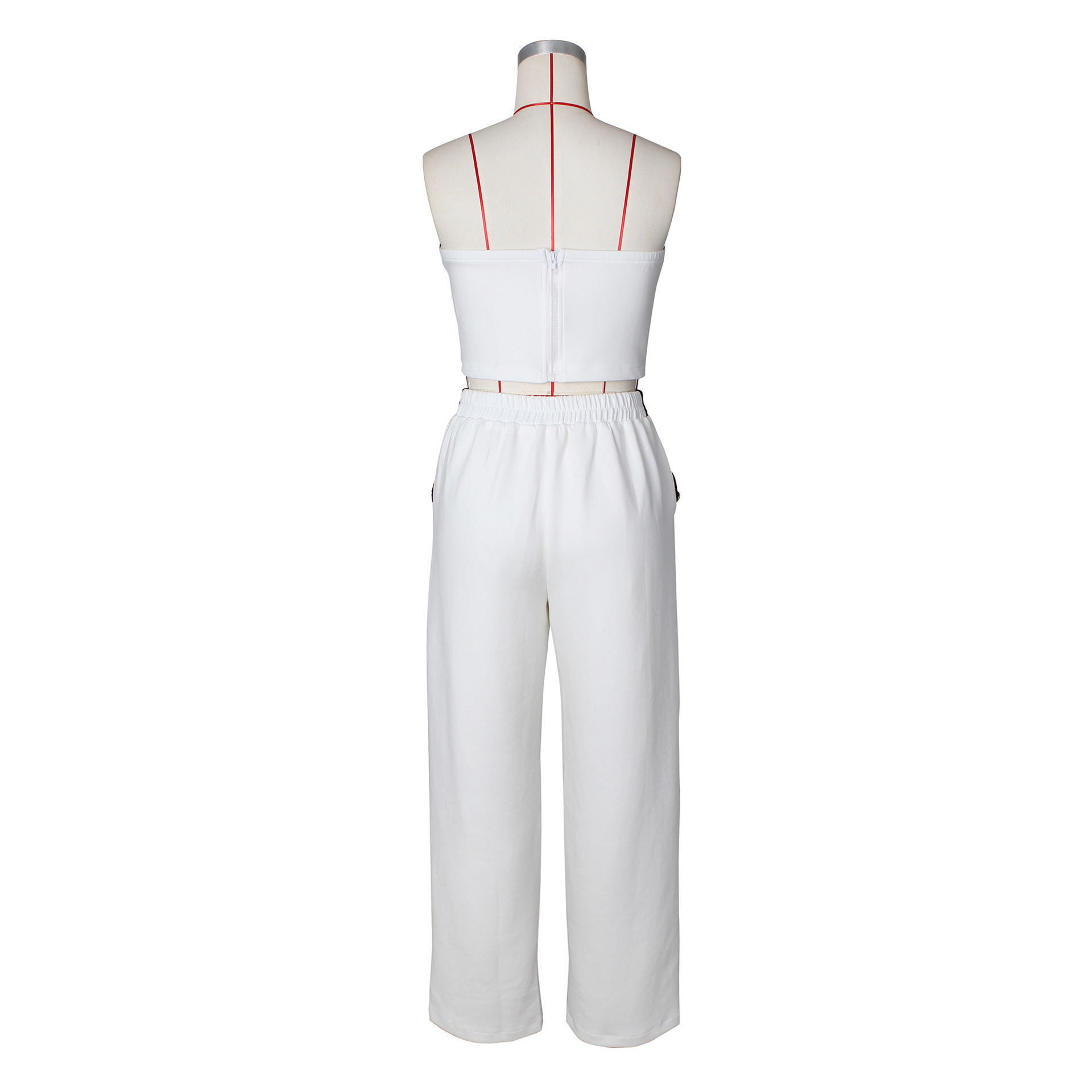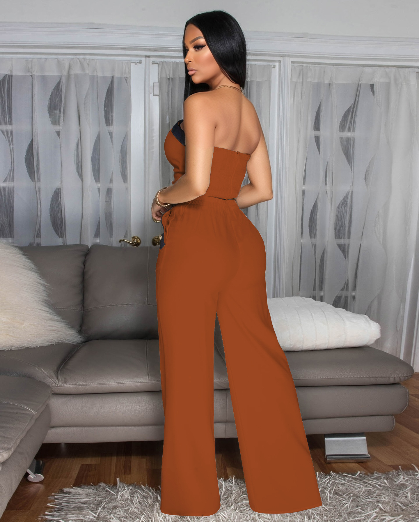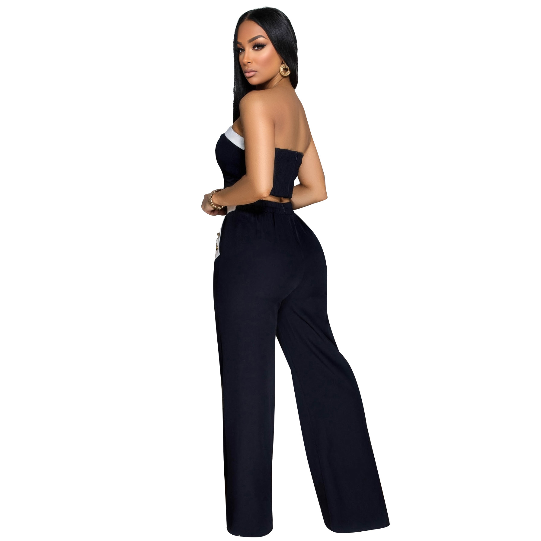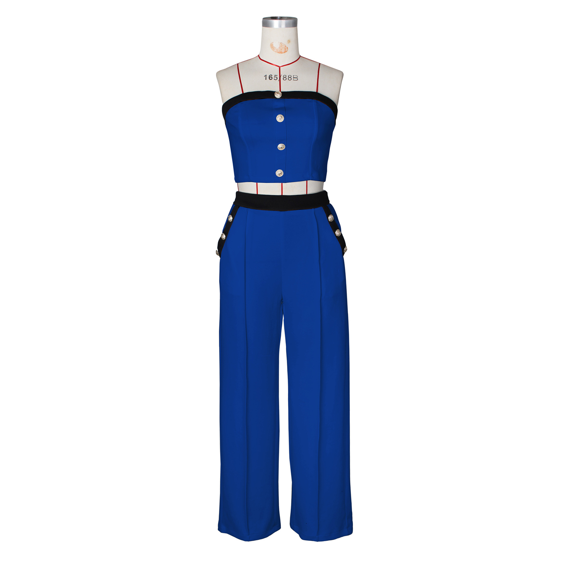 This Sexy Color Blocked Decorative Button Straight High Waist Wide Leg Women's Pants Set Design Made Of High Quality polyester And Spandex Material. It Is Stretchy, Durable And Comfortable. It Is a Must-Have Outfit For All Seasons. retail Two Piece Pant Sets Can Solve Your cloth selection Troubles. Explore More 2 Piece Pants Set On BamBam retail Women Clothing Online Store.