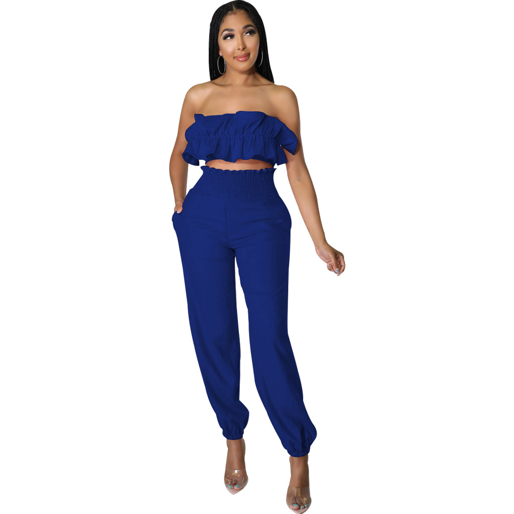 This Sexy Fashion Elastic Solid Color Strapless Two-Piece Pants Set Design Made Of High Quality polyester And Spandex Material. It Is Stretchy, Durable And Comfortable. It Is a Must-Have Outfit For All Seasons. retail Two Piece Pant Sets Can Solve Your cloth selection Troubles. Explore More 2 Piece Pants Set On BamBam retail Women Clothing Online Store.
