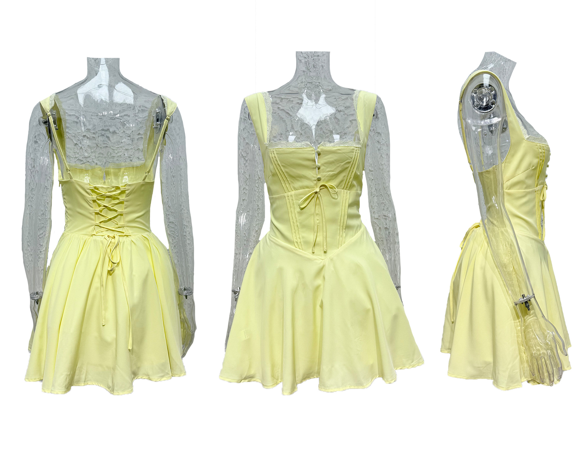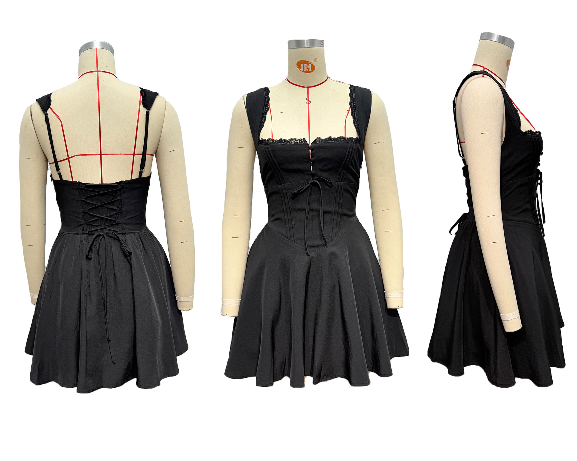 This Sexy Lace Patchwork Strap Low Back a-Line Short Dress Design Made Of High Quality polyester And Spandex Material. It Is Stretchy, Durable And Comfortable. Casual Dresses With Long Sleeves Can Not Only Be Worn As Outerwear In Spring And Autumn, But Also Matching a Jacket In Winter, It Is a Must Have Item For Every Season. Grab Really Great Buy Casual Dresses For Women And Grow Your Business. No Moq In BamBam.