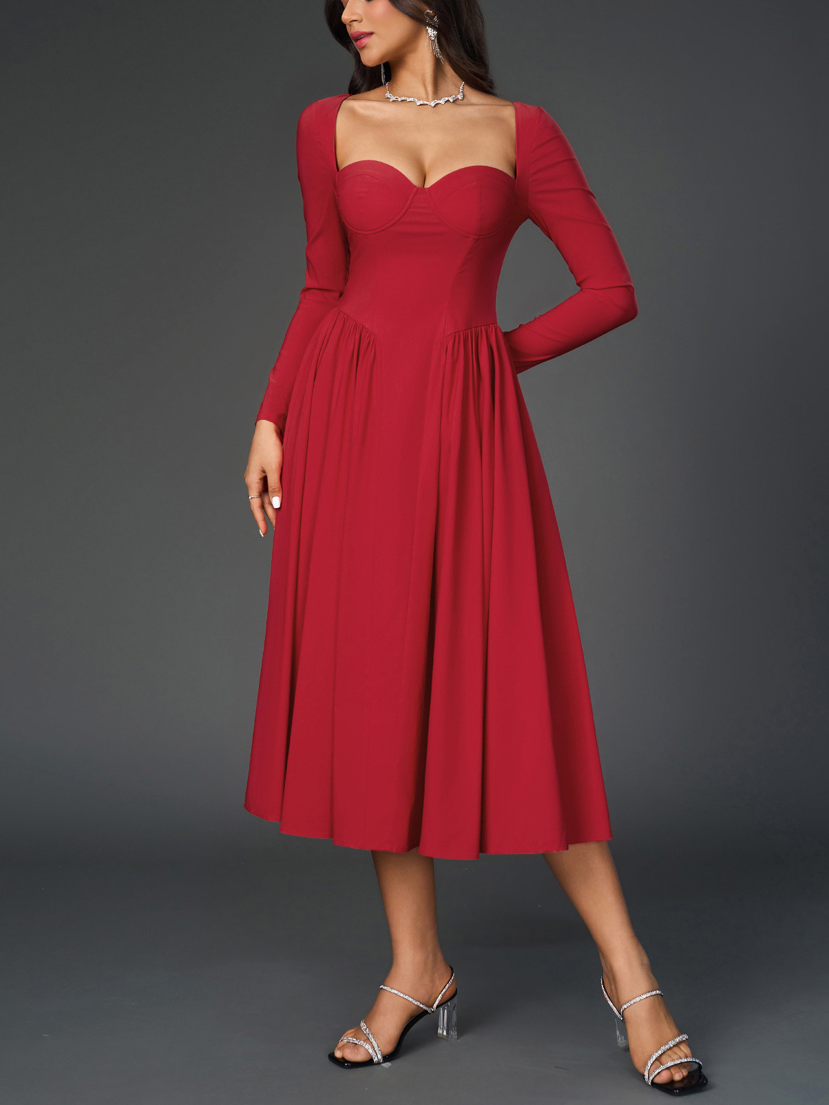 This Sexy Long-Sleeved Low Back Lace-Up a-Line Solid Color Pleated Dress Design Made Of High Quality polyester And Spandex Material. It Is Stretchy, Durable And Comfortable. Casual Dresses With Long Sleeves Can Not Only Be Worn As Outerwear In Spring And Autumn, But Also Matching a Jacket In Winter, It Is a Must Have Item For Every Season. Grab Really Great Buy Casual Dresses For Women And Grow Your Business. No Moq In BamBam.