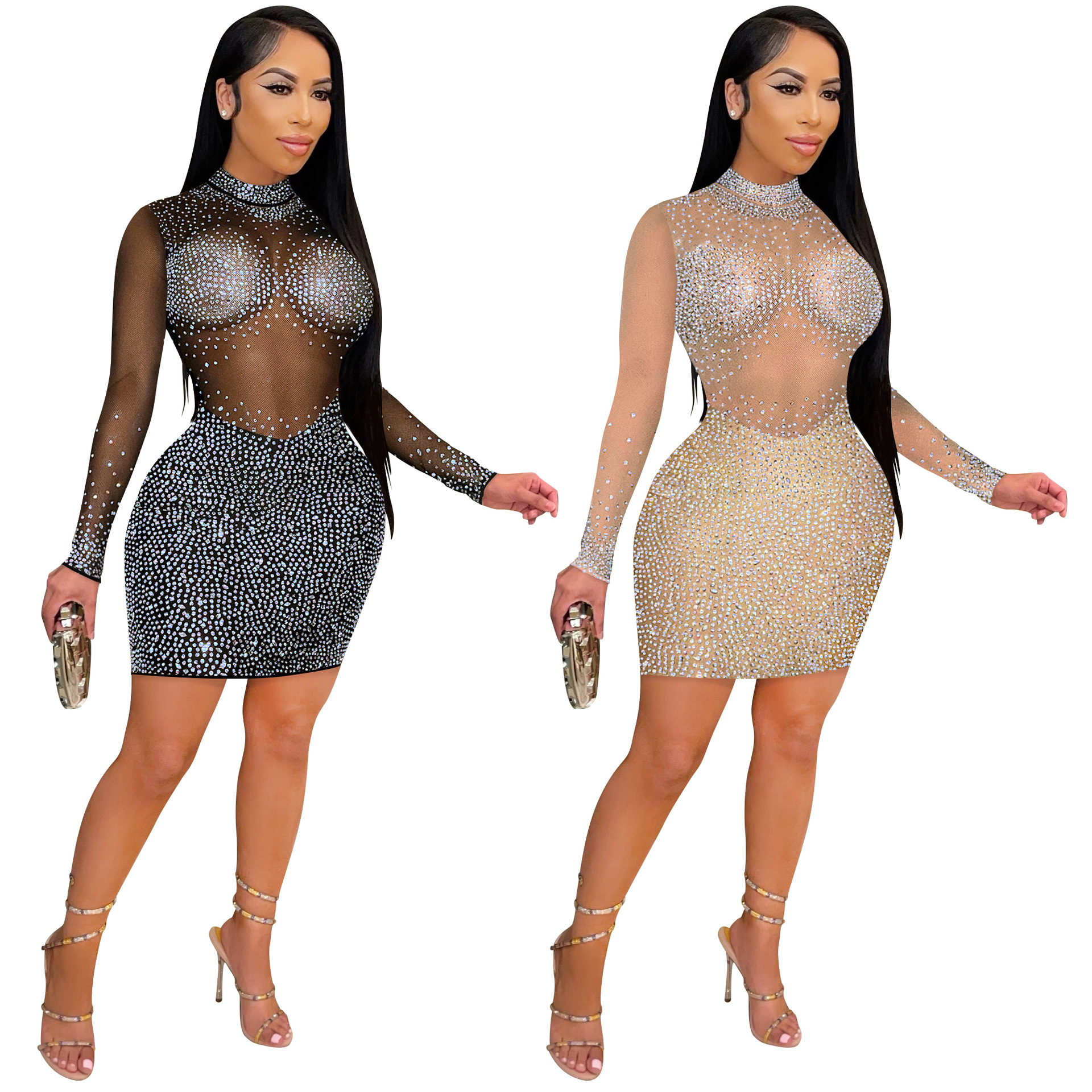 This Sexy Nightclub Women Clothes Beaded Mesh See-Through Round Neck Long Sleeve Midi Dress Design Made Of High Quality polyester And Spandex Material, Which Is Stretchy, Soft And Comfortable. This Is Always On Trend. This affordable Nightclub Dresses Is a Must-Have Item For Parties, Cocktail, Dating And Events Occasions. Sexy Club Dresses At BamBam Comes With Huge Selections - Sequins, Beaded, Satin, Leather, Velvet, Lace, Mesh... When You Need retail Club Dresses, You Can Always Find Huge Selections And Reasonable Prices On Our retail Women Clothing Online Store.